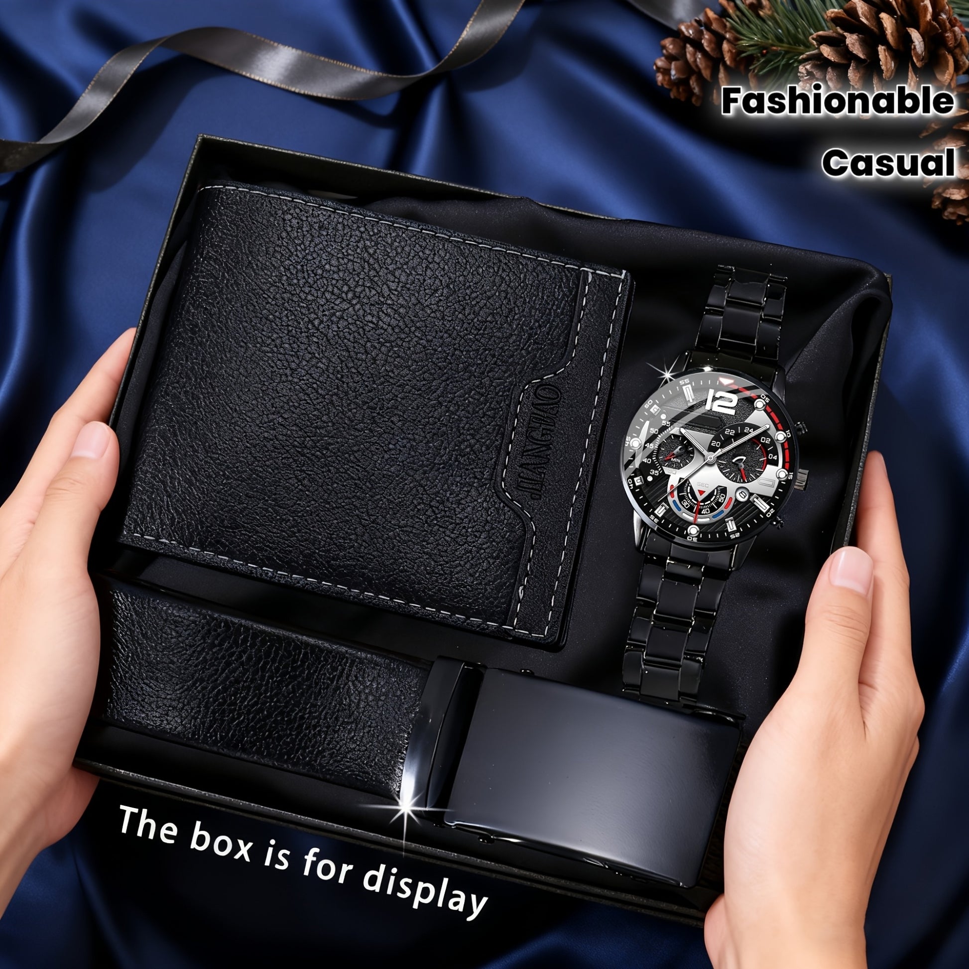 3 հատ տղամարդու ժամացույցների հավաքածու, դրամապանակ և գոտի | Նորաձև, առօրյա, թեթև, շքեղ, հիասքանչ, գեղեցիկ, սպորտային, նորաձև, հարմար է ամենօրյա օգտագործման համար, իդեալական նվեր տոների և ծննդյան օրերի համար, նվերների տուփ չկա