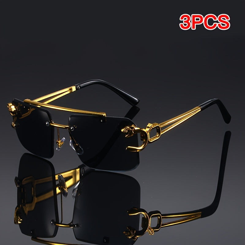 3 հատ ռետրո ոսկեգույն նորաձև շրջանակ չունեցող նորաձև ակնոցներ՝ «Cool Tiger» դիզայնով, հակաանդրադարձնող համակարգչային ոսպնյակներով տղամարդկանց և կանանց համար, իդեալական են երեկույթների և ճանապարհորդությունների համար
