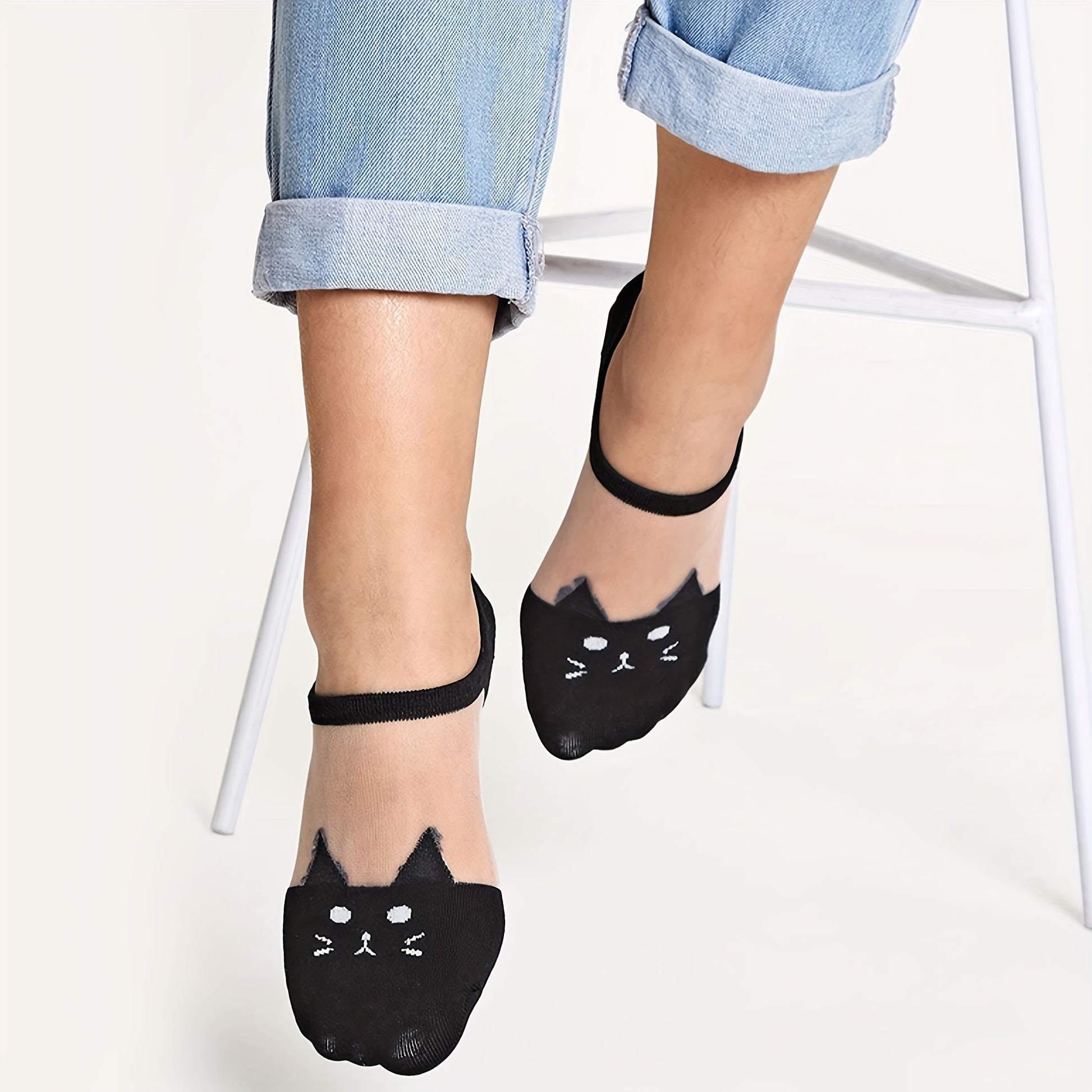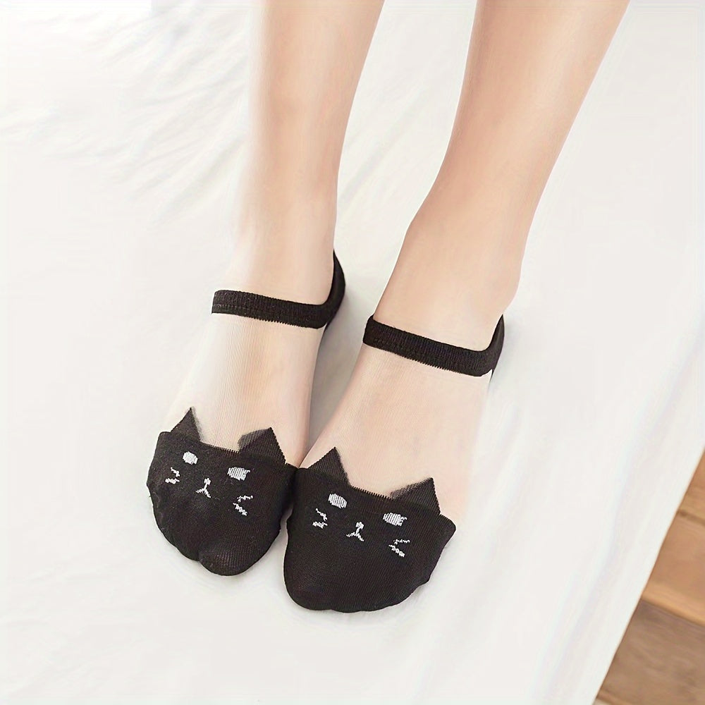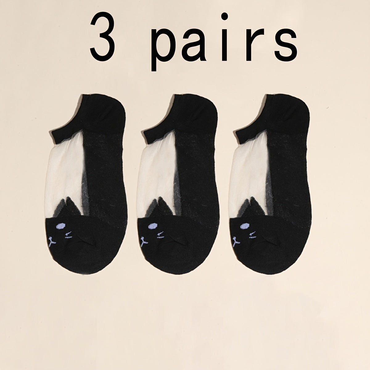 3 հատ կանացի սիրուն մուլտֆիլմային կատվի կոճերի գուլպաներ՝ գերբարակ, շնչող նեյլոնե խառնուրդից, ցածր կտրվածքով դիզայն, սև և սպիտակ երկգույն նախշ՝ կապույտ աչքերով, իդեալական է ամռան համար, առօրյա հագուստի գուլպաներ | Մուլտֆիլմային կատվի դիզայն | ճկուն գուլպա