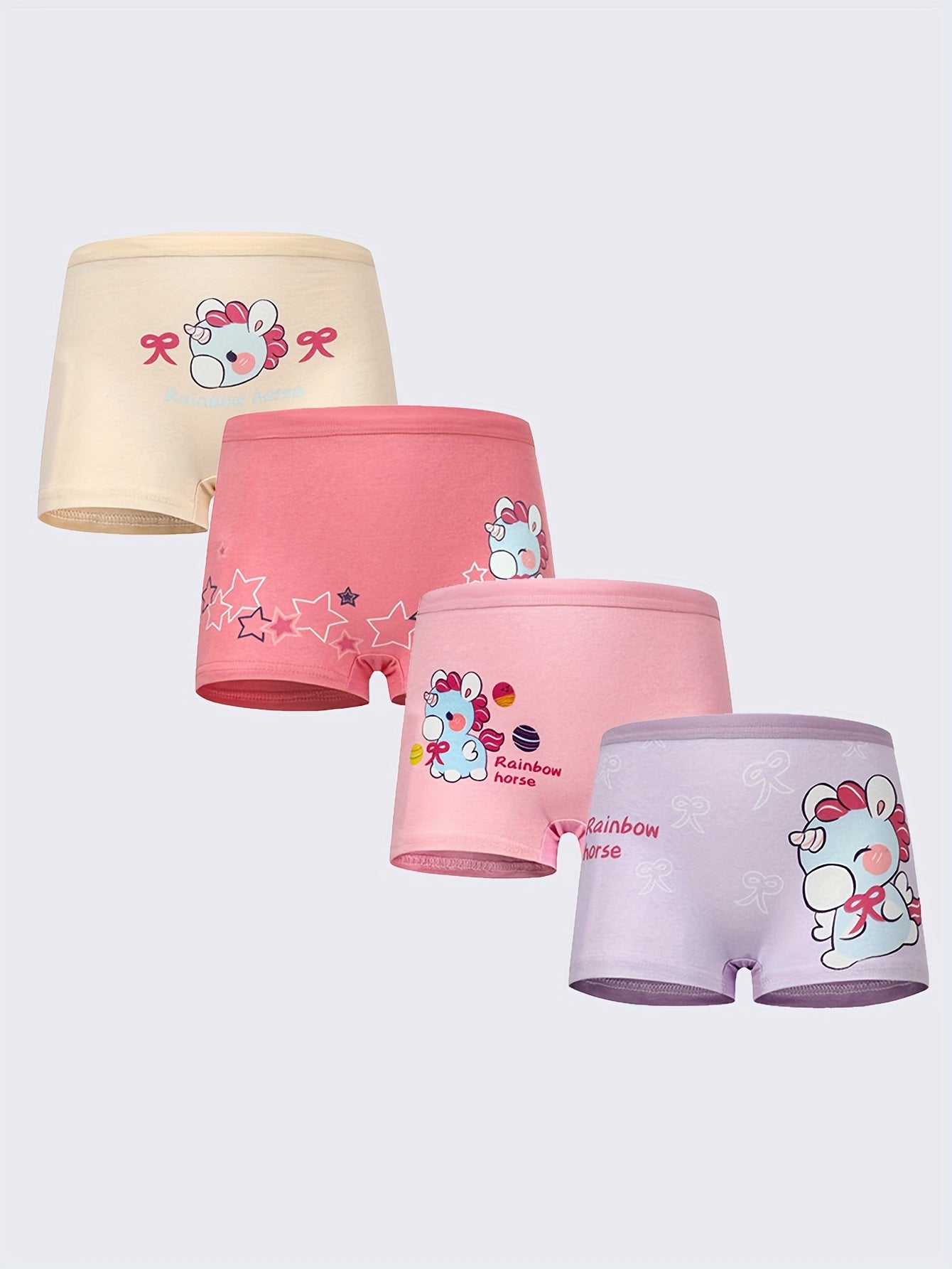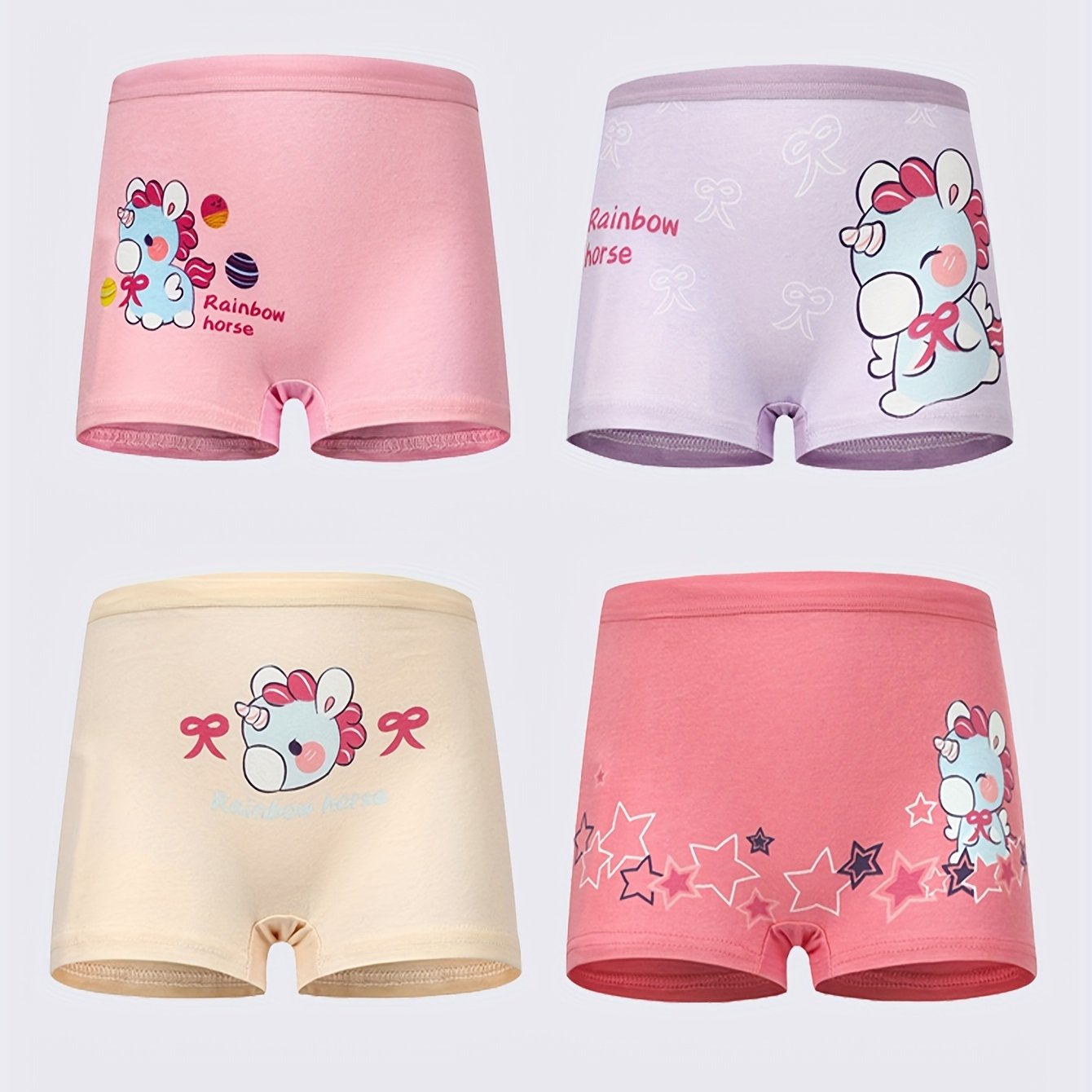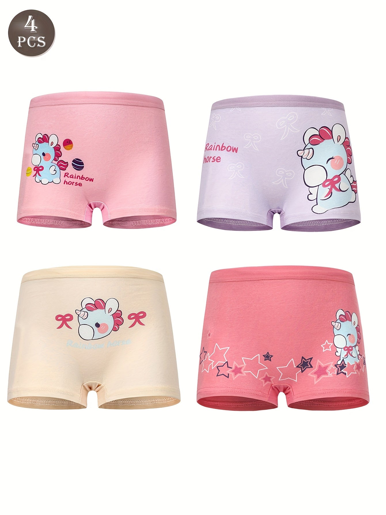 Աղջիկների 4 փաթեթանոց բամբակյա բռնցքամարտիկ, գեղեցիկ մուլտֆիլմերի տպագրություն, միջին ձգվող տրիկոտաժե գործվածք, սովորական պիտանի, 95% բամբակ 5% սպանդեքս, հարմարավետ ներքնազգեստ երեխաների համար