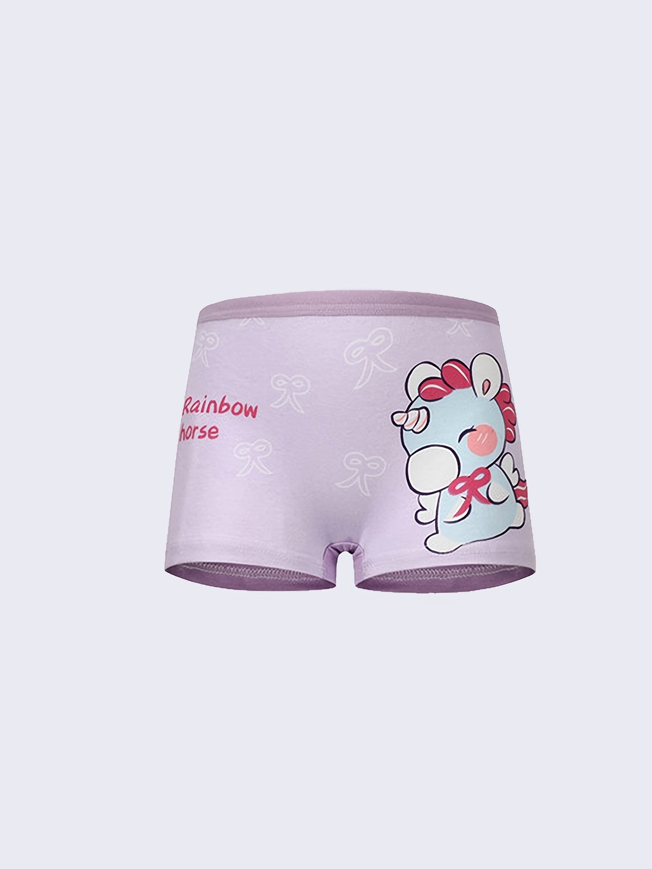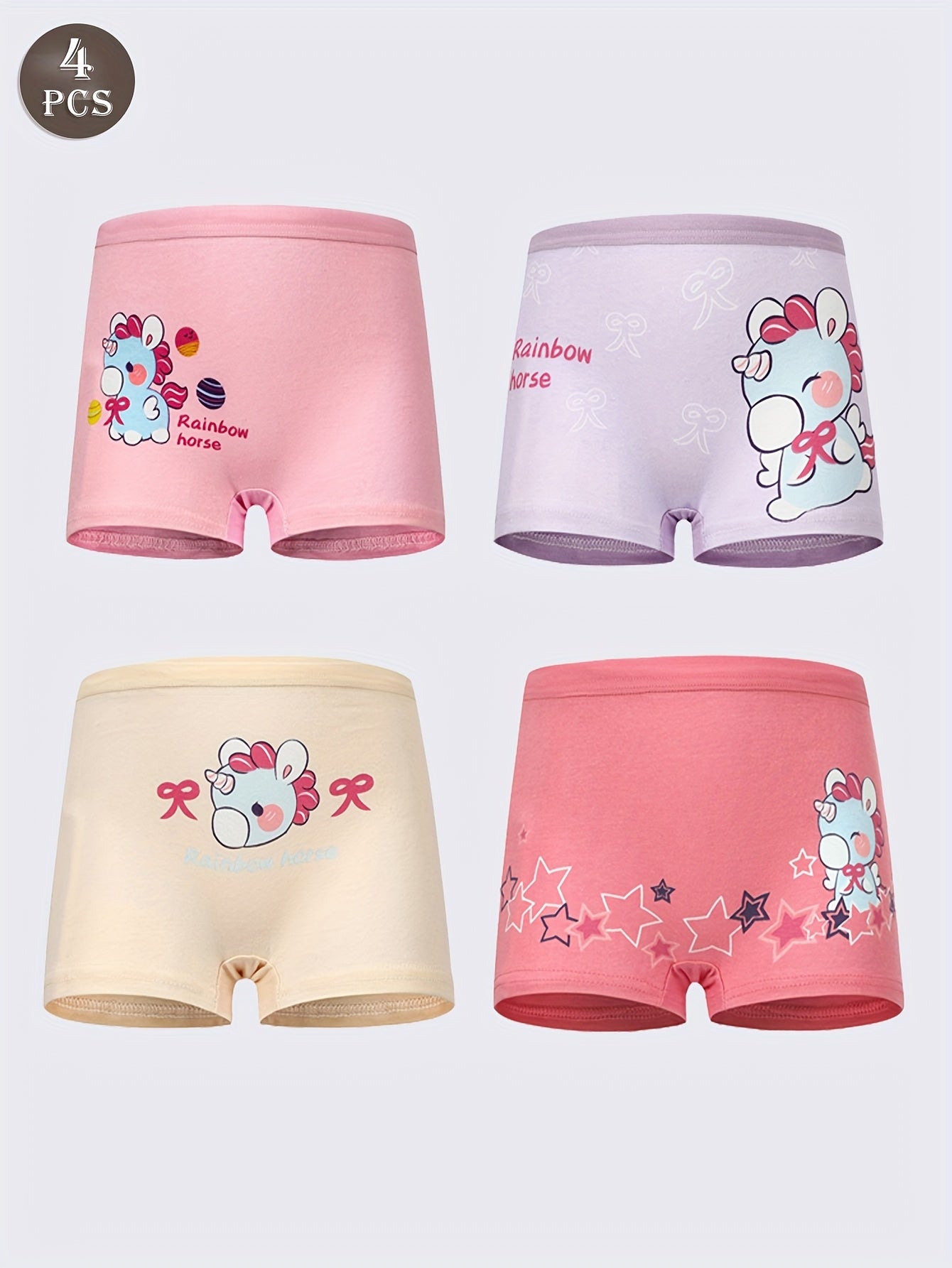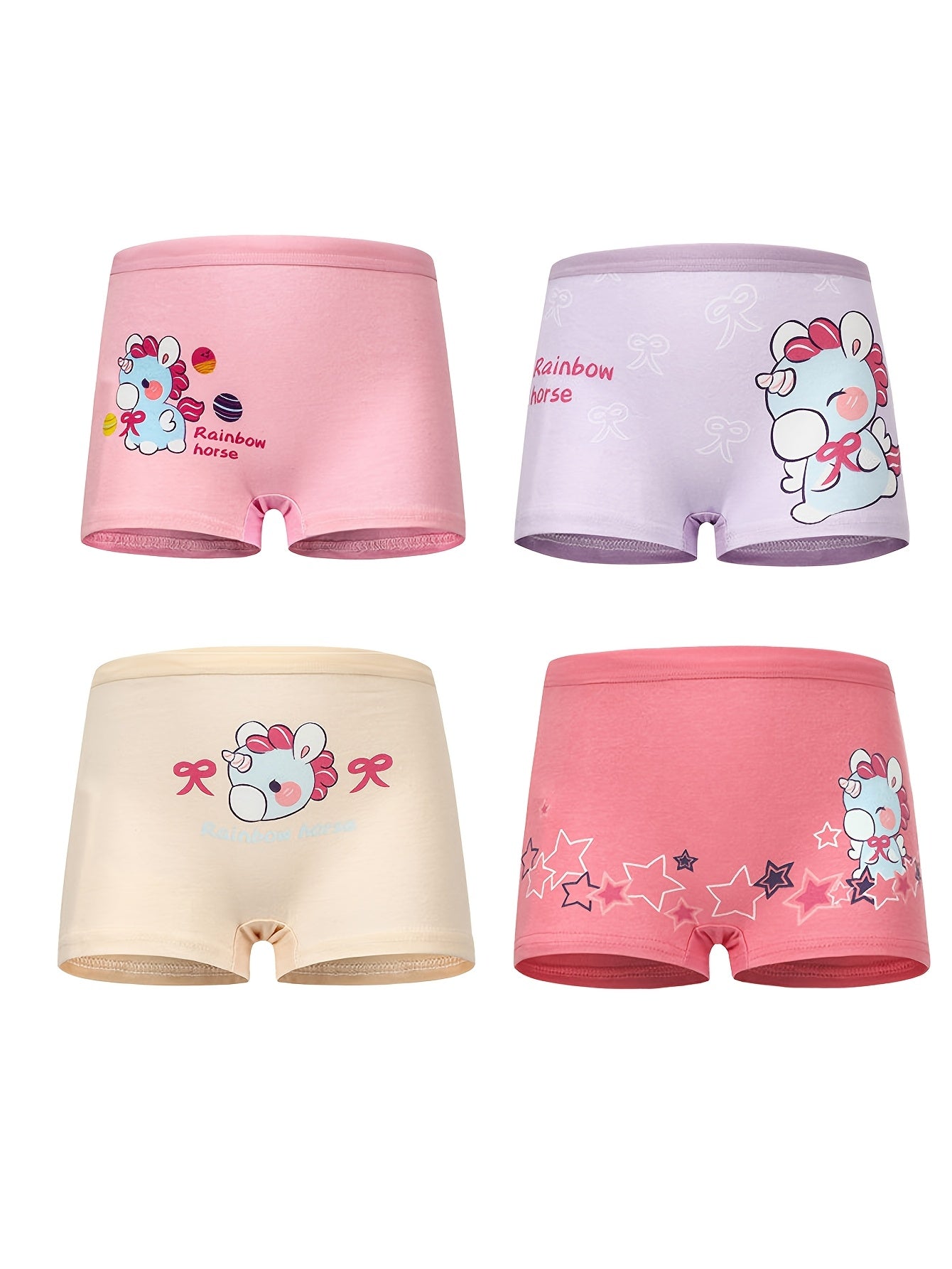 Աղջիկների 4 փաթեթանոց բամբակյա բռնցքամարտիկ, գեղեցիկ մուլտֆիլմերի տպագրություն, միջին ձգվող տրիկոտաժե գործվածք, սովորական պիտանի, 95% բամբակ 5% սպանդեքս, հարմարավետ ներքնազգեստ երեխաների համար