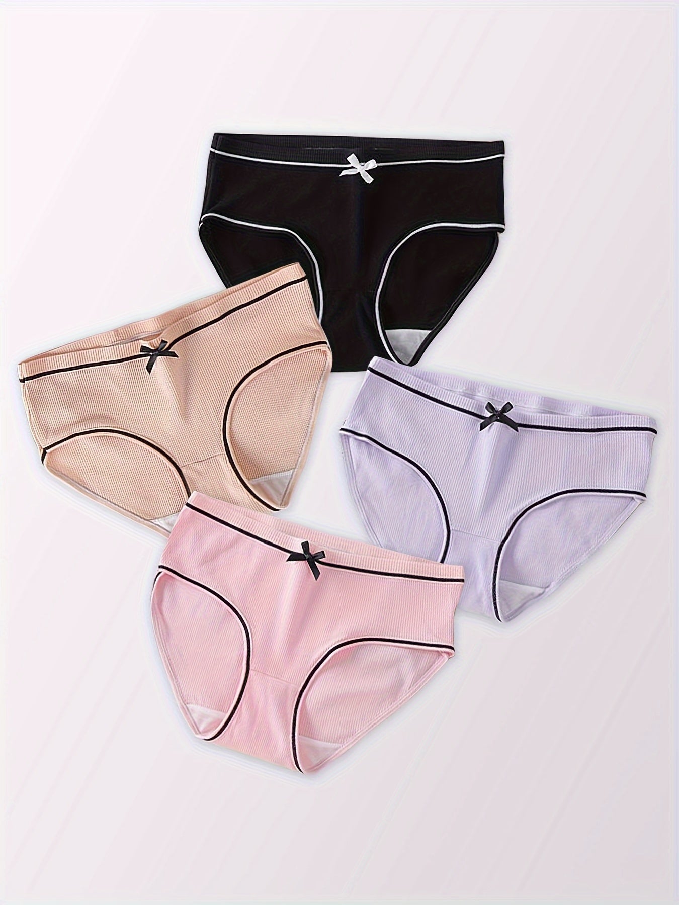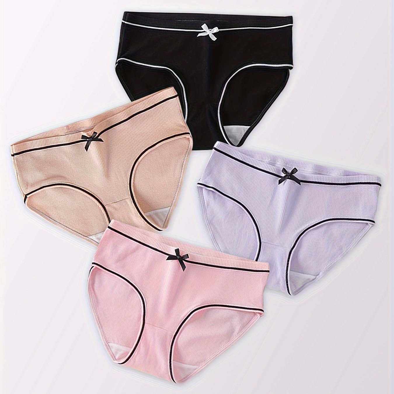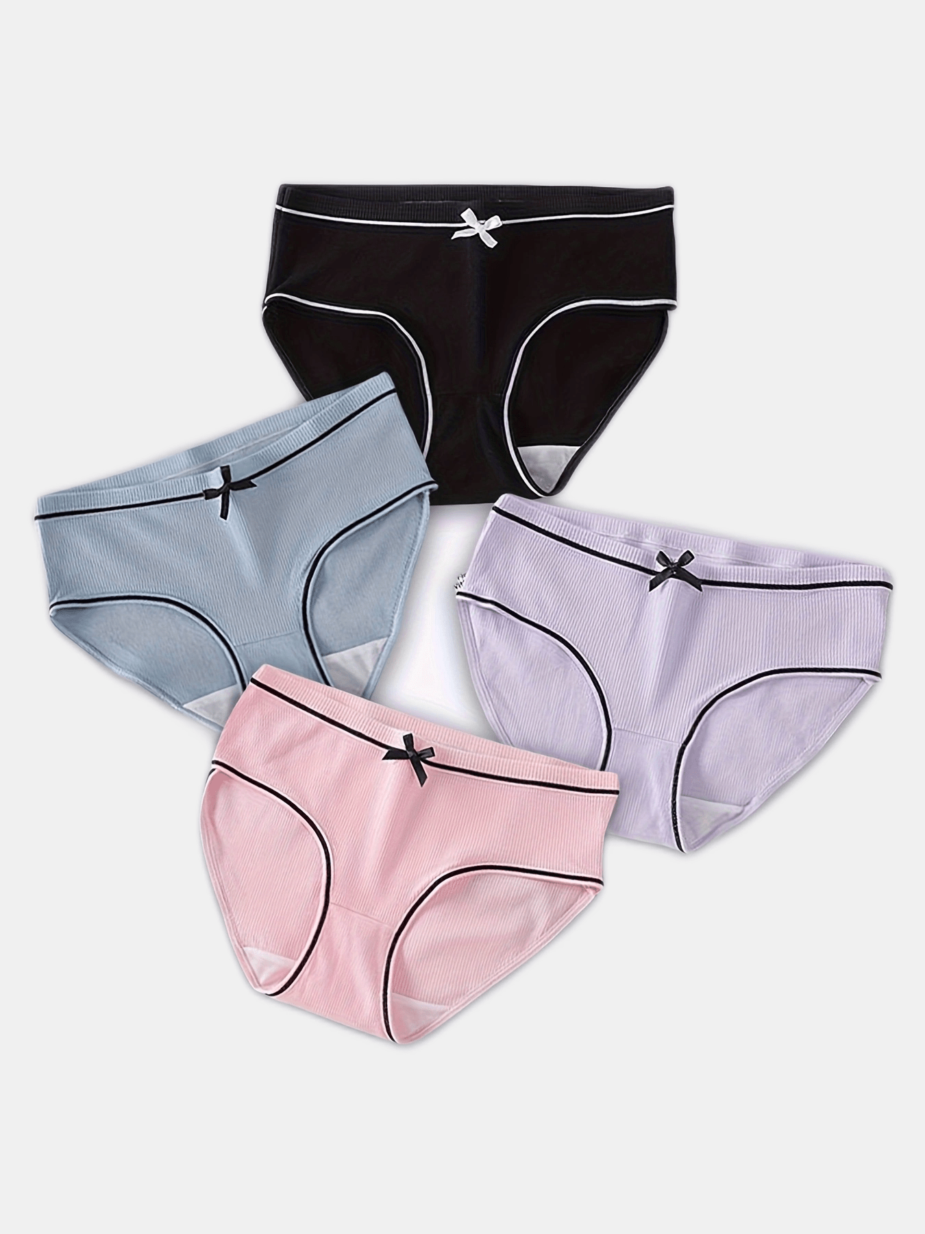 Աղջիկների 4 փաթեթավոր կիսաճիտք, փափուկ շնչող պոլիեսթեր և սպանդեքս խառնուրդ, միաձույլ գույն՝ գեղեցիկ աղեղի դետալներով, ամբողջ սեզոնային տրիկոտաժե ներքնազգեստ դեռահասների համար