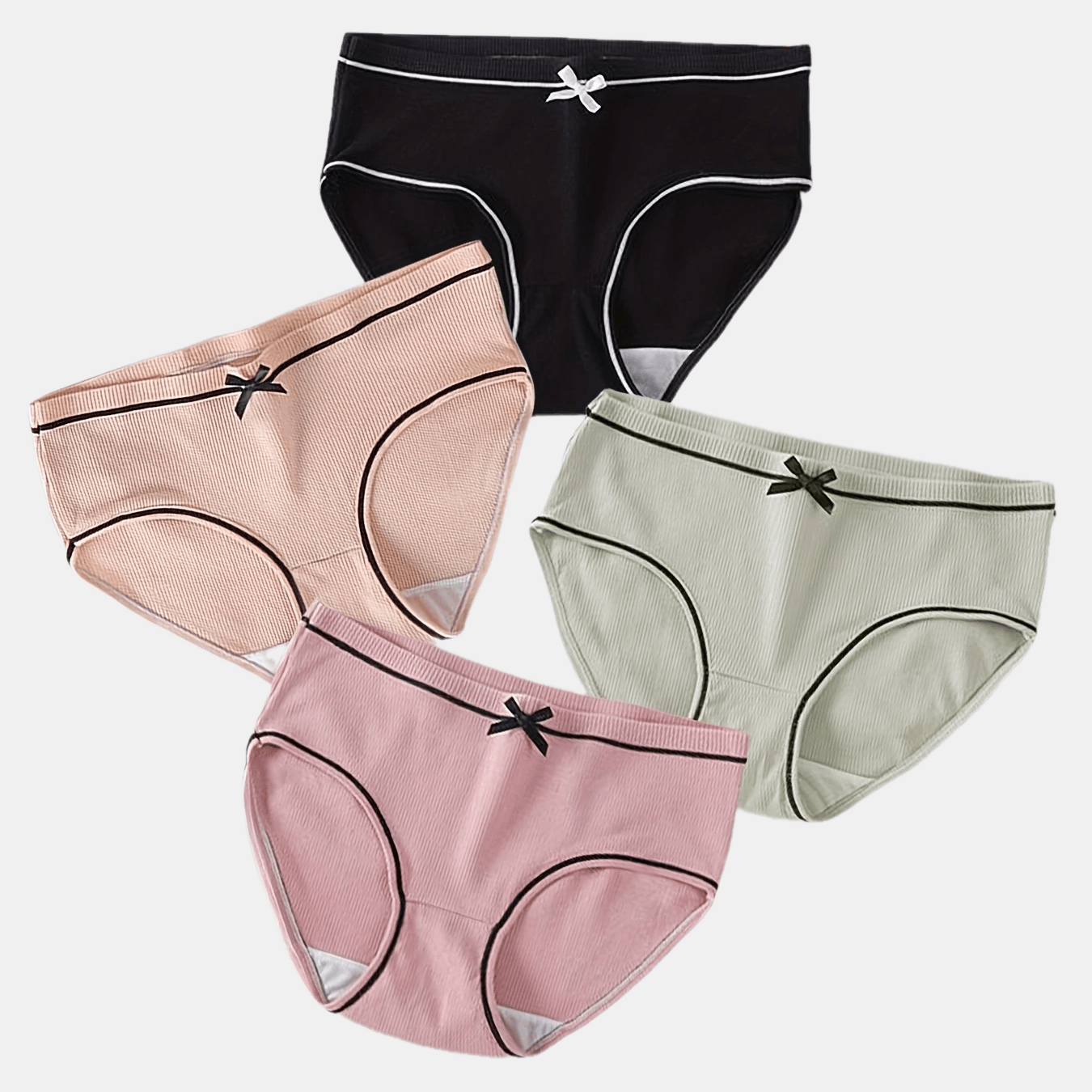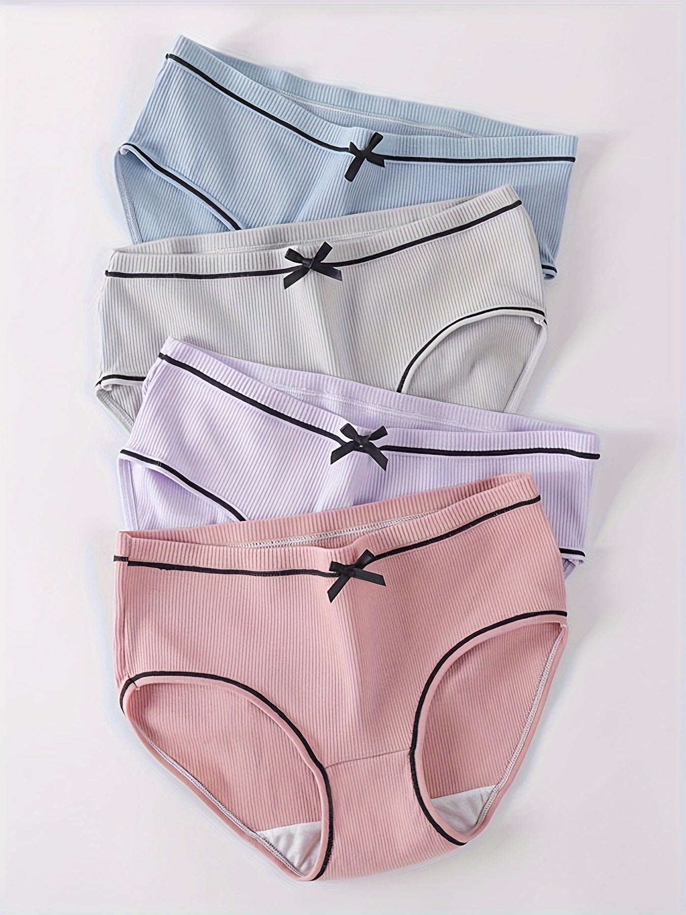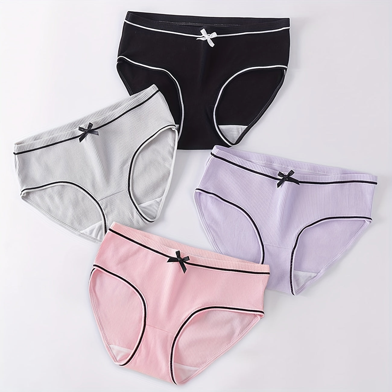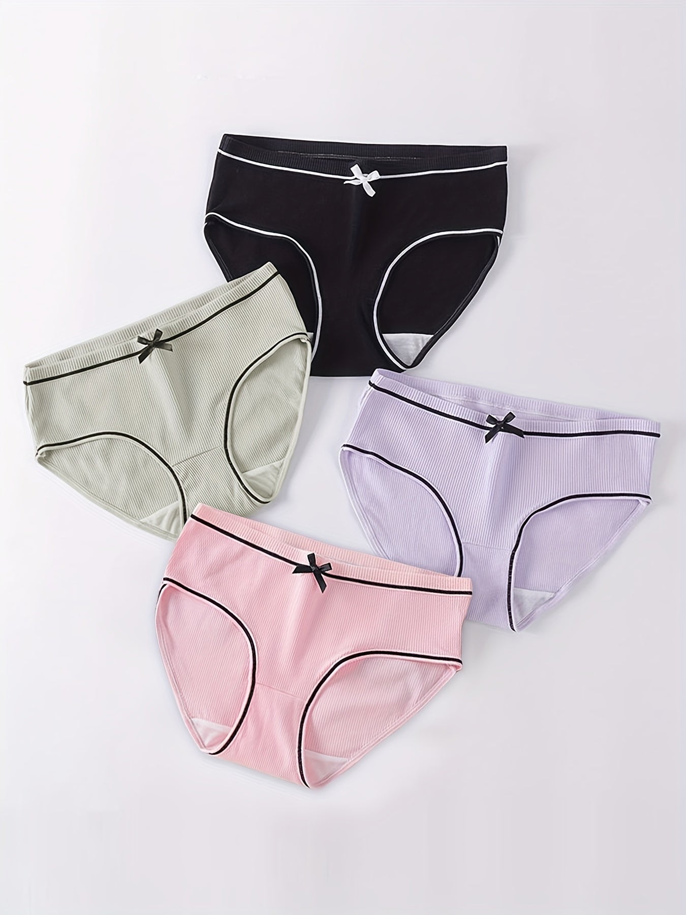 Աղջիկների 4 փաթեթավոր կիսաճիտք, փափուկ շնչող պոլիեսթեր և սպանդեքս խառնուրդ, միաձույլ գույն՝ գեղեցիկ աղեղի դետալներով, ամբողջ սեզոնային տրիկոտաժե ներքնազգեստ դեռահասների համար