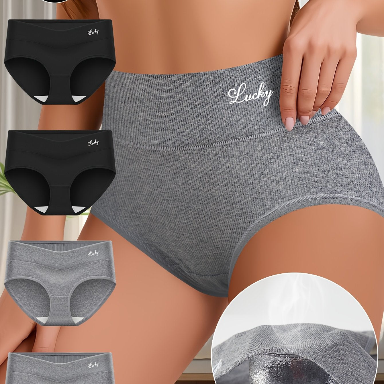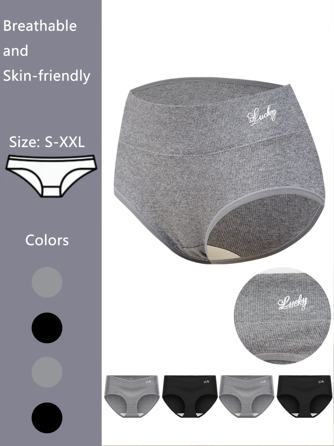 4-փաթեթ QUASTI բամբակյա միջին վերարկու կարճ վարտիք, այբուբեն տպագիր, շնչող տրիկոտաժե գործվածք, պարզ ոճ, հարմարավետ մաշկի համար հարմար ներքնազգեստ կանանց համար