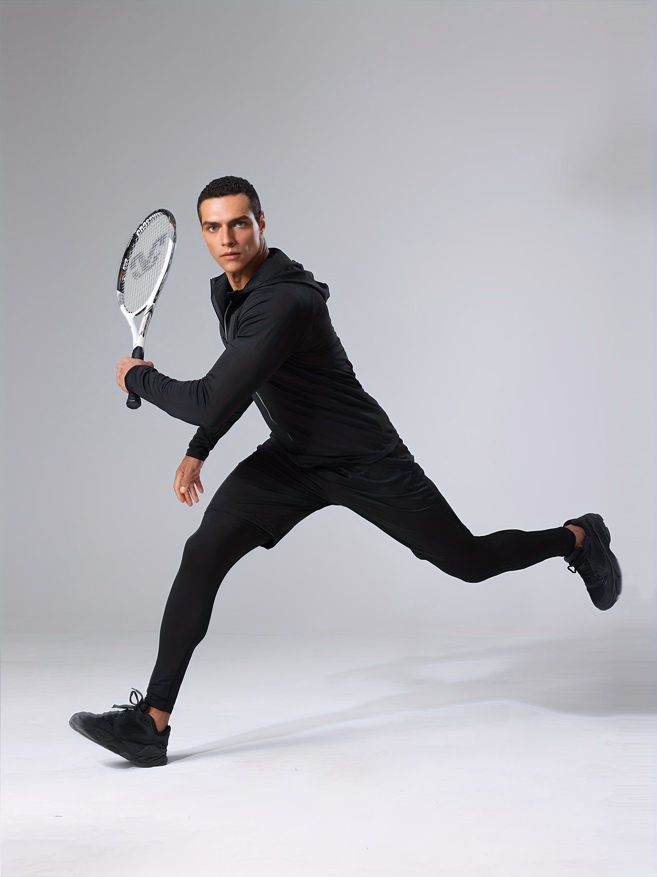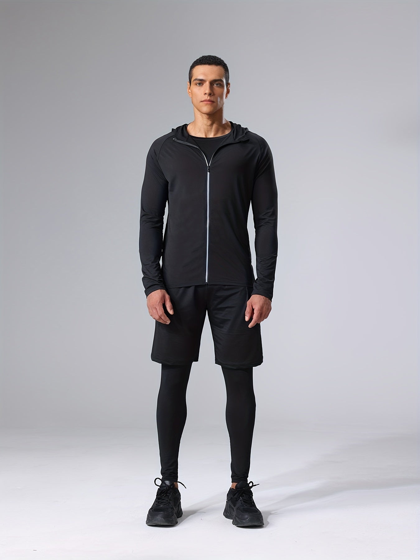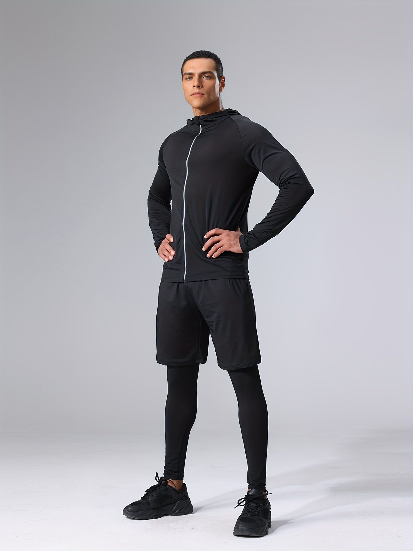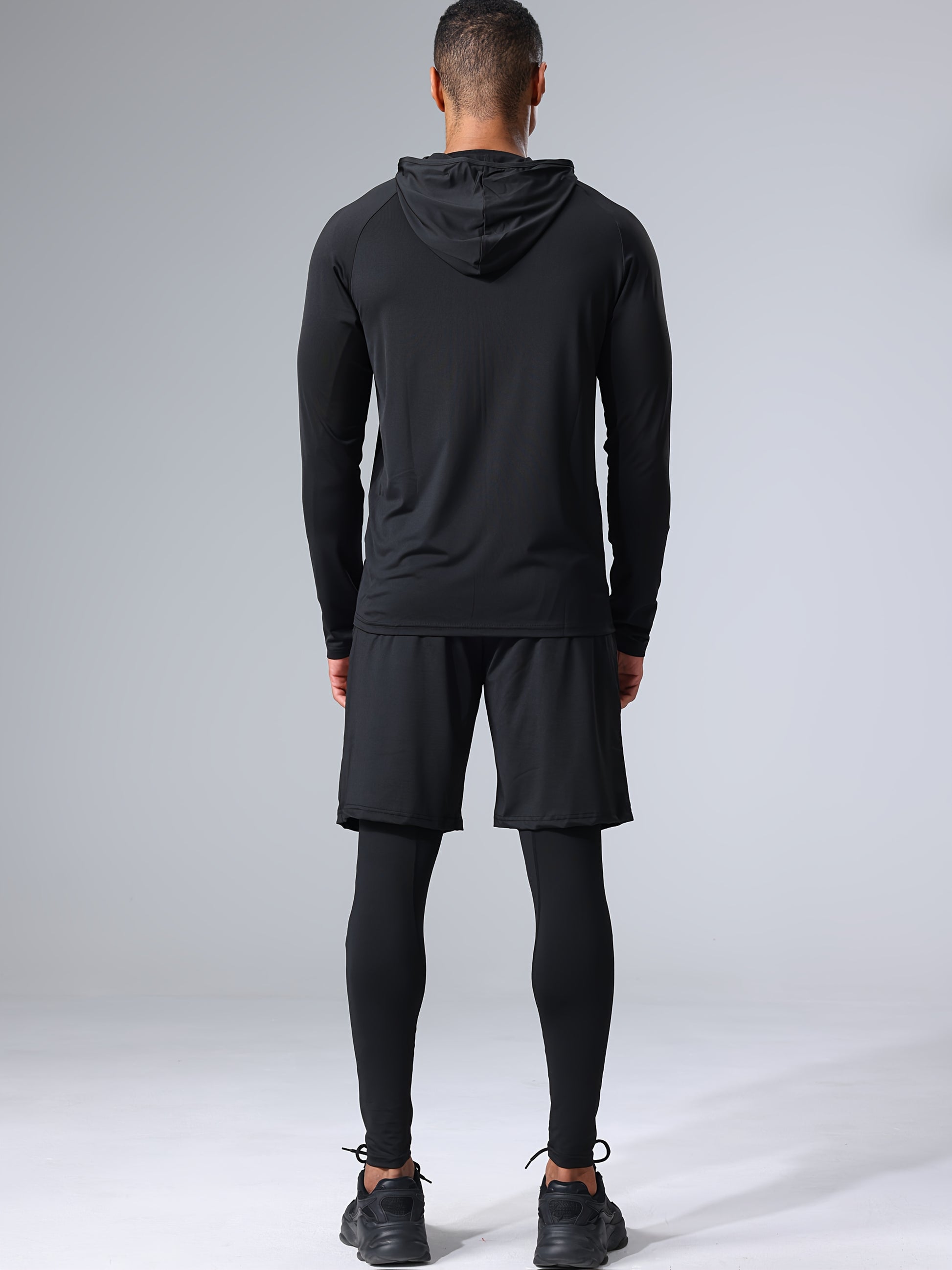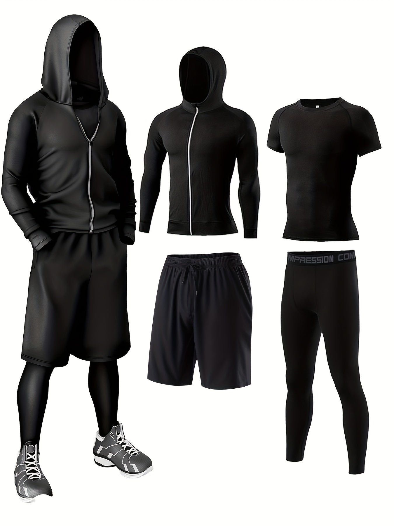 4 հատ մարզական սպորտային հագուստի հավաքածու, պոլիեսթեր 95% էլաստան 5% տրիկոտաժե գործվածք, բոլոր եղանակների համար նախատեսված կլոր վզնոցով վերնաշապիկ, նեղ չափսի միագույն, շնչող, արագ չորացող՝ վազքի, ֆիթնեսի, հեծանվավազքի և բացօթյա գործունեության համար։