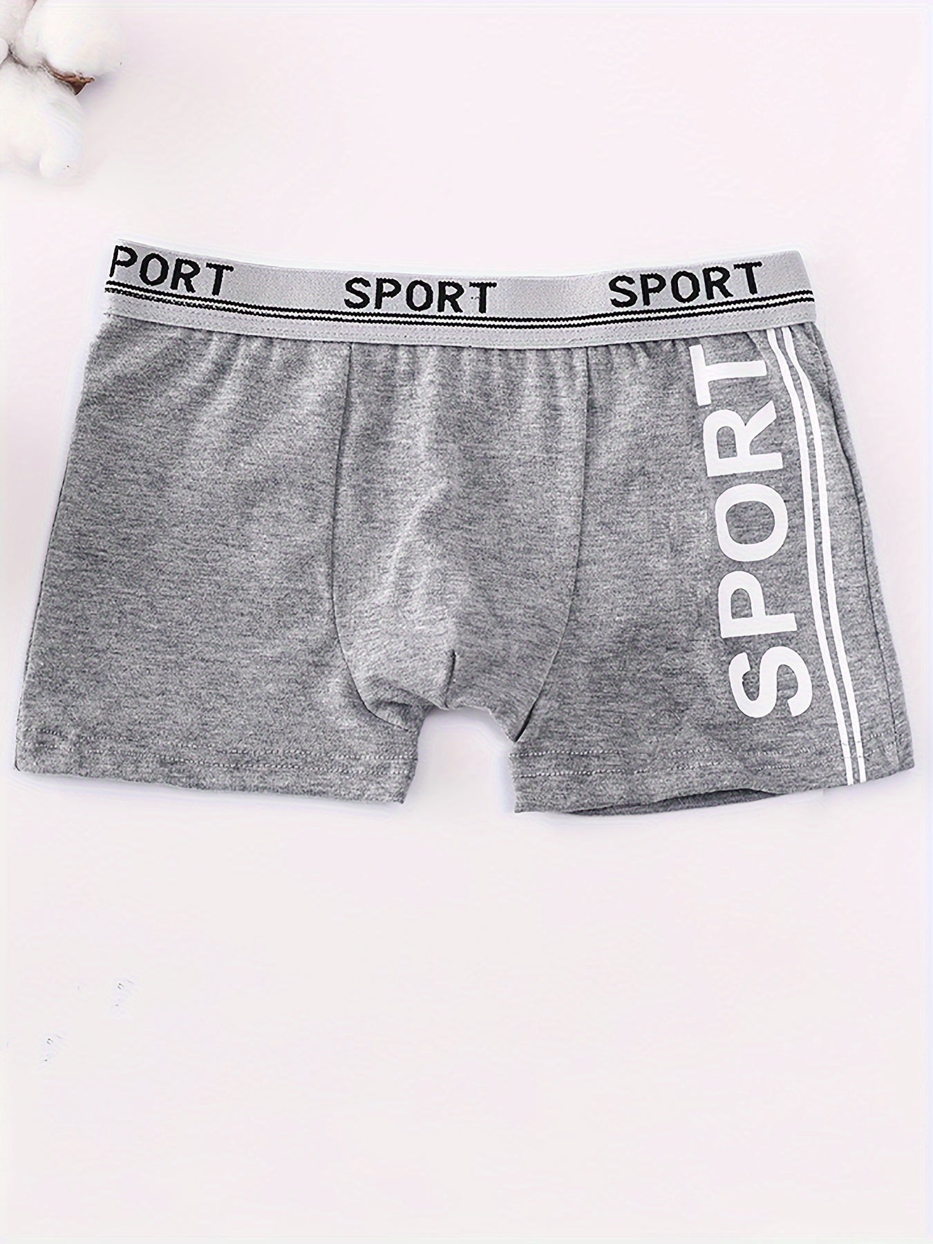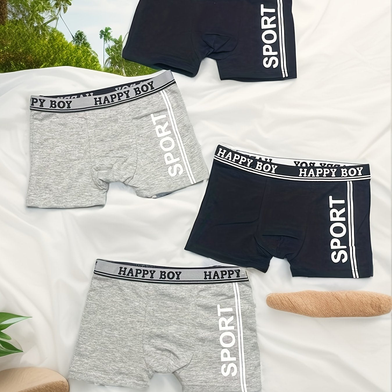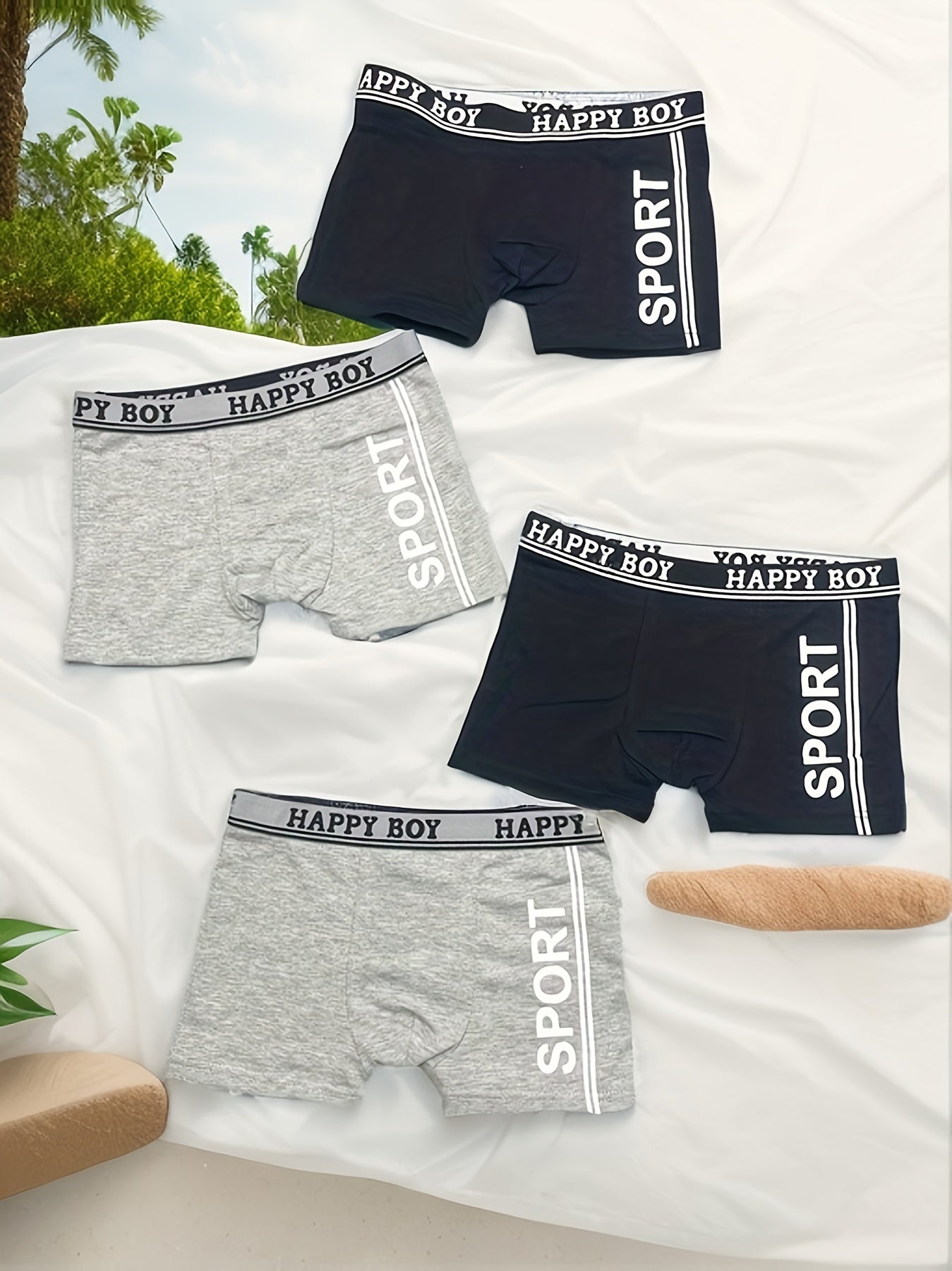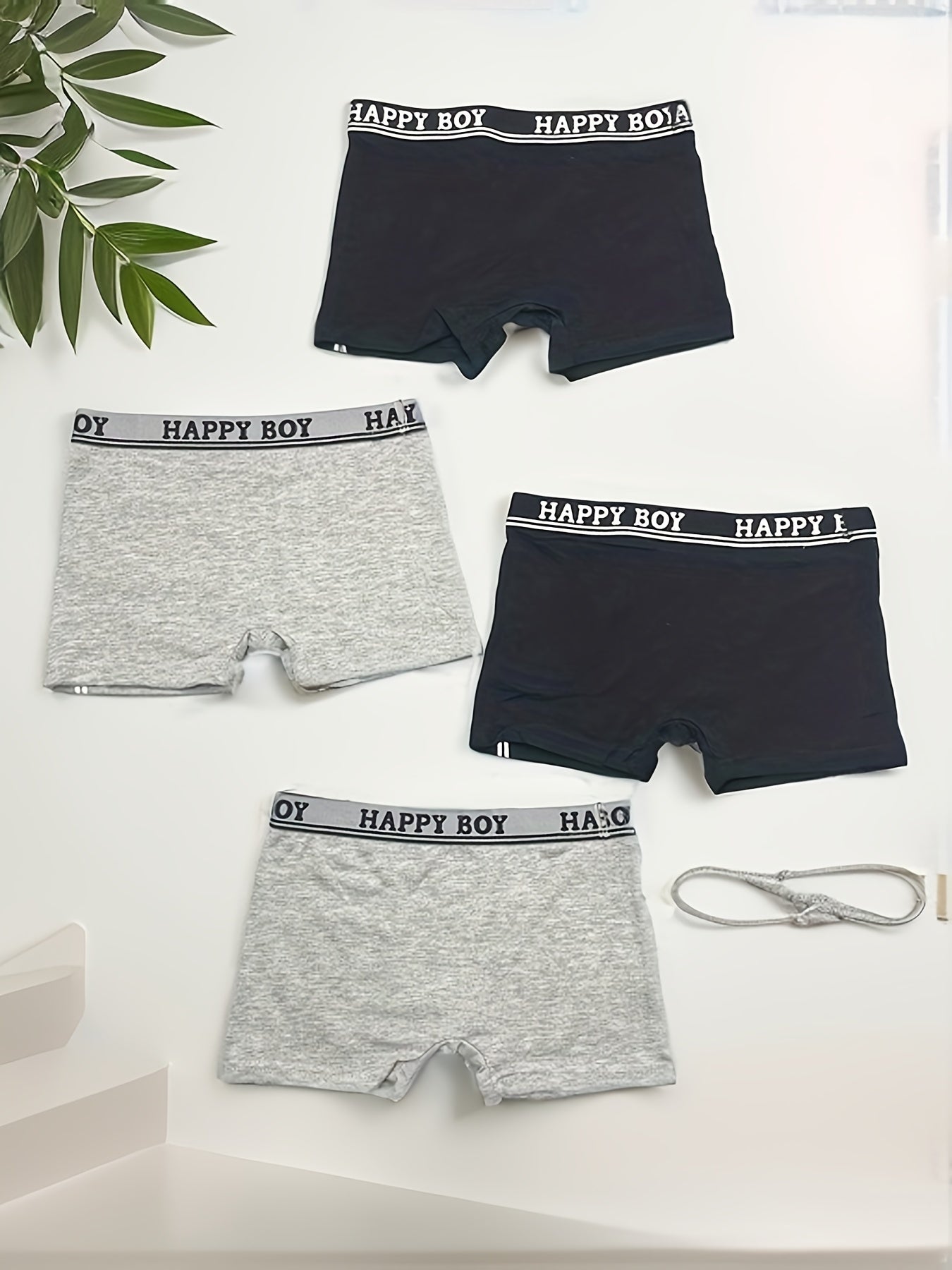 4 հատ Տղաների սպորտային բռնցքամարտիկ շապիկներ - հարմարավետ բամբակյա խառնուրդ, շնչող ներքնազգեստ «HAPPY BOY» գոտկատեղով, ոտքերի առաձգական բացվածքներ բոլոր սեզոնային հագուստի համար, լվացվող մեքենայում