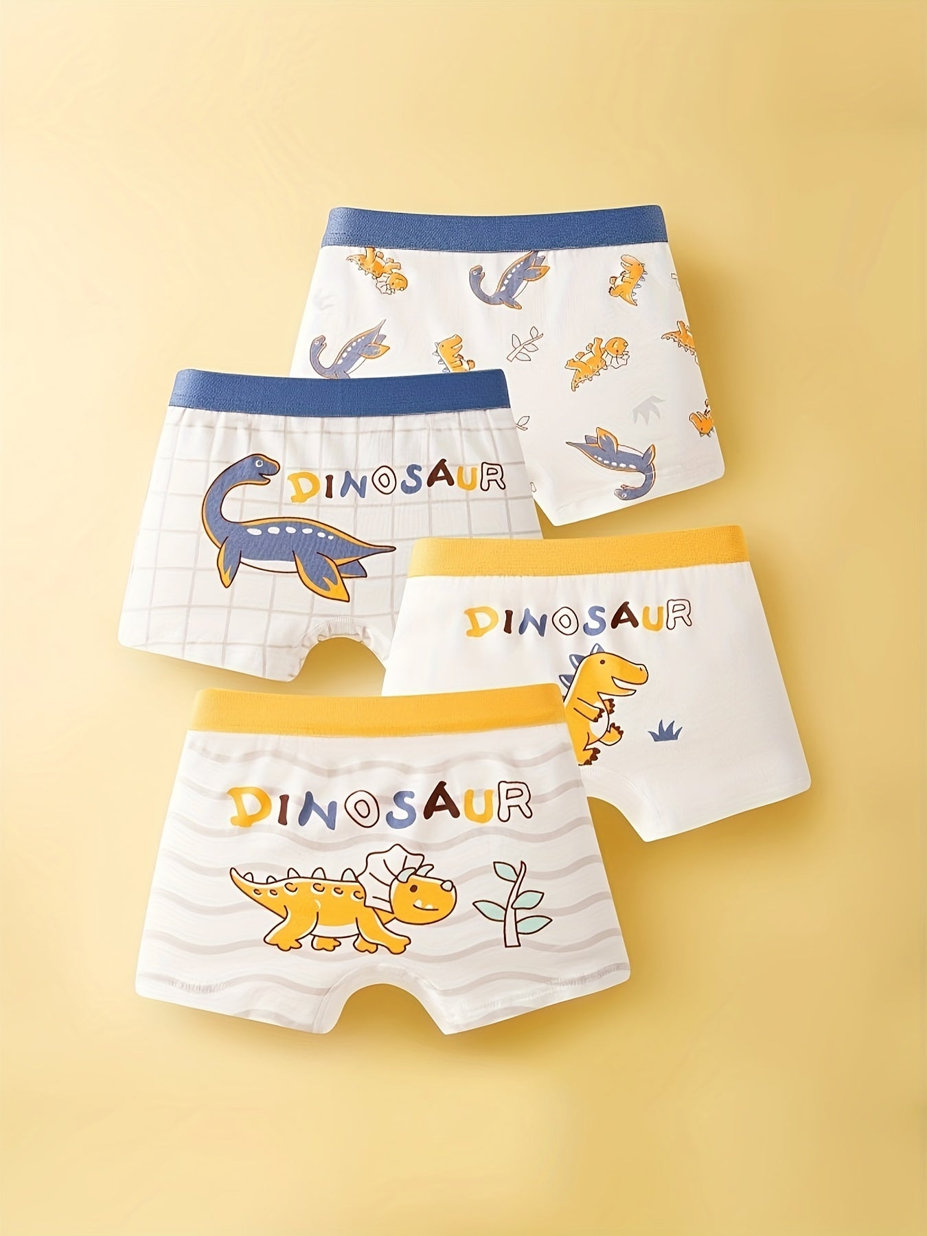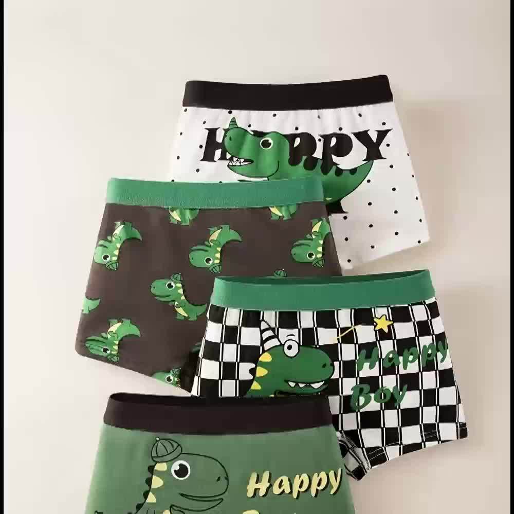 4 հատ Մանկական բռնցքամարտիկ շորտեր, գեղեցիկ մուլտֆիլմ Դինոզավրային տպագիր բամբակյա ներքնազգեստ, փափուկ հարմարավետ շնչող մանկական շորտեր բոլոր եղանակների համար