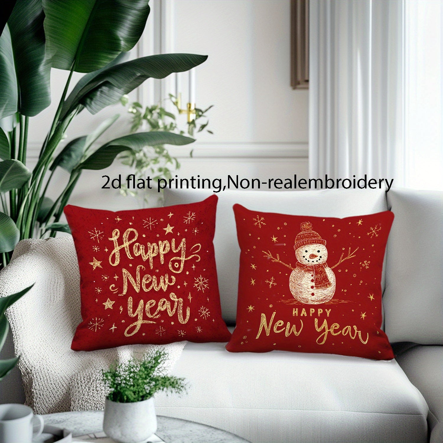 4pcs Festive New Year Throw Pillow Covers, 45.72x45.72 cm, Soft Polyester with Zipper Closure, Machine Washable, Contemporary Printed Designs - Ideal for Holiday Home Decor and Seasonal Gifts, Decorative Pillows | Cheerful Ho