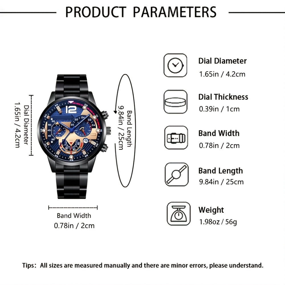 4pcs Men'S Practical Set, Including a Business Quartz Watch, a Business Belt, a Business Wallet, And Stylish Glasses - The All-Black Series Highlights a Business Demeanor, Representing Men in Business, High-End And Classy