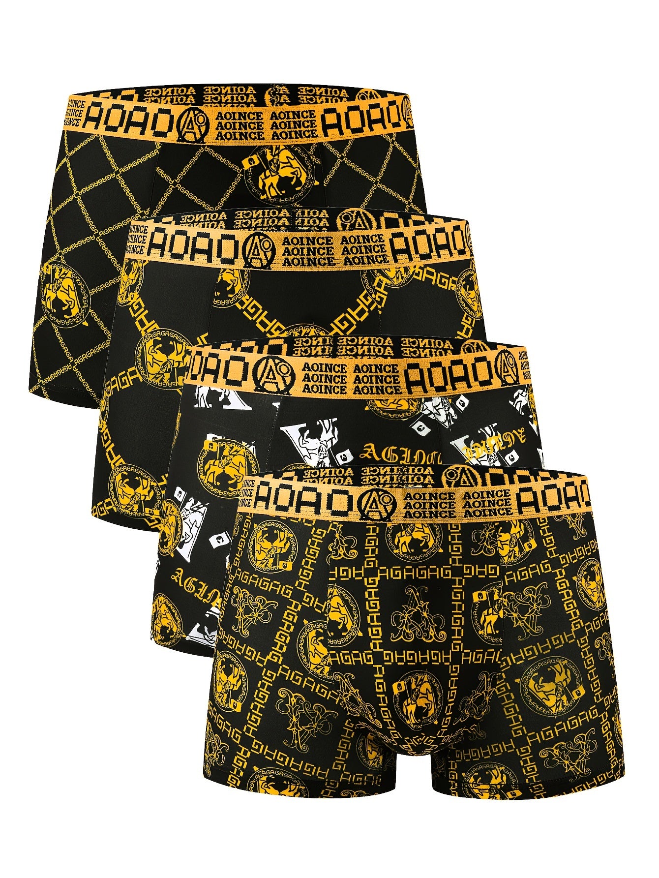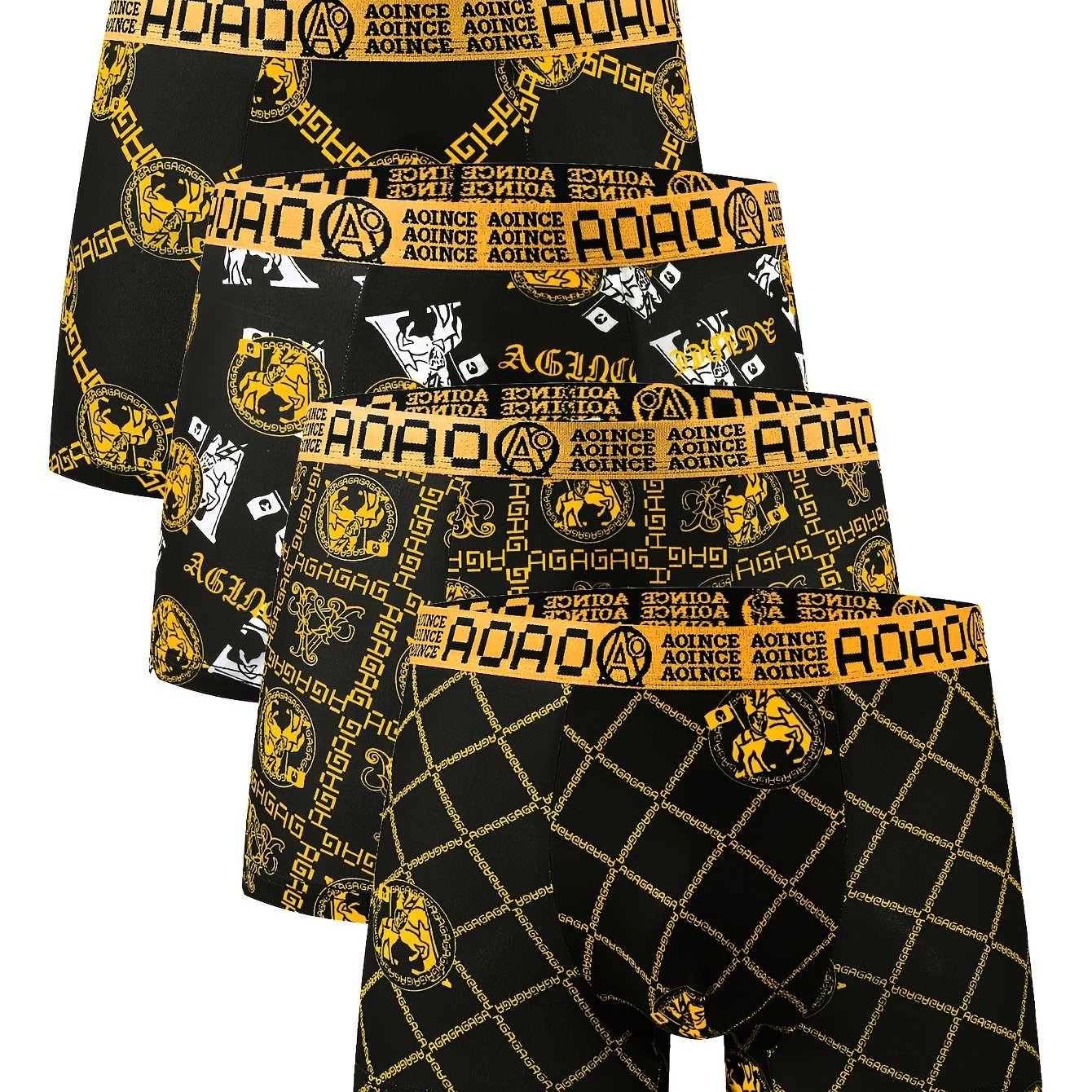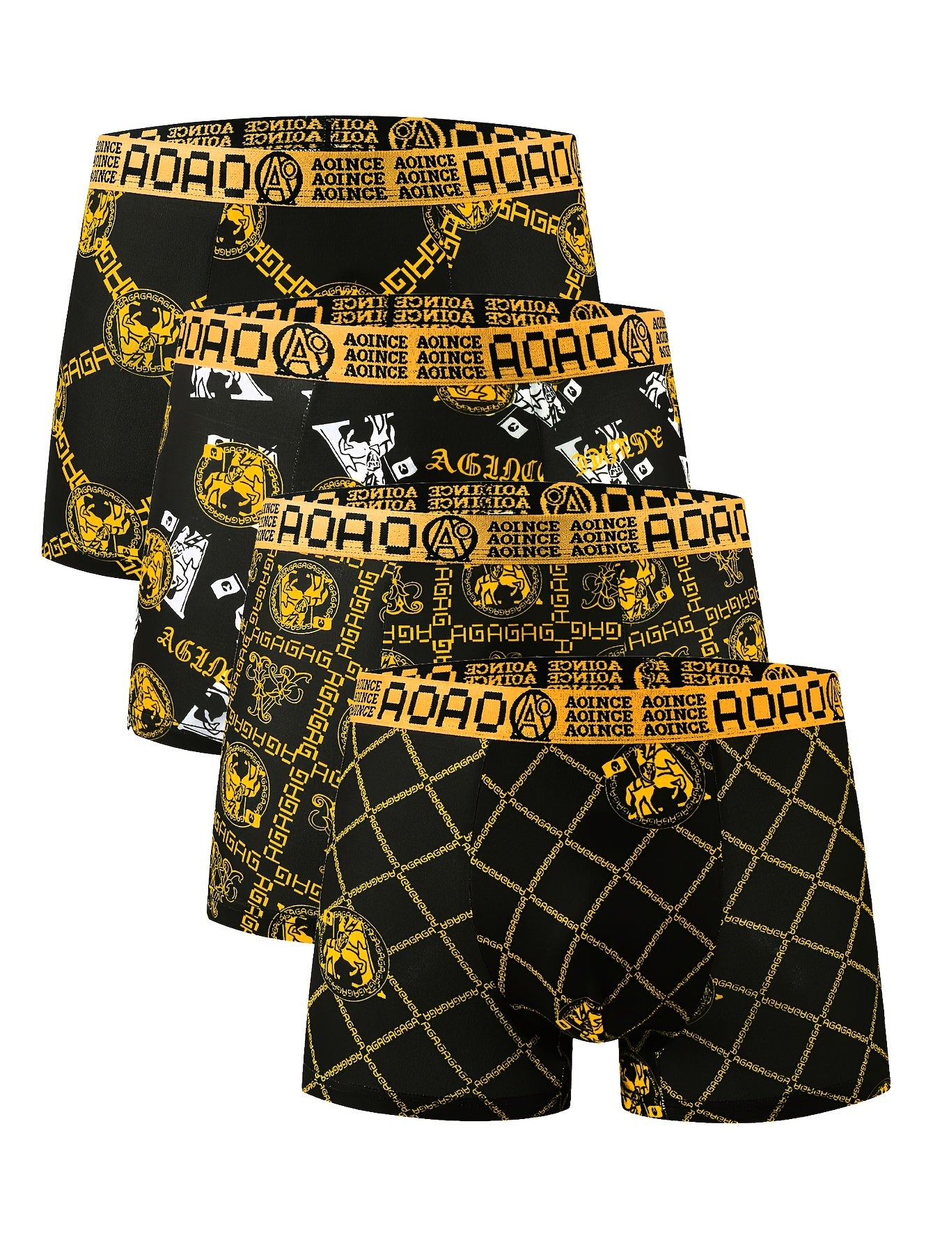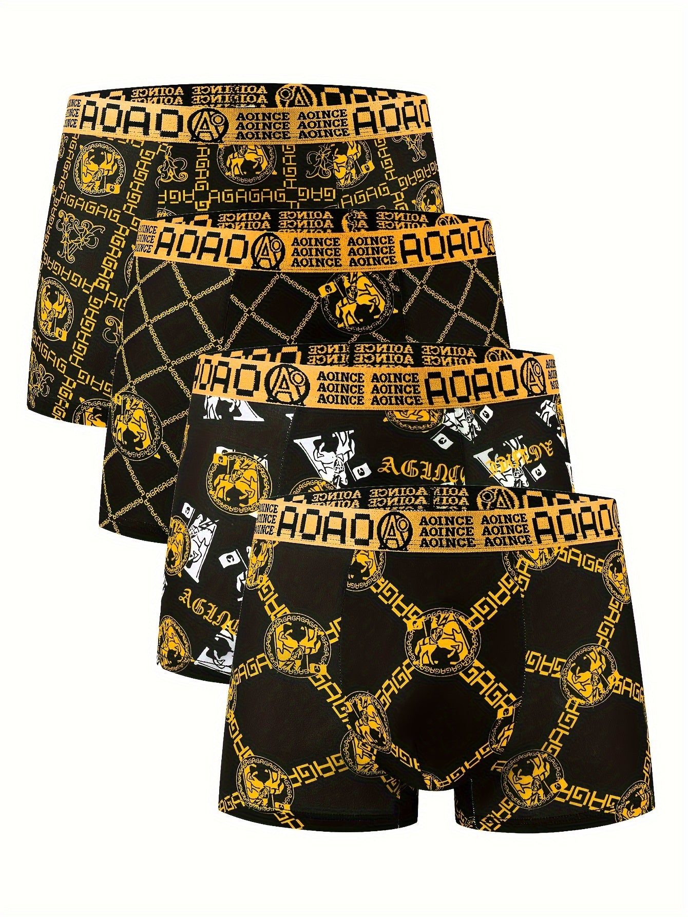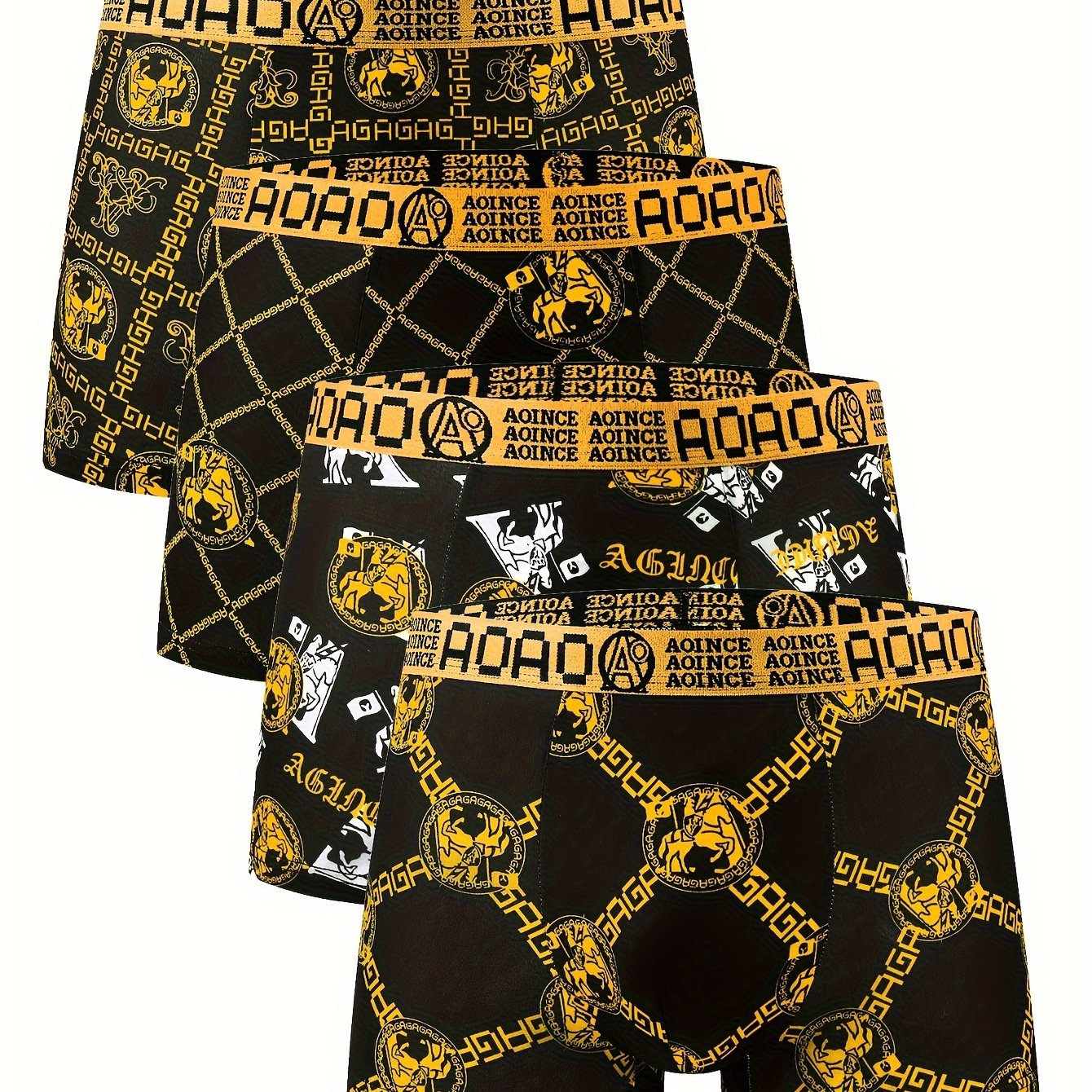 4 հատ Նորաձևության սև ոսկե շղթայի տպագրված տղամարդկանց ներքնազգեստ, փափուկ, հարմարավետ, շնչող տղամարդու հարթ ներքնազգեստ, արագ չորացող նորաձև սպորտային ներքնազգեստ