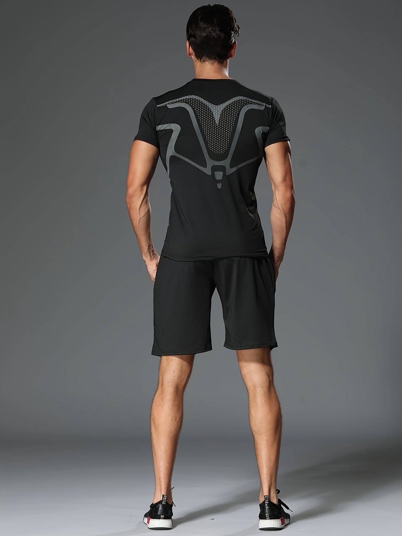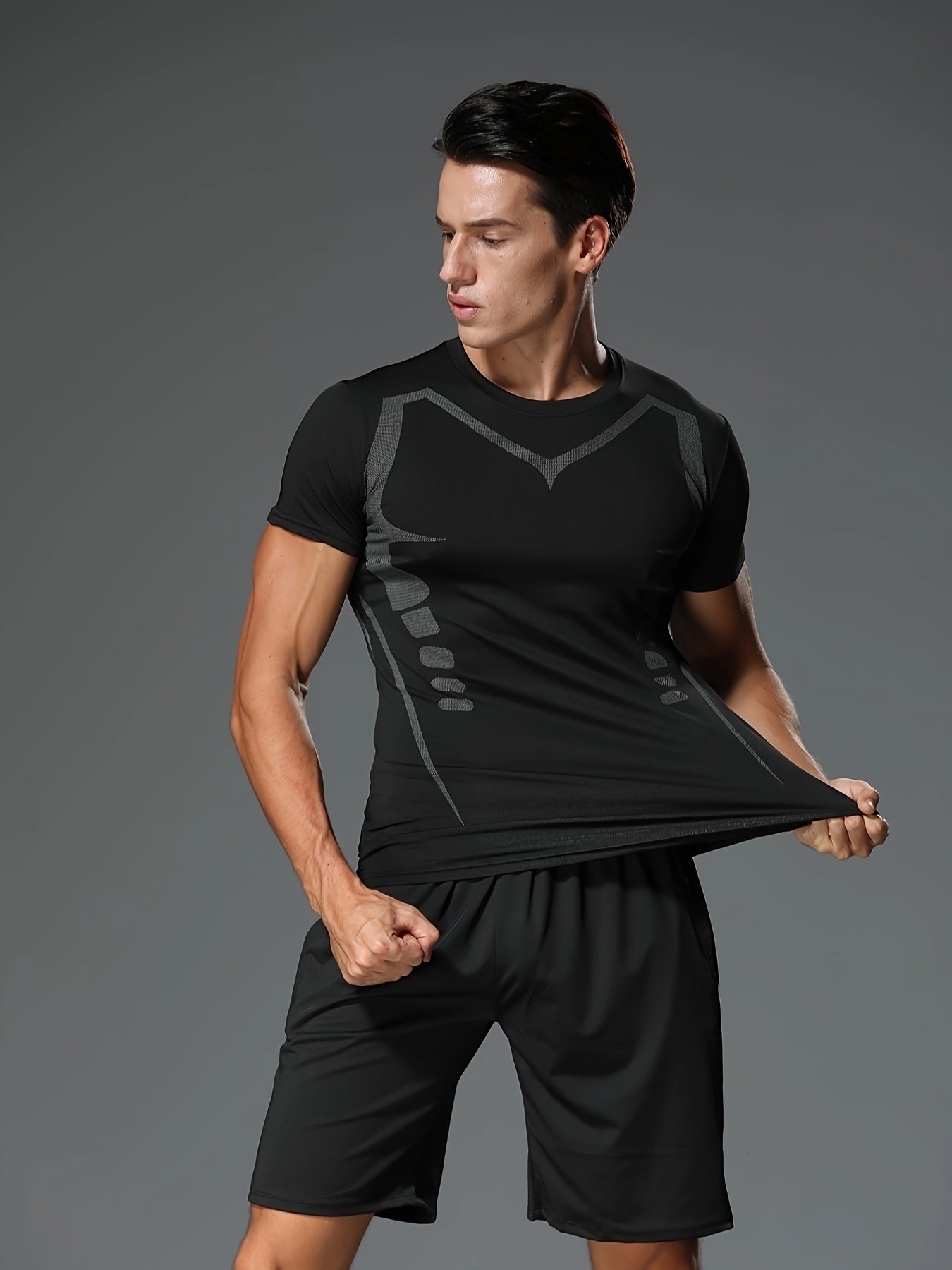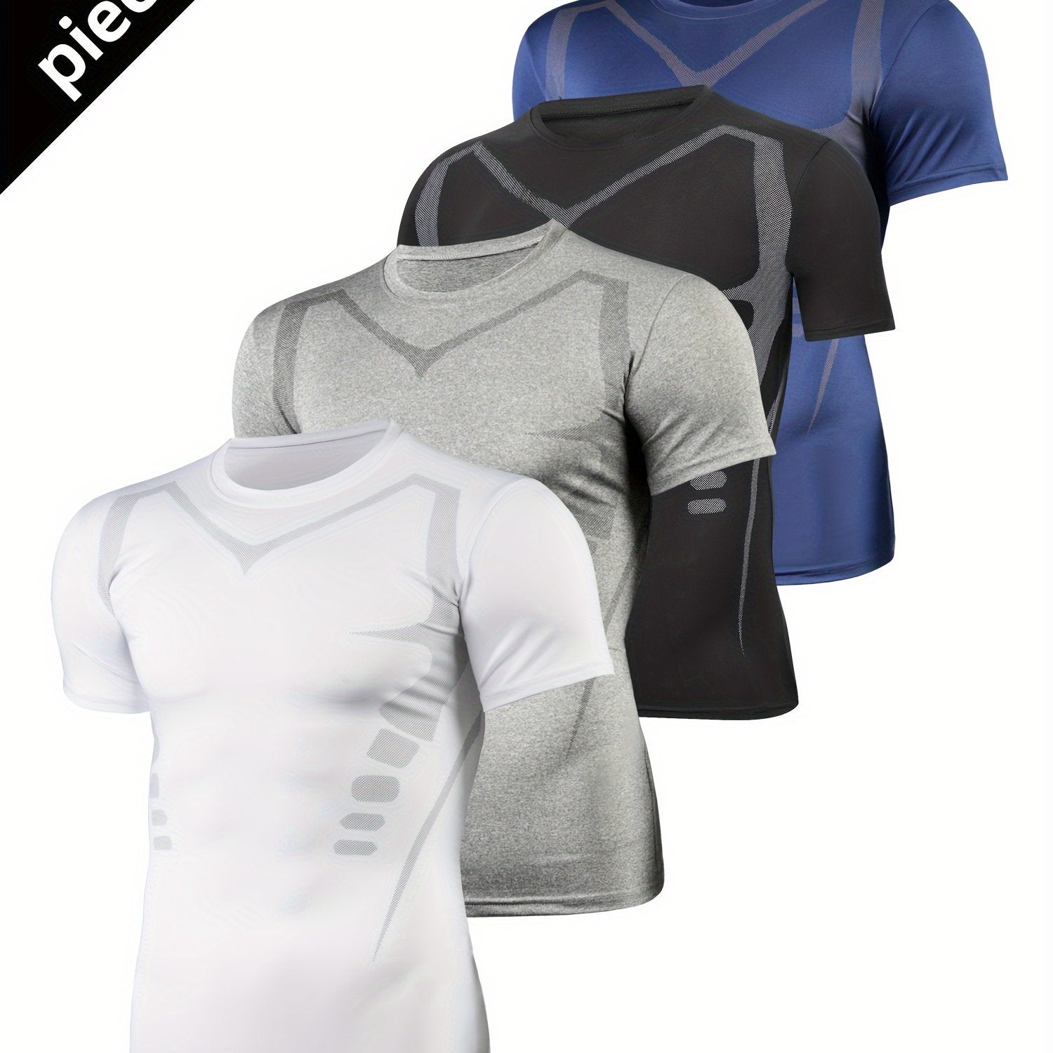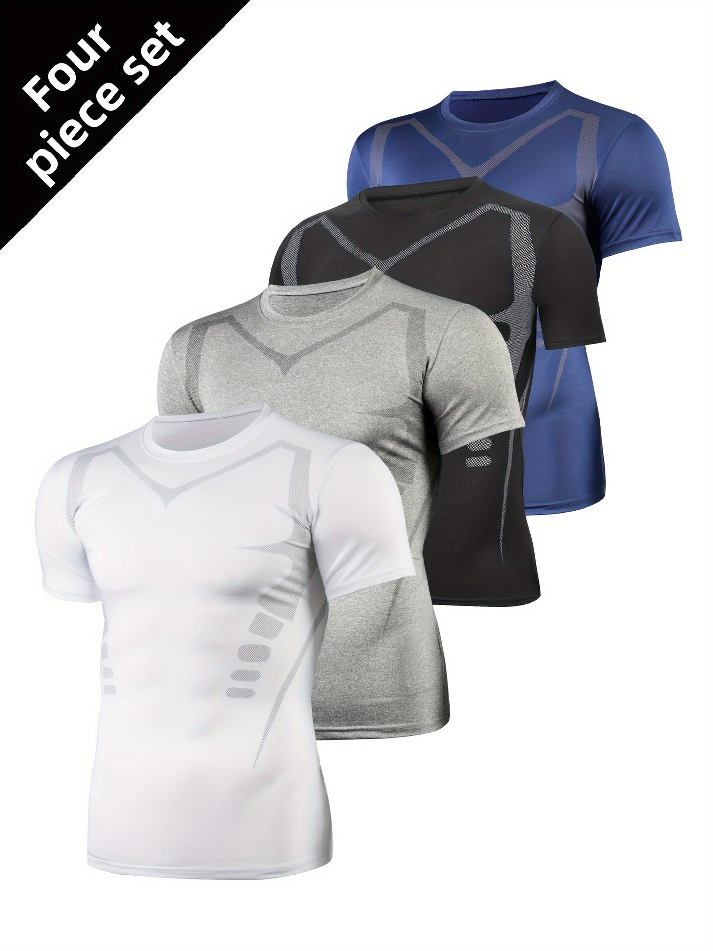 4 հատ սպորտային ամառային տղամարդկանց նեղ մարզումների կարճ թևքերով սպորտային ֆիթնես հագուստի հավաքածու, բասկետբոլի քրտինքը կլանող, արագ չորացող նեղ կոստյում