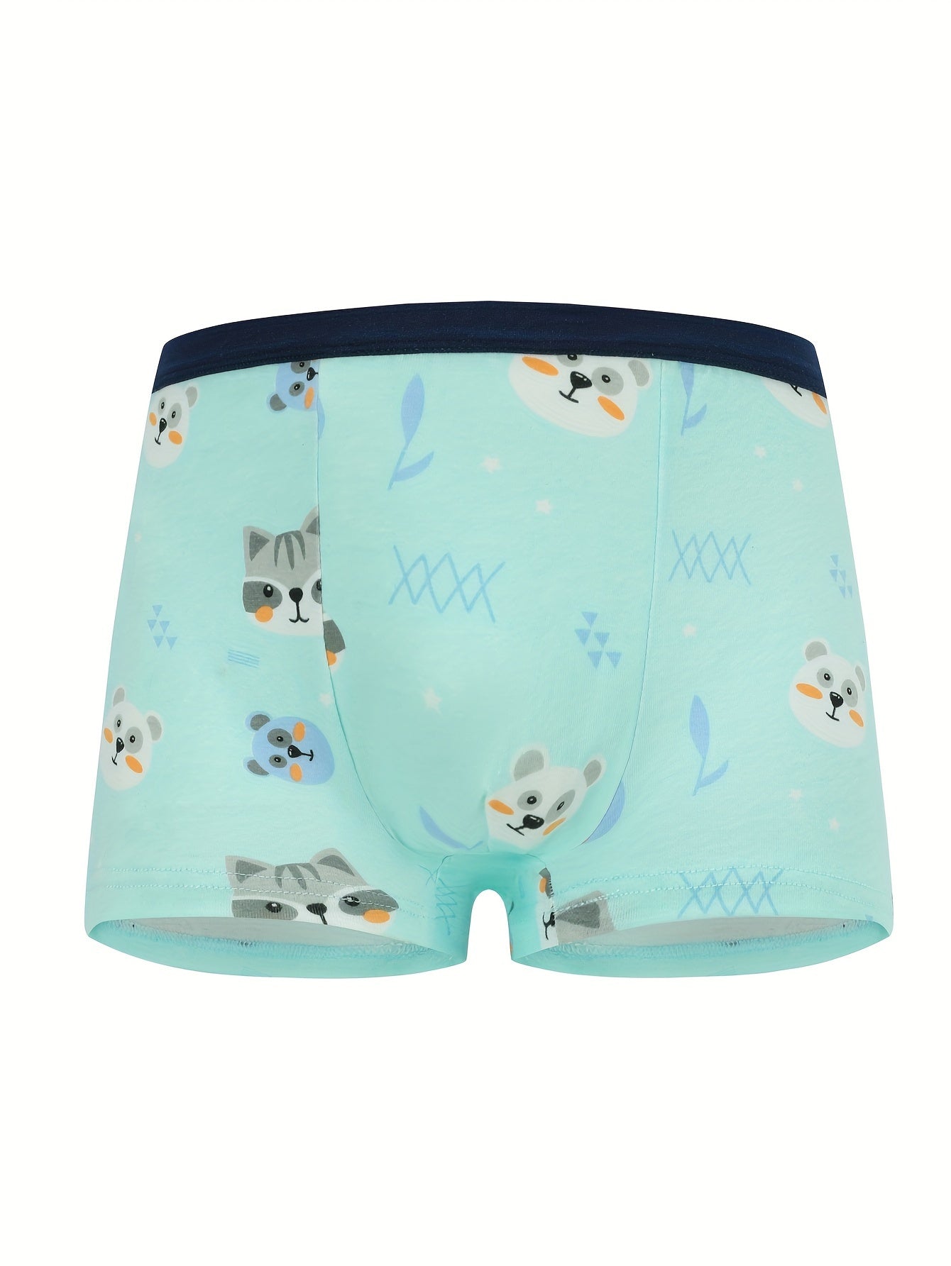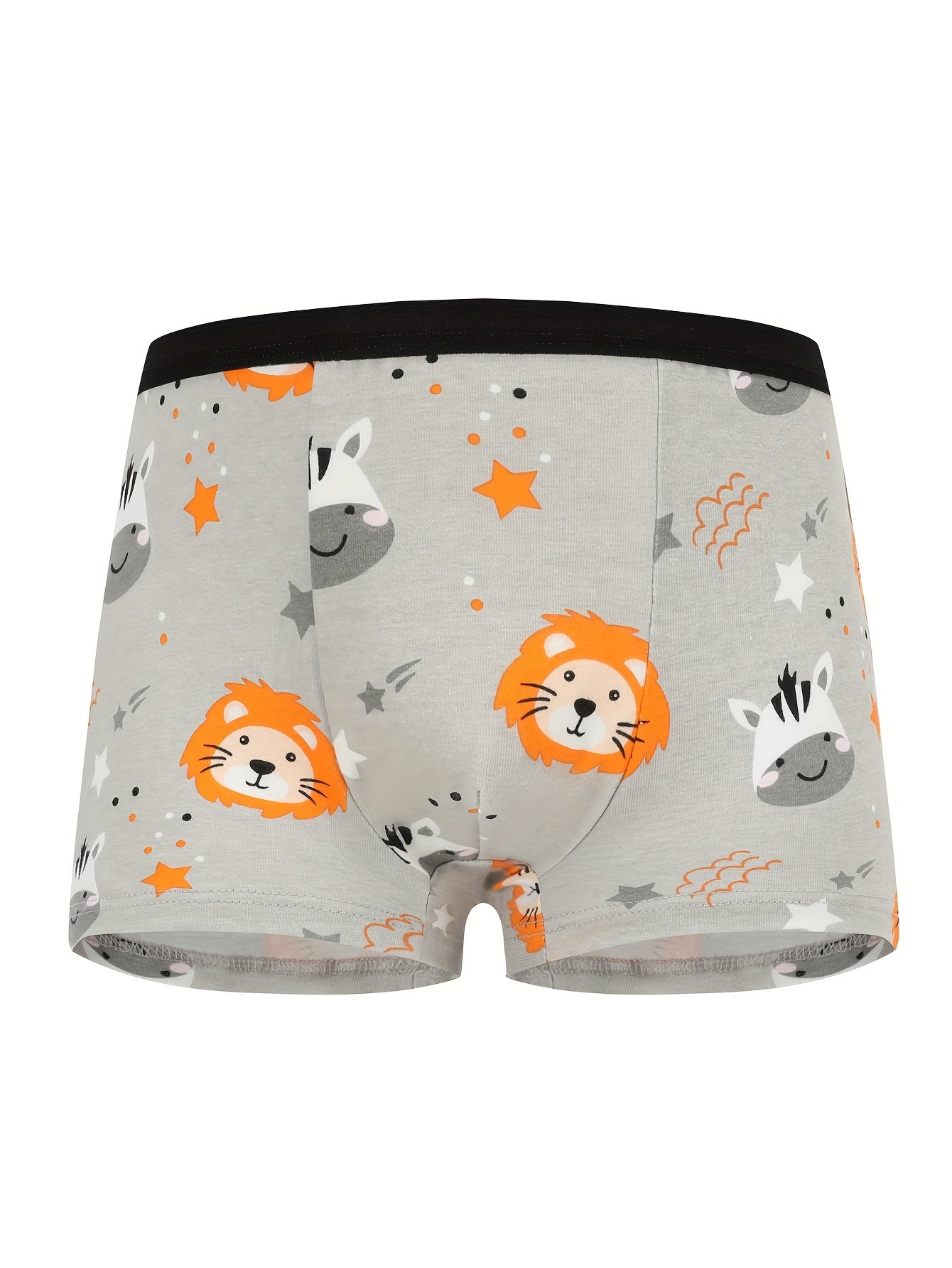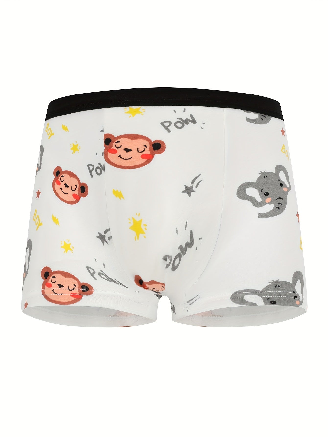 4 հատ Փափուկ բամբակյա տղաների բռնցքամարտիկ շապիկներ՝ գեղեցիկ կենդանիների տպագրությամբ. Հարմարավետ և շնչող ներքնազգեստ երիտասարդների համար
