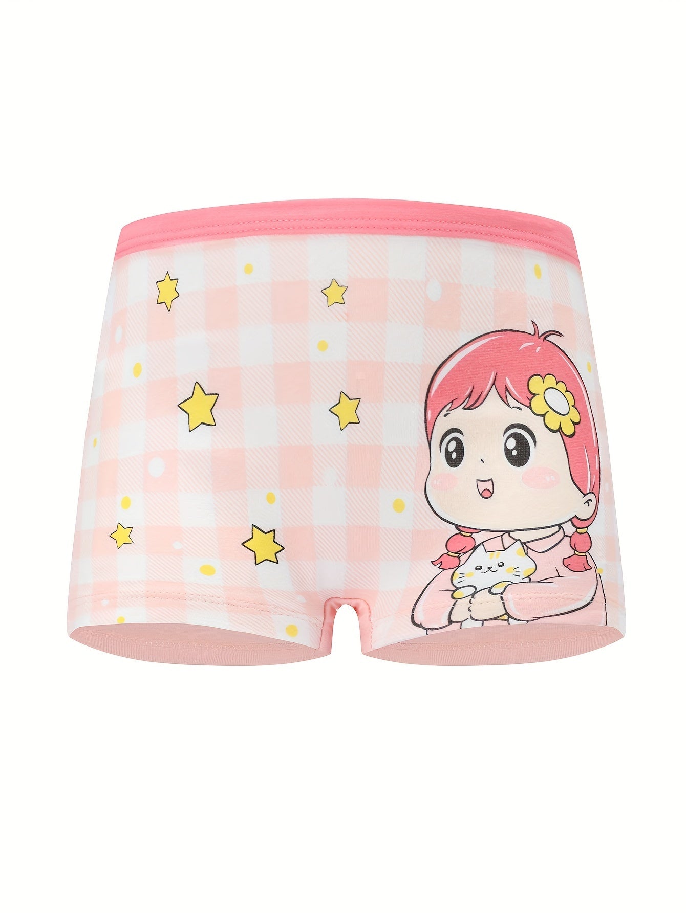 4 հատ Փափուկ բամբակյա աղջիկների բռնցքամարտիկ շորտեր, մուլտֆիլմերի նախշերով աղջիկների վարտիք, հարթ ոտք, ներքնազգեստ