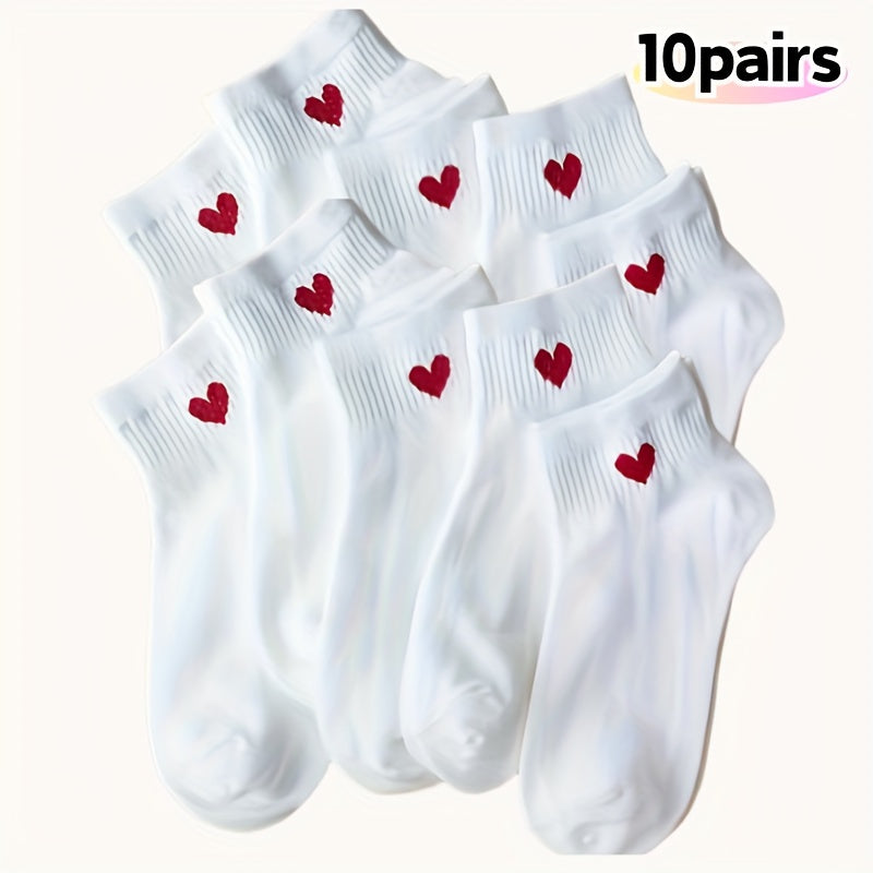 5/10 զույգ գեղեցիկ և նորաձև կոճ գուլպաներ՝ սրտային տպագրությամբ դեռահասների համար, իդեալական որպես Վալենտինի օրվա նվերներ, փափուկ, հարմարավետ և շնչող, կատարյալ որպես նվեր դեռահասների համար և հարմար են բոլոր չորս եղանակներին կրելու համար: