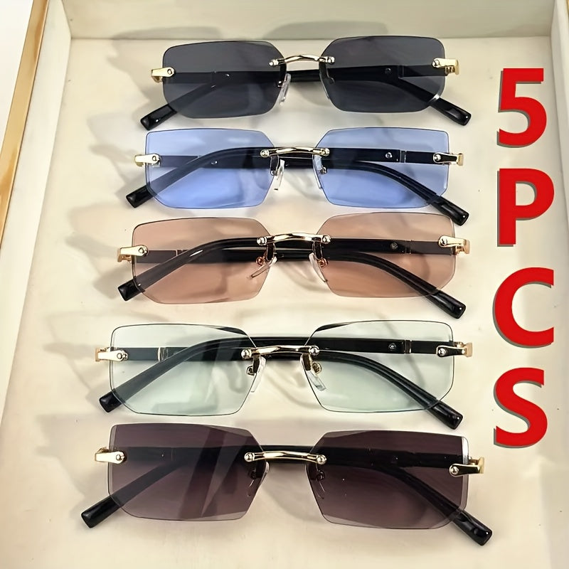 5/6 զույգ նորաձև ակնոցներ տարբեր գույներով, շրջանակազուրկ, էլեգանտ ակնոցներ մետաղական հյուսվածքով, ունիսեքս դիզայնով, կատարյալ նվեր զույգերի և քույրերի համար