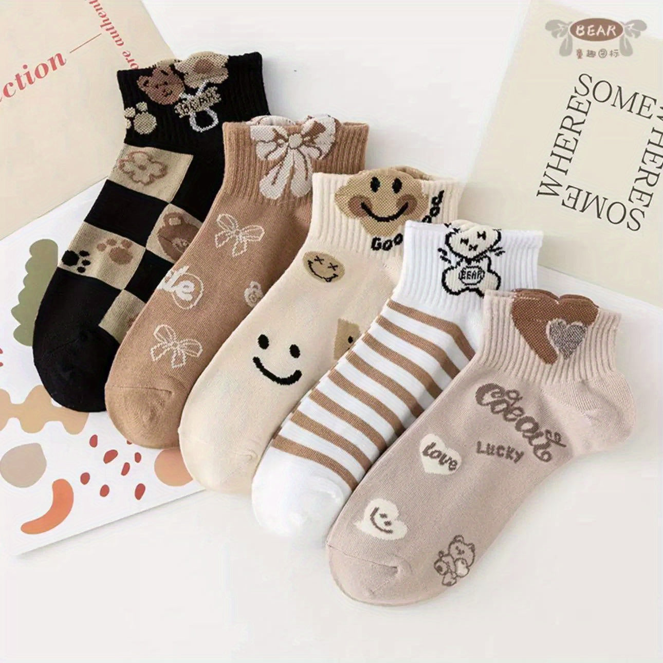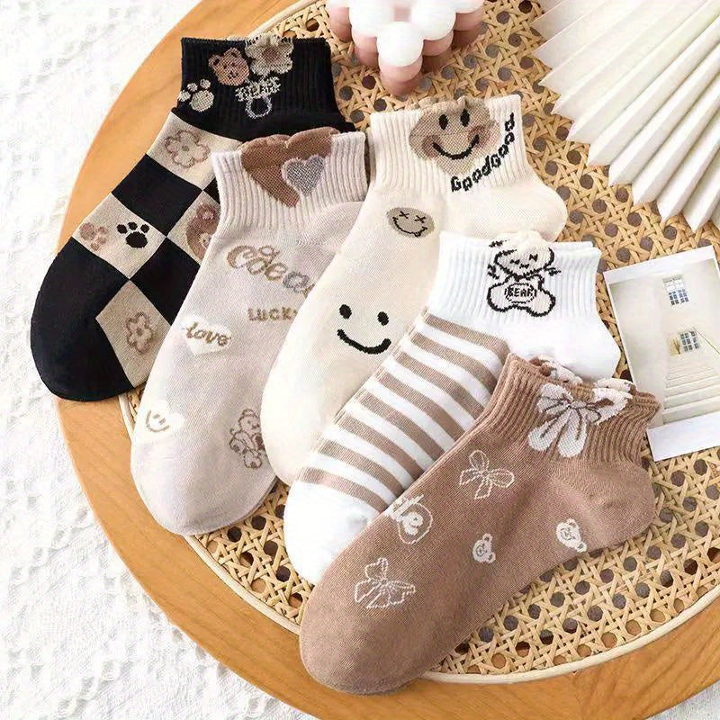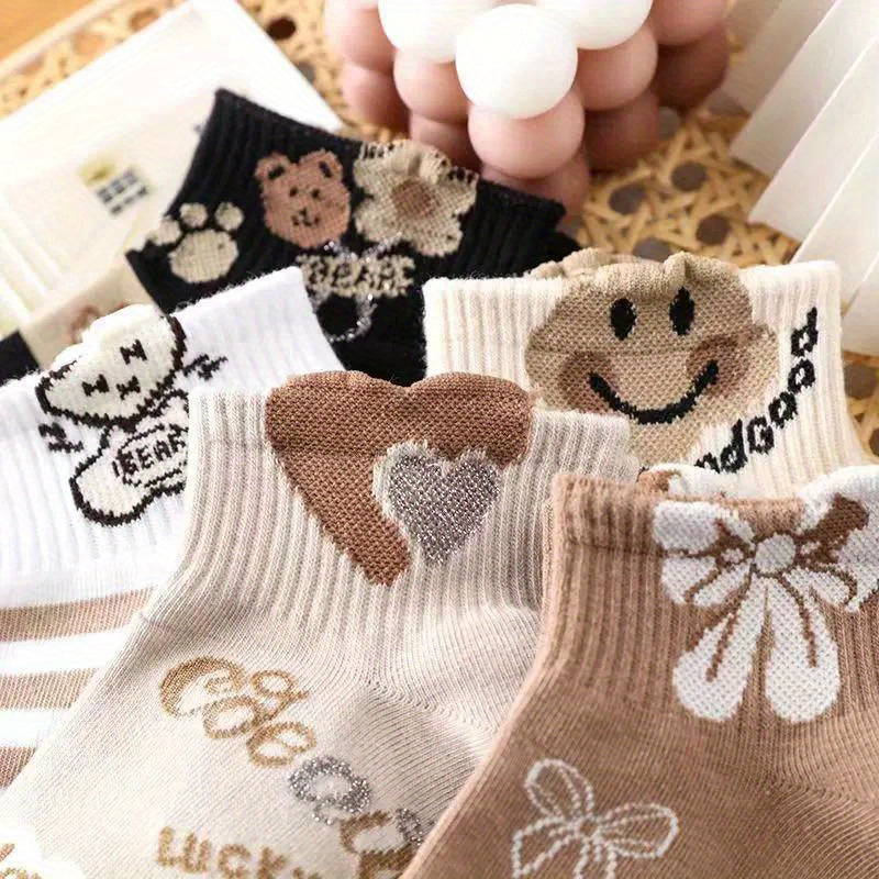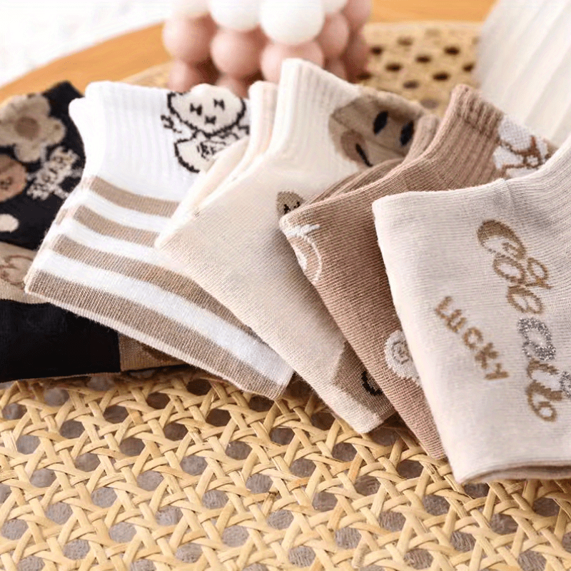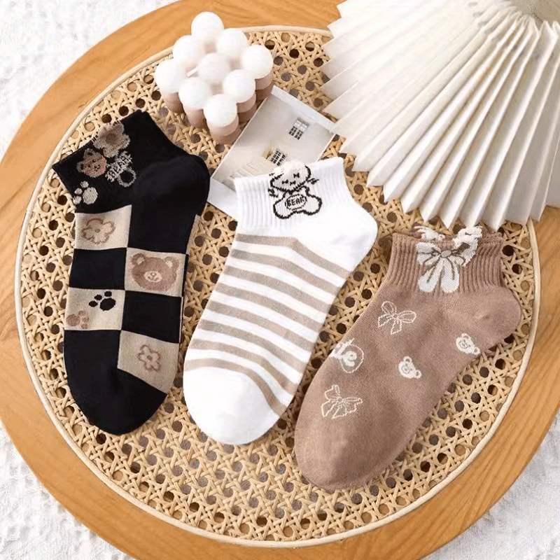 5 կամ 10 զույգ/3D արջի նորաձև բազմակողմանի շնչառական քրտինքը կլանող ամառային ուսանողական կանացի կարճ գուլպաներ