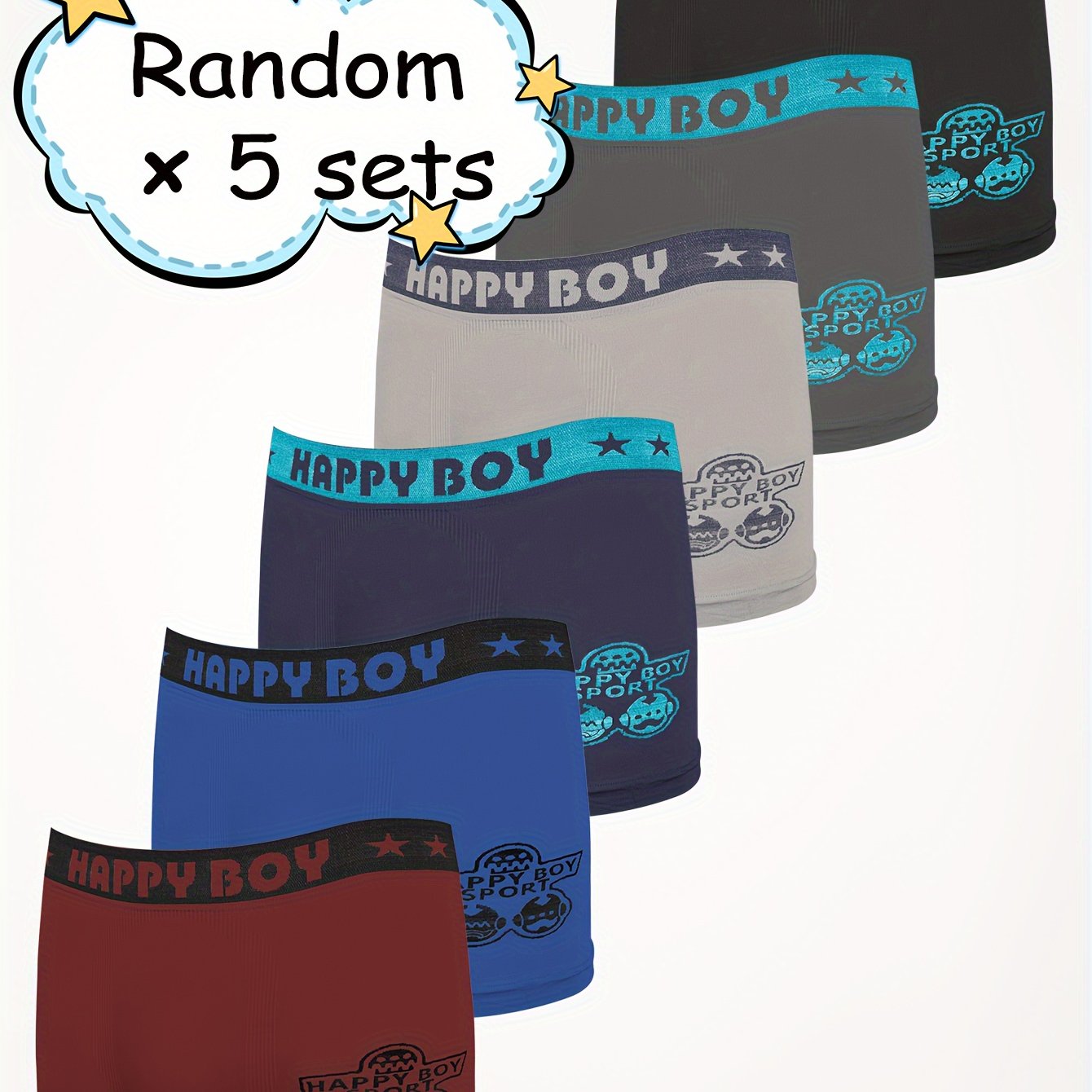 5 փաթեթ SIETE ROSA տղաների ներքնազգեստ, Cartoon Happy Boy Print, 90% պոլիեսթեր 10% Էլաստան, Բարձր ձգվող տրիկոտաժե գործվածք, բոլոր սեզոնային սպորտային ոճ, կանոնավոր կահավորանք, հարմարավետ, ամենօրյա հագուստ