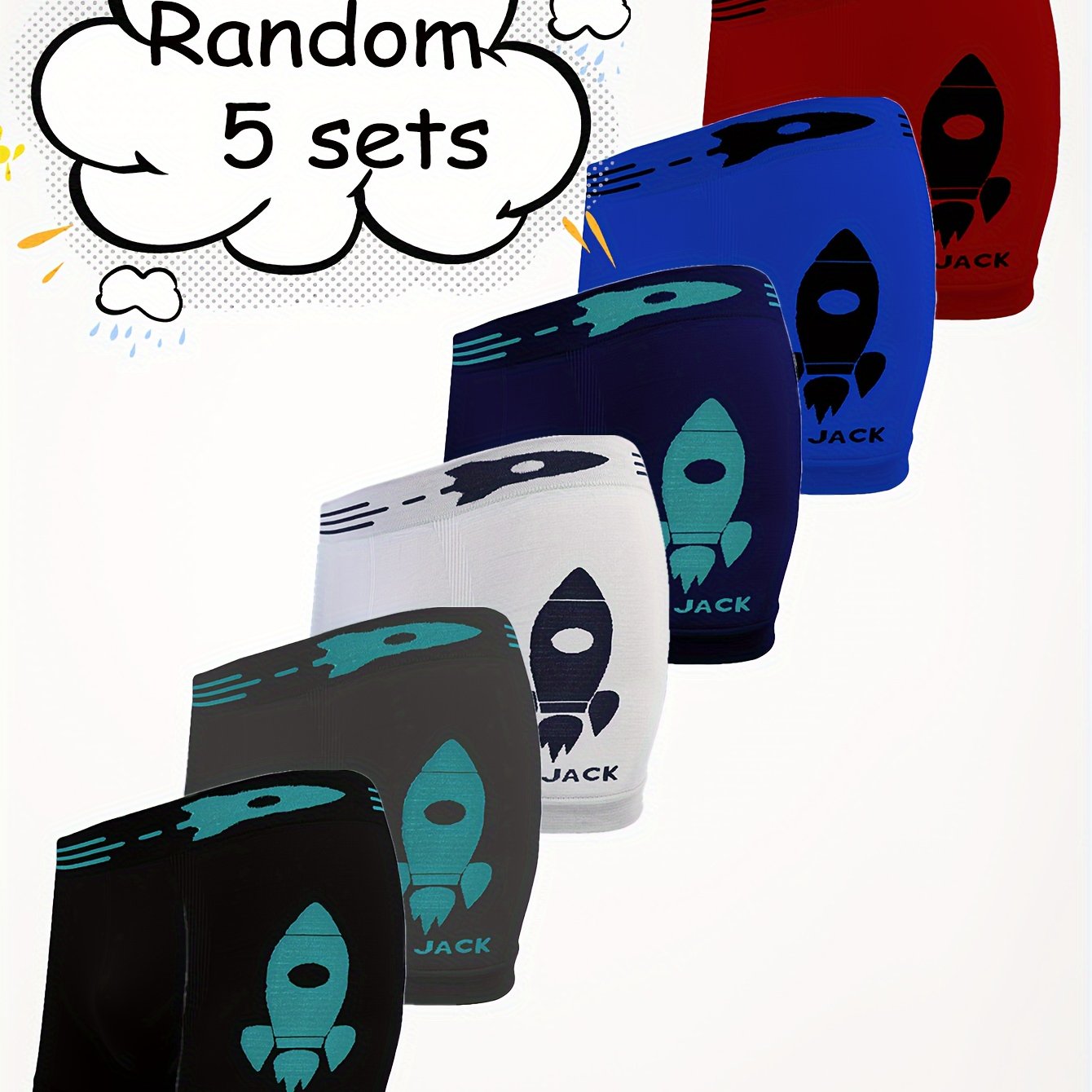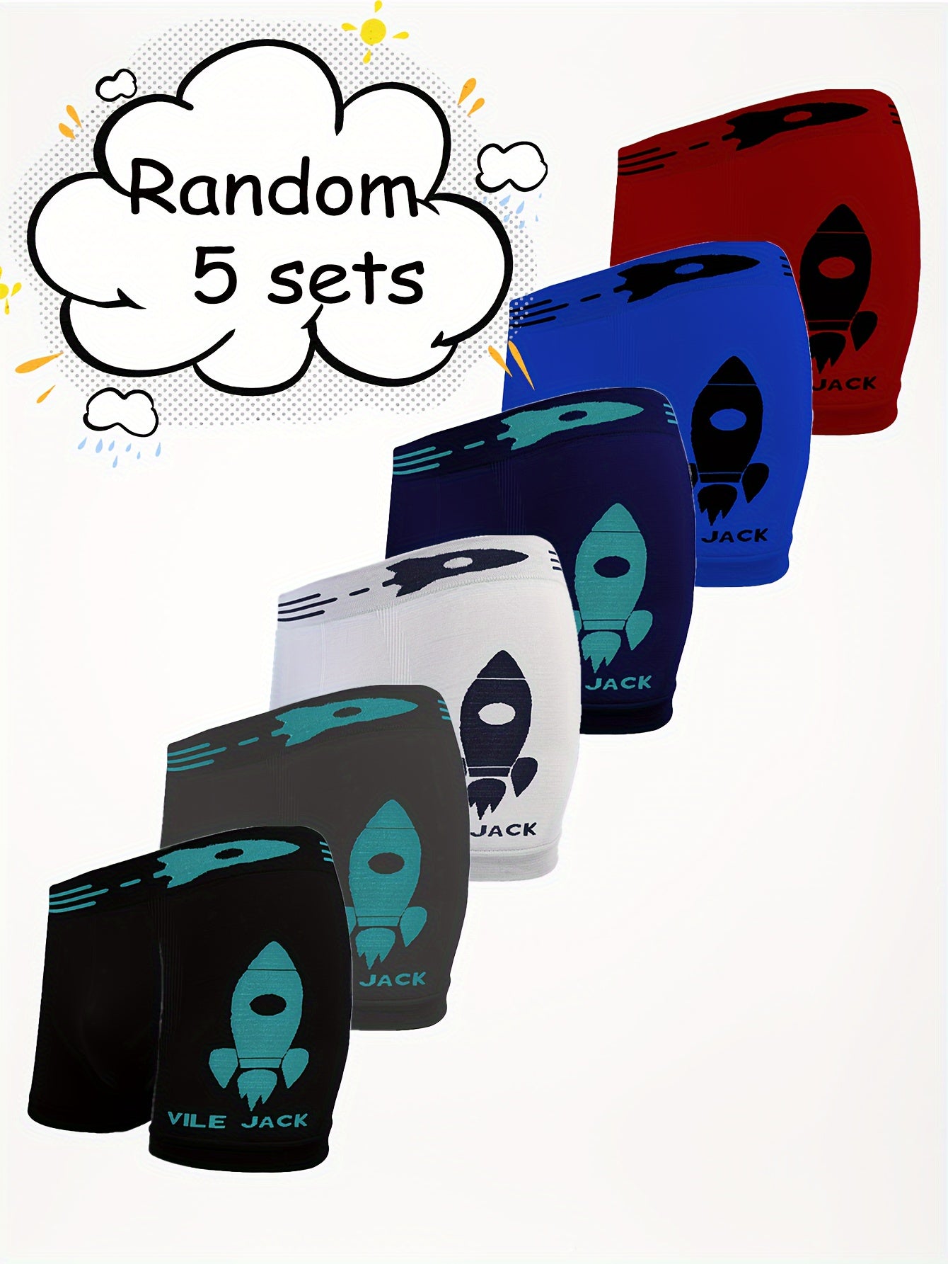 5 փաթեթ SIETE ROSA տղաների ներքնազգեստ, մուլտիպլիկացիոն հրթիռային տպագիր, բարձր ձգվող շնչառական պոլիեսթեր տրիկոտաժե գործվածք, բոլոր սեզոնային սպորտային ոճ, կանոնավոր հարդարում - 90% պոլիեսթեր, 10% էլաստան, ամենօրյա հագուստի համար