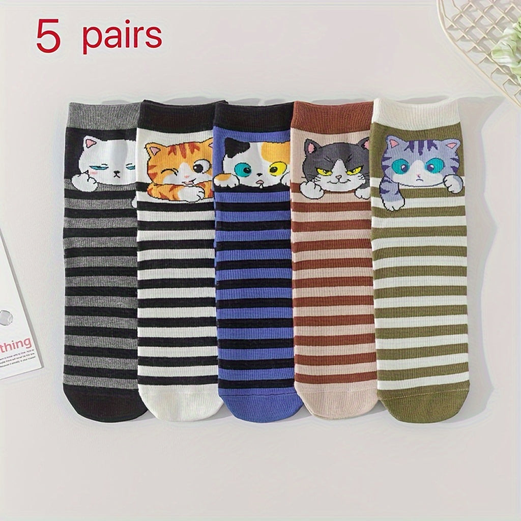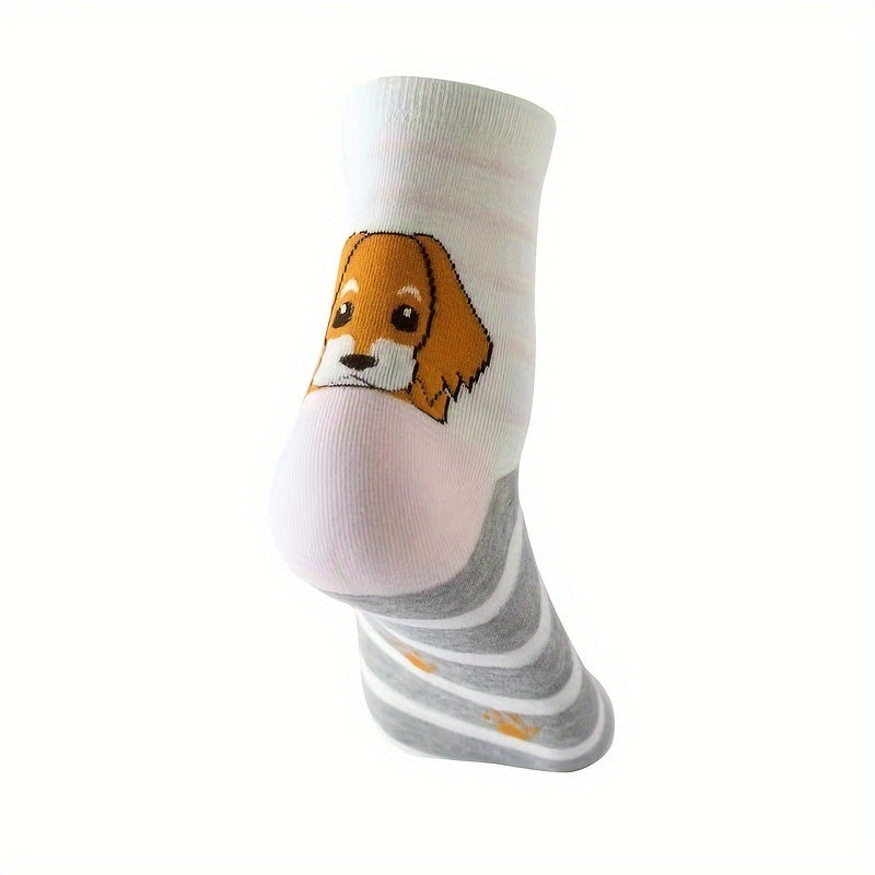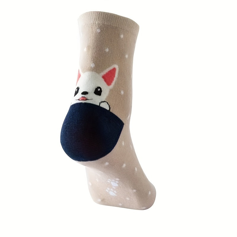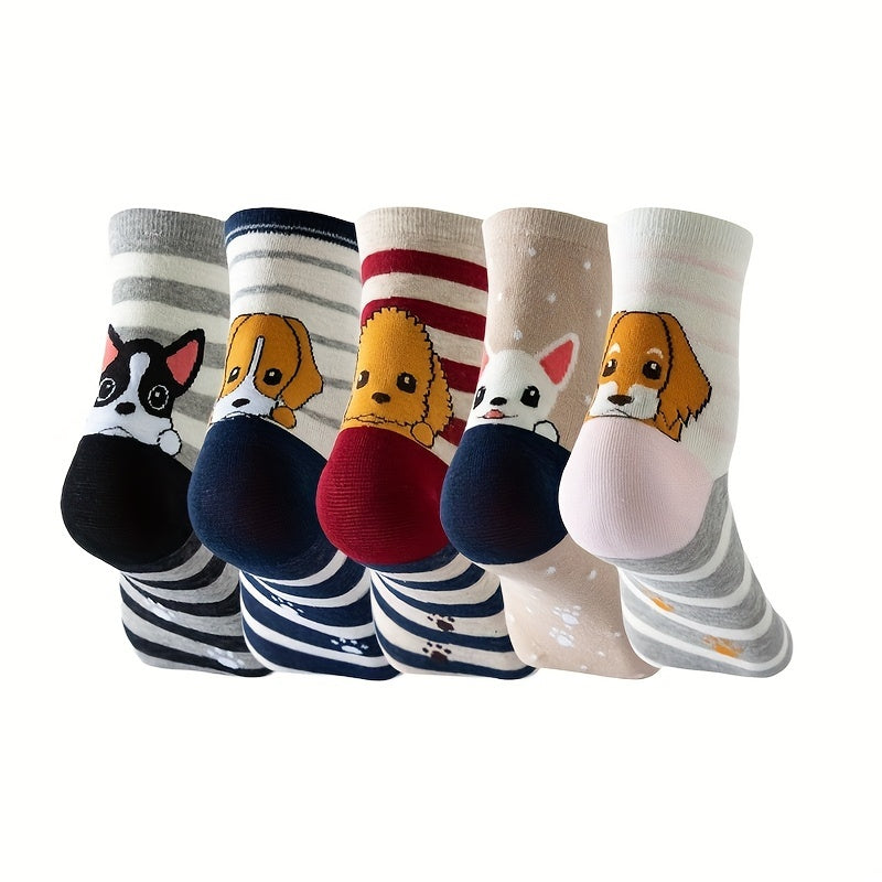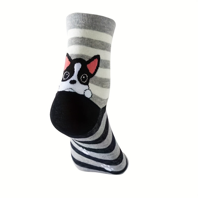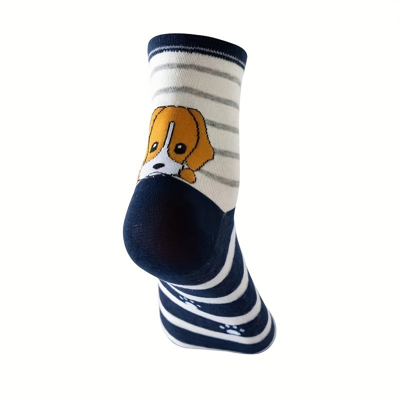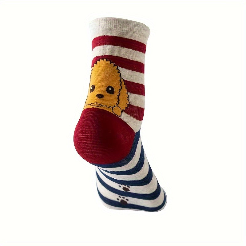 5 զույգ / 10 զույգ գեղեցիկ գծավոր կրունկով եռաչափ նորաձև մուլտֆիլմ Puppy College Daily Casual կանացի միջին հորթի գուլպաներ