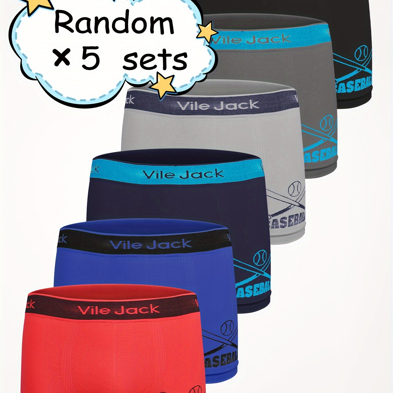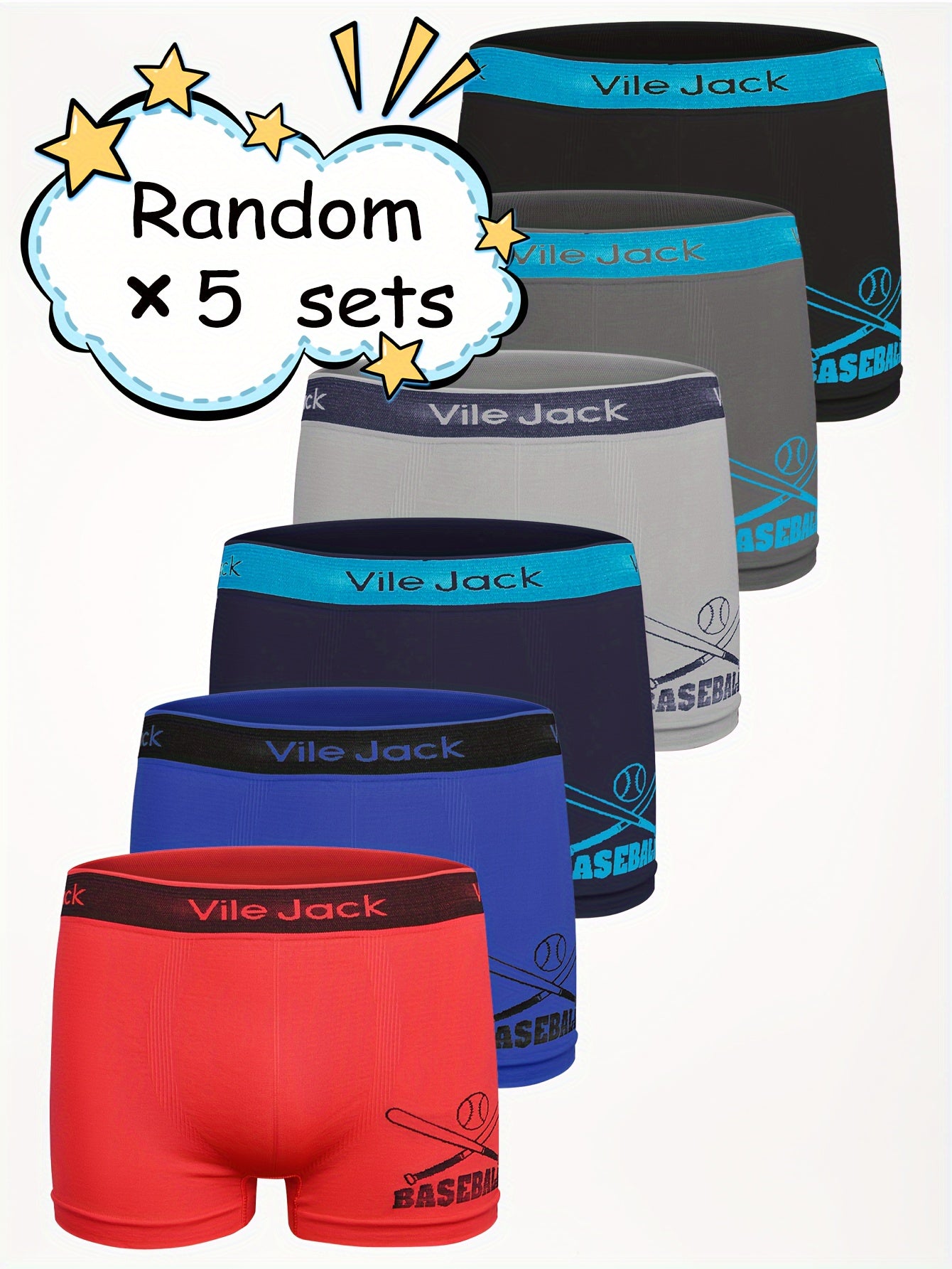 5 հատ տղաների ձգվող և հարմարավետ բռնցքամարտիկ, շնչող պոլիեսթերի խառնուրդ զվարճալի բեյսբոլի տպագրությամբ, ներքնազգեստ