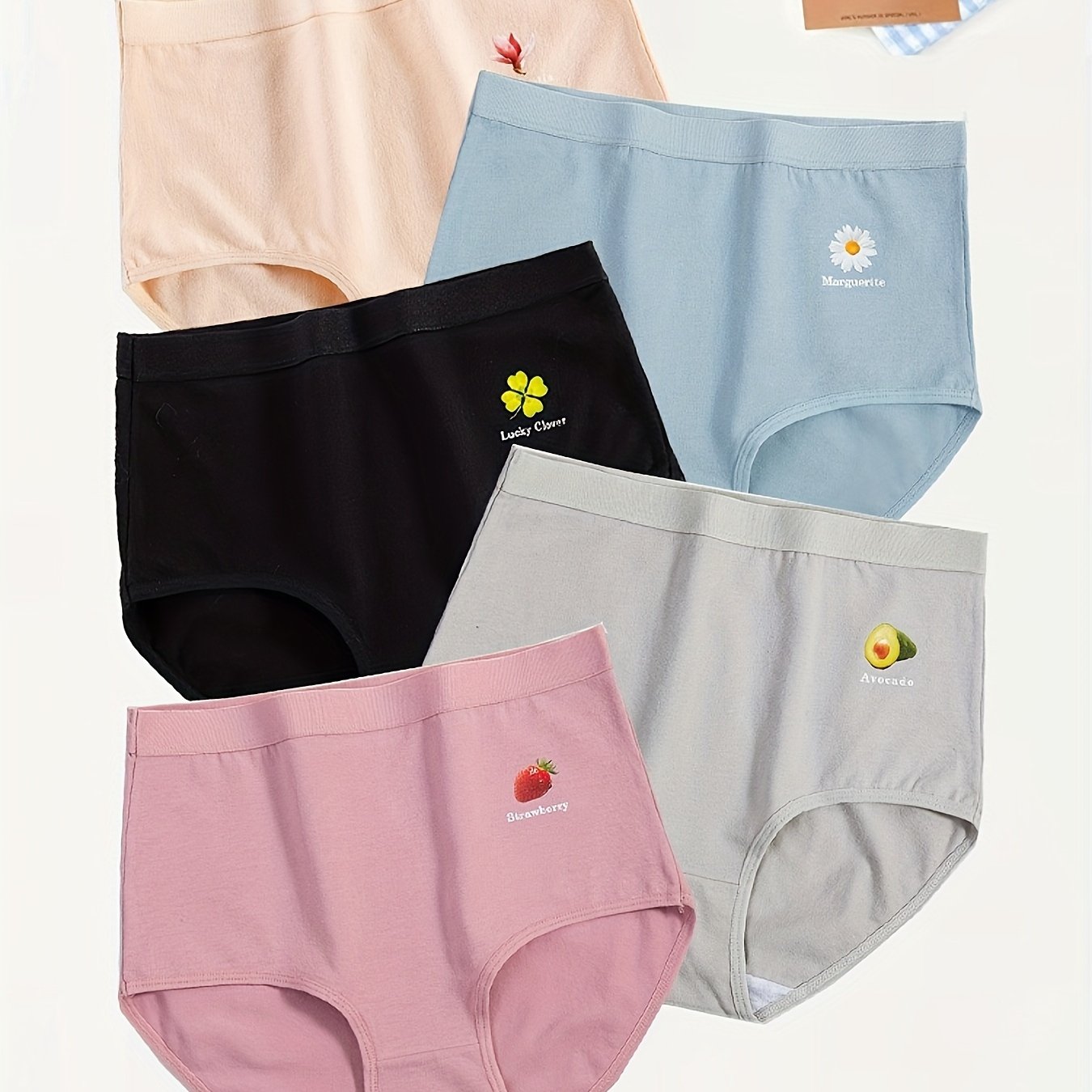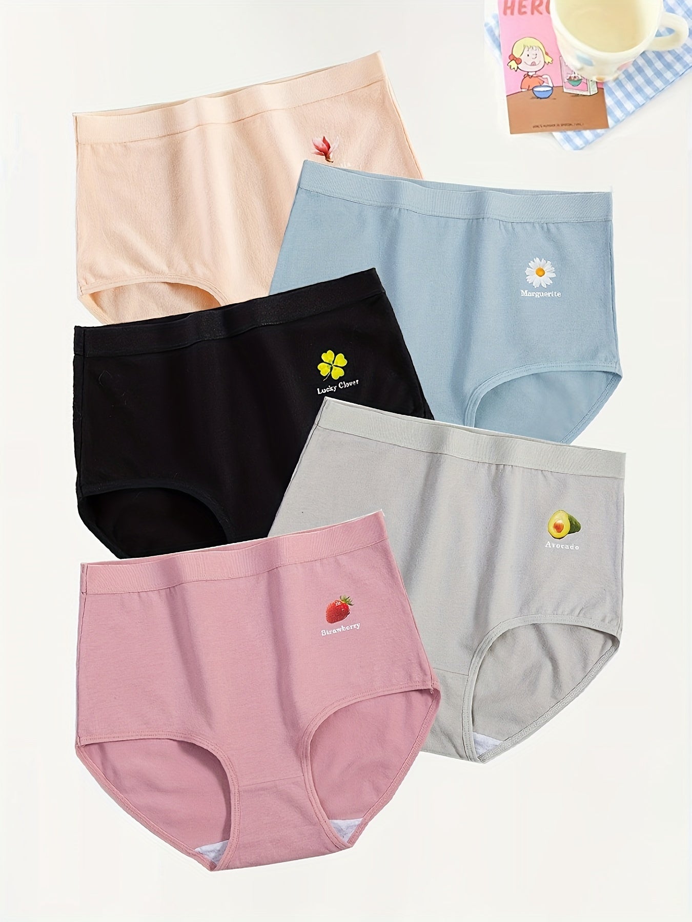5 հատ Աղջիկների բարձր գոտկատեղով բամբակյա շալվարներ գեղեցիկ մրգային տպագրությամբ. Հարմարավետ և շնչող ներքնազգեստ դեռահասների համար