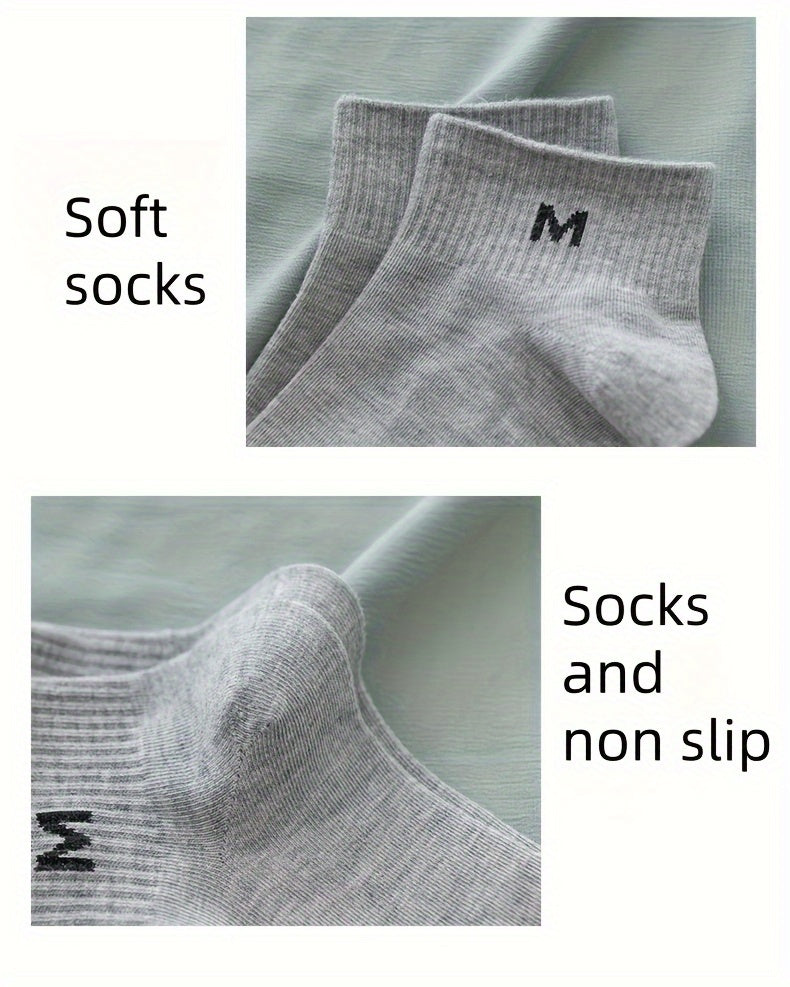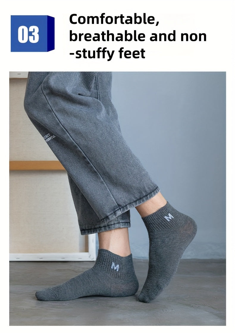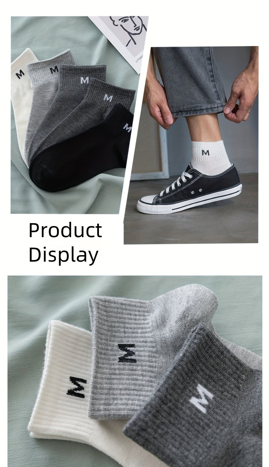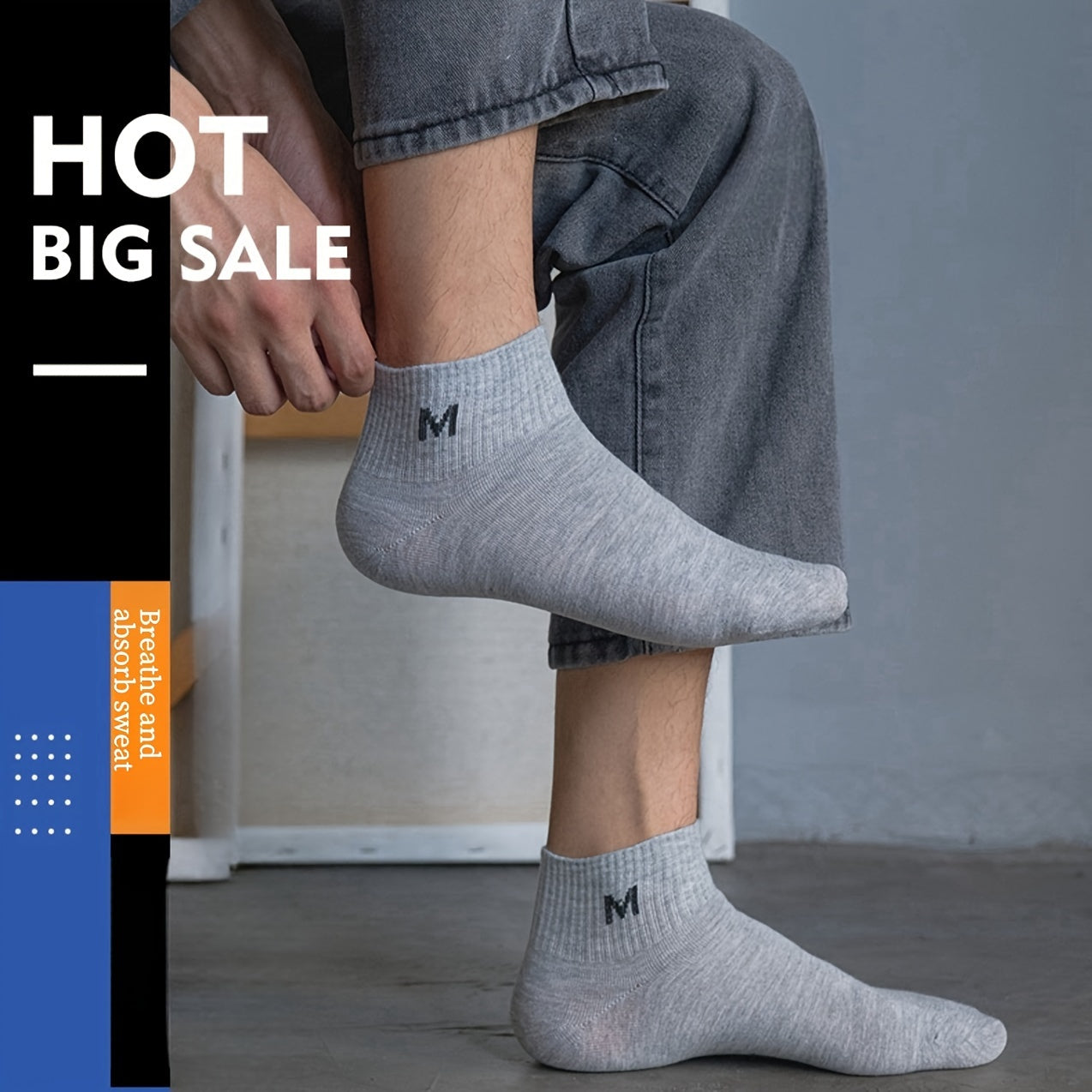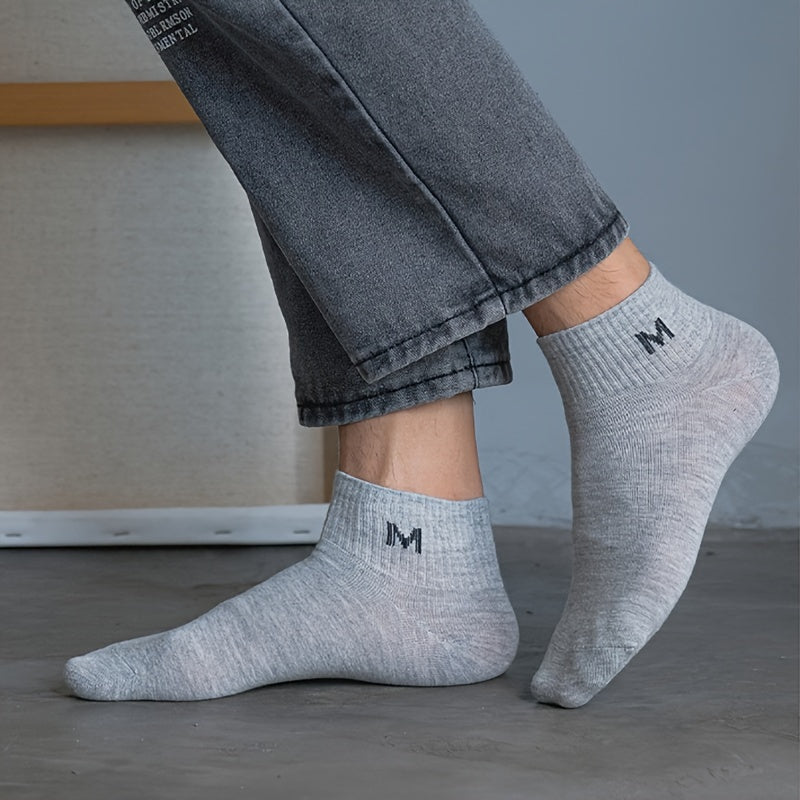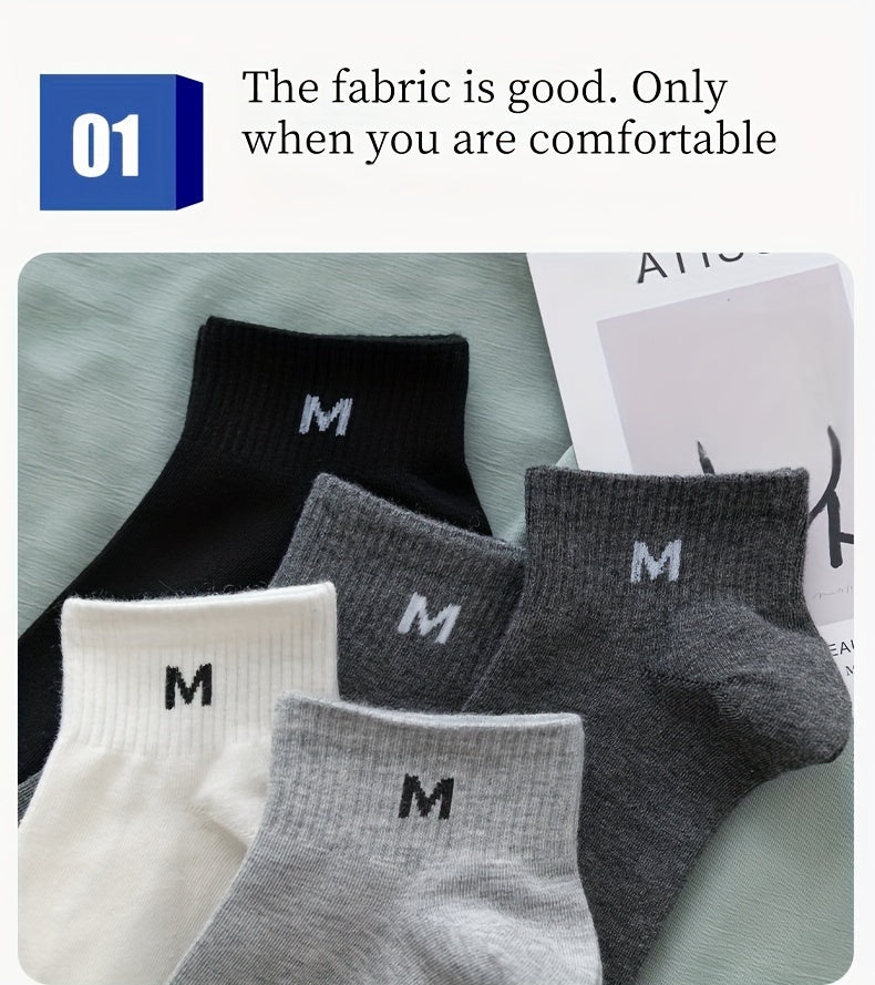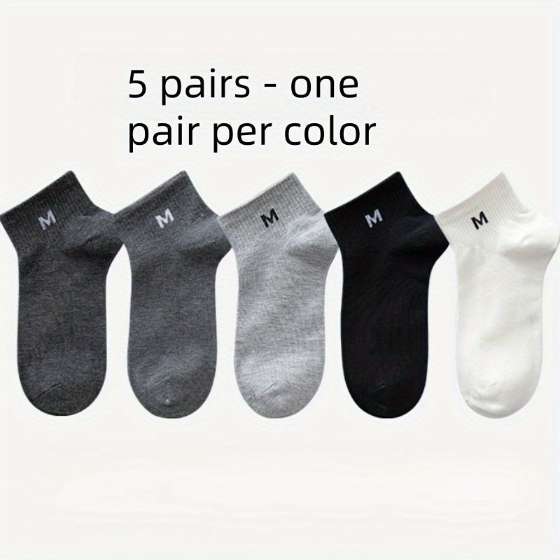5 հատ տղամարդու շնչող կոճ գուլպաներ - բազմակողմանի պինդ գույնի տառատեսակ դիզայնով, չսահող կրունկով բռնակ բոլոր եղանակների համար