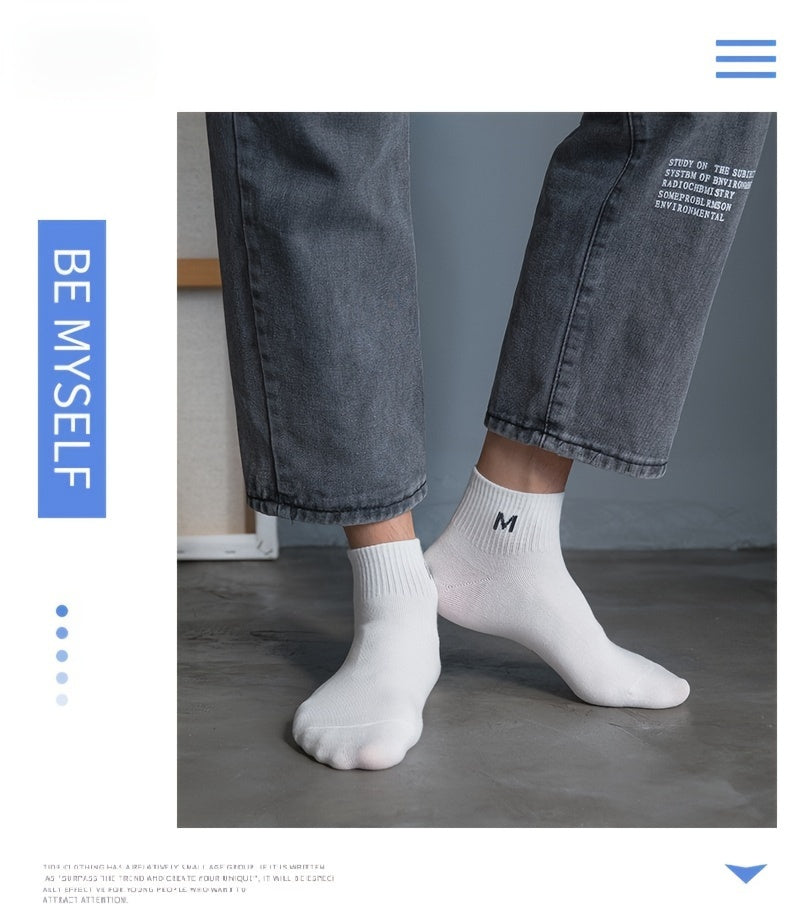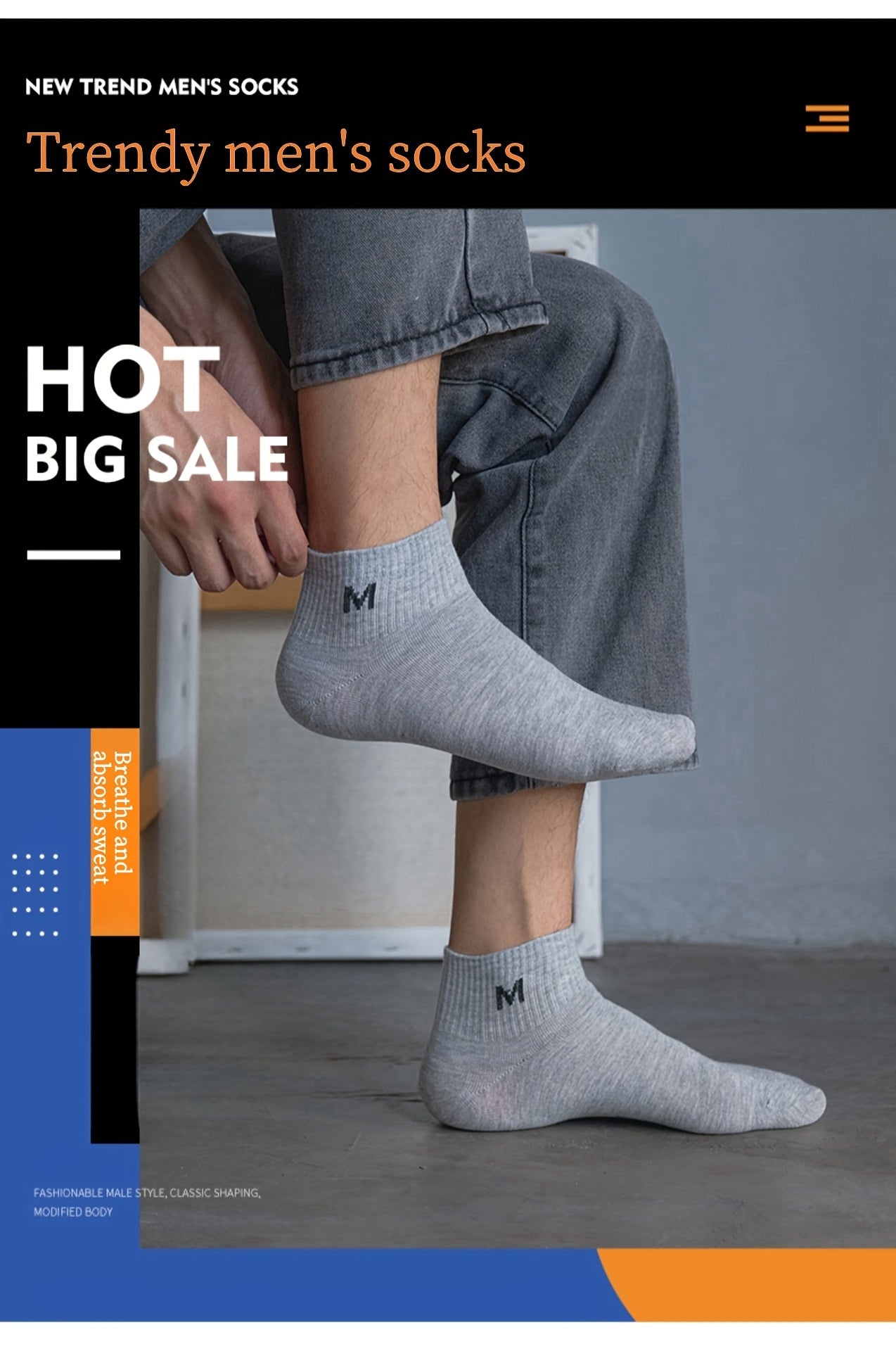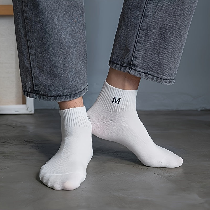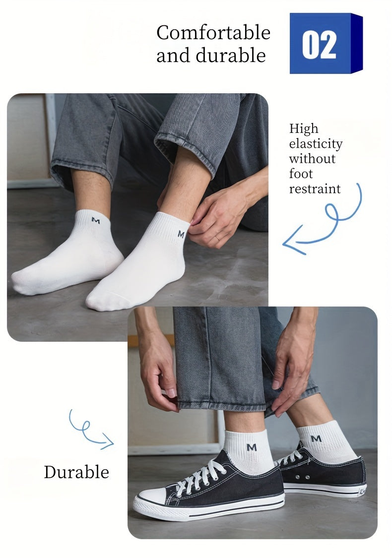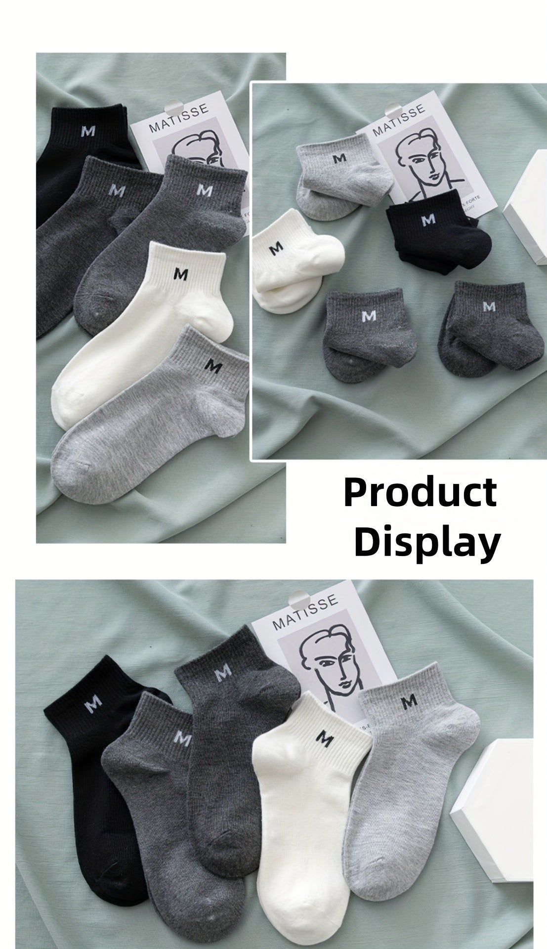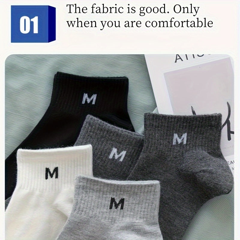 5 հատ տղամարդու շնչող կոճ գուլպաներ - բազմակողմանի պինդ գույնի տառատեսակ դիզայնով, չսահող կրունկով բռնակ բոլոր եղանակների համար
