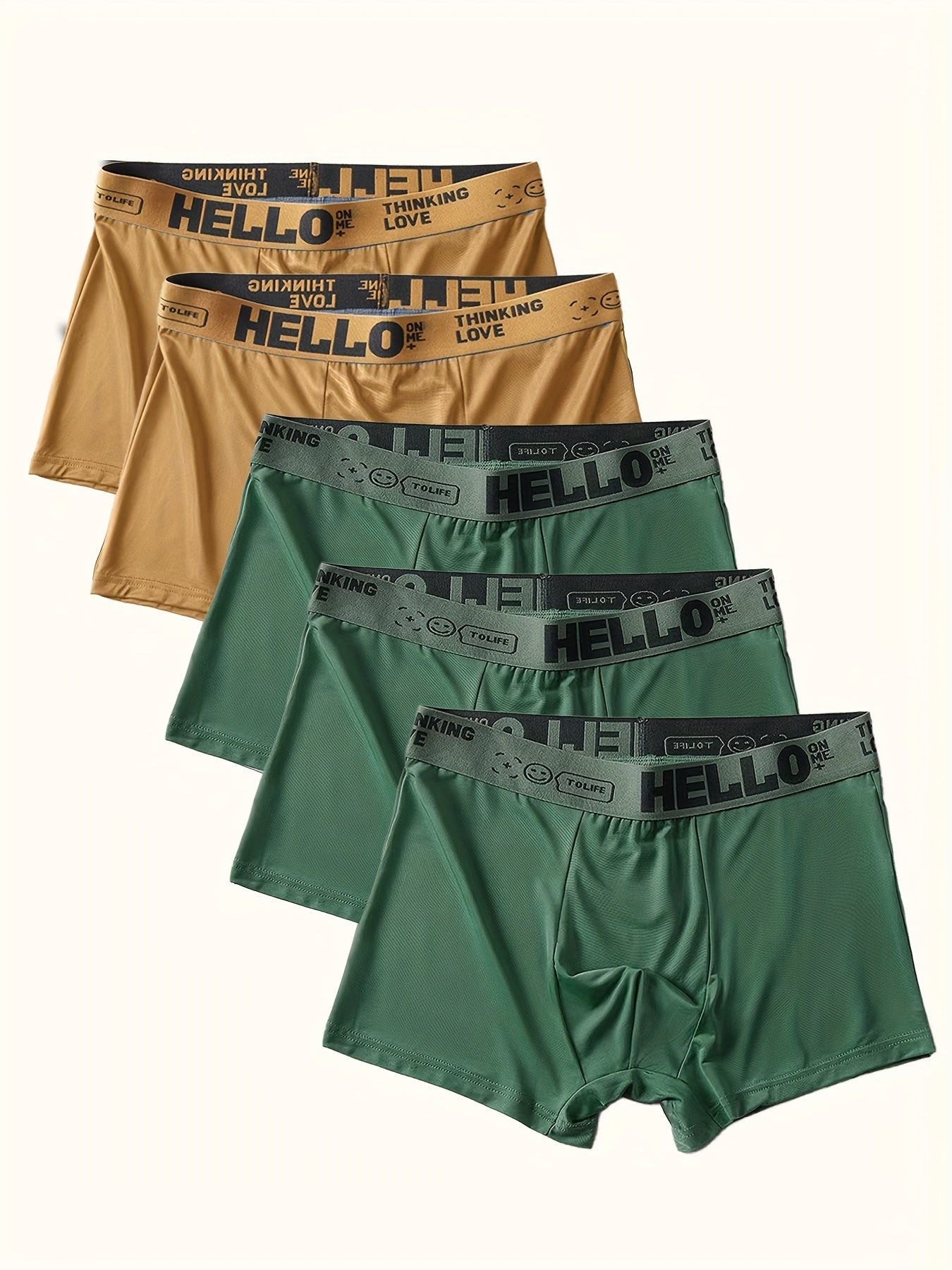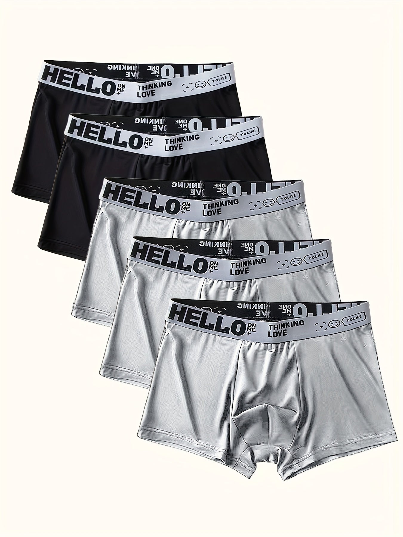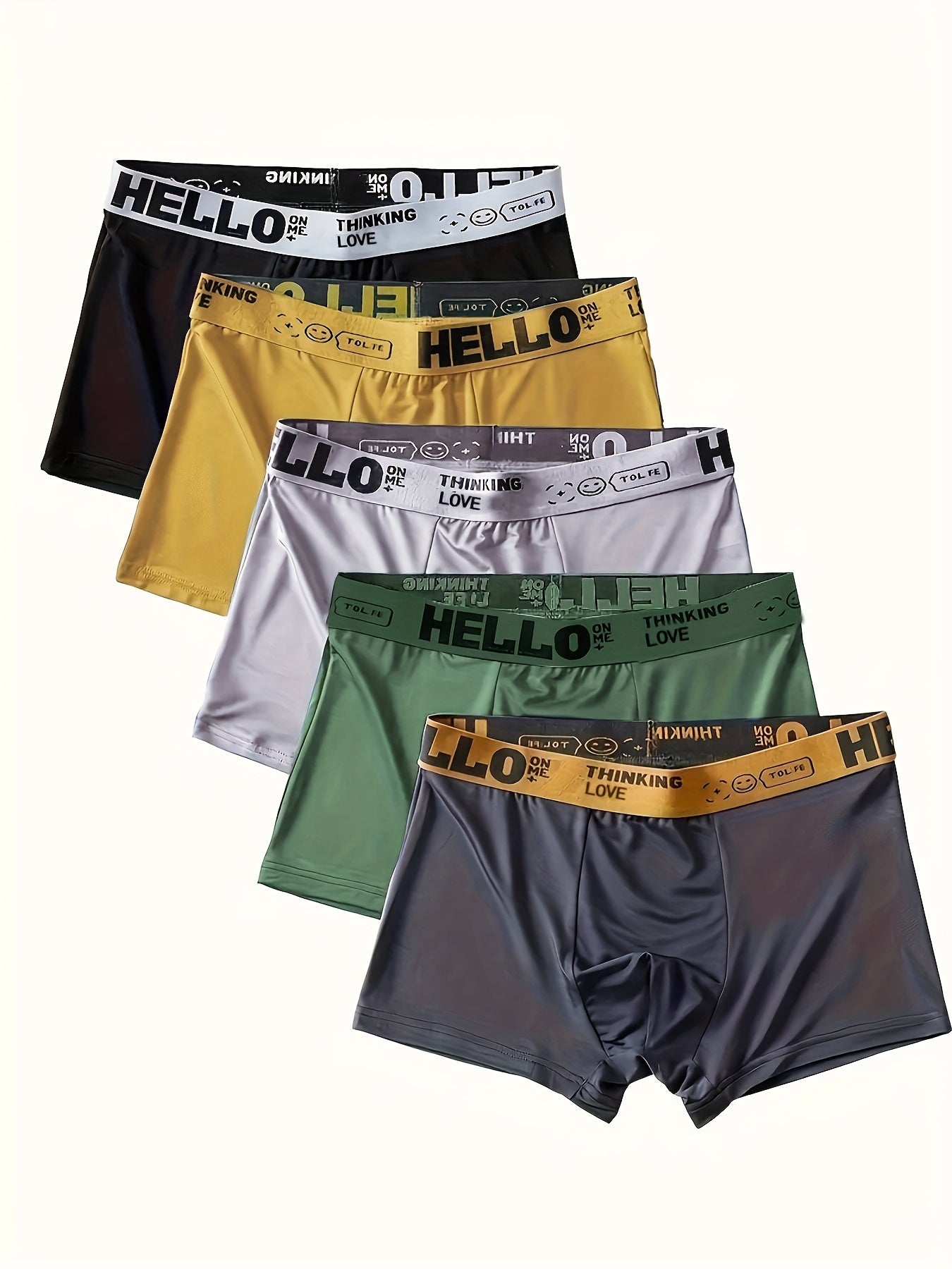 Տղամարդկանց 5 հատ շնչող սառցե մետաքսյա բռնցքամարտի շալվարներ՝ ծայրահեղ հարմարավետ, արագ չորացող, կիսաթափանցիկ գործվածքից ներքնազգեստ՝ էլաստիկ գոտկատեղով արշավների և բացօթյա գործունեության համար