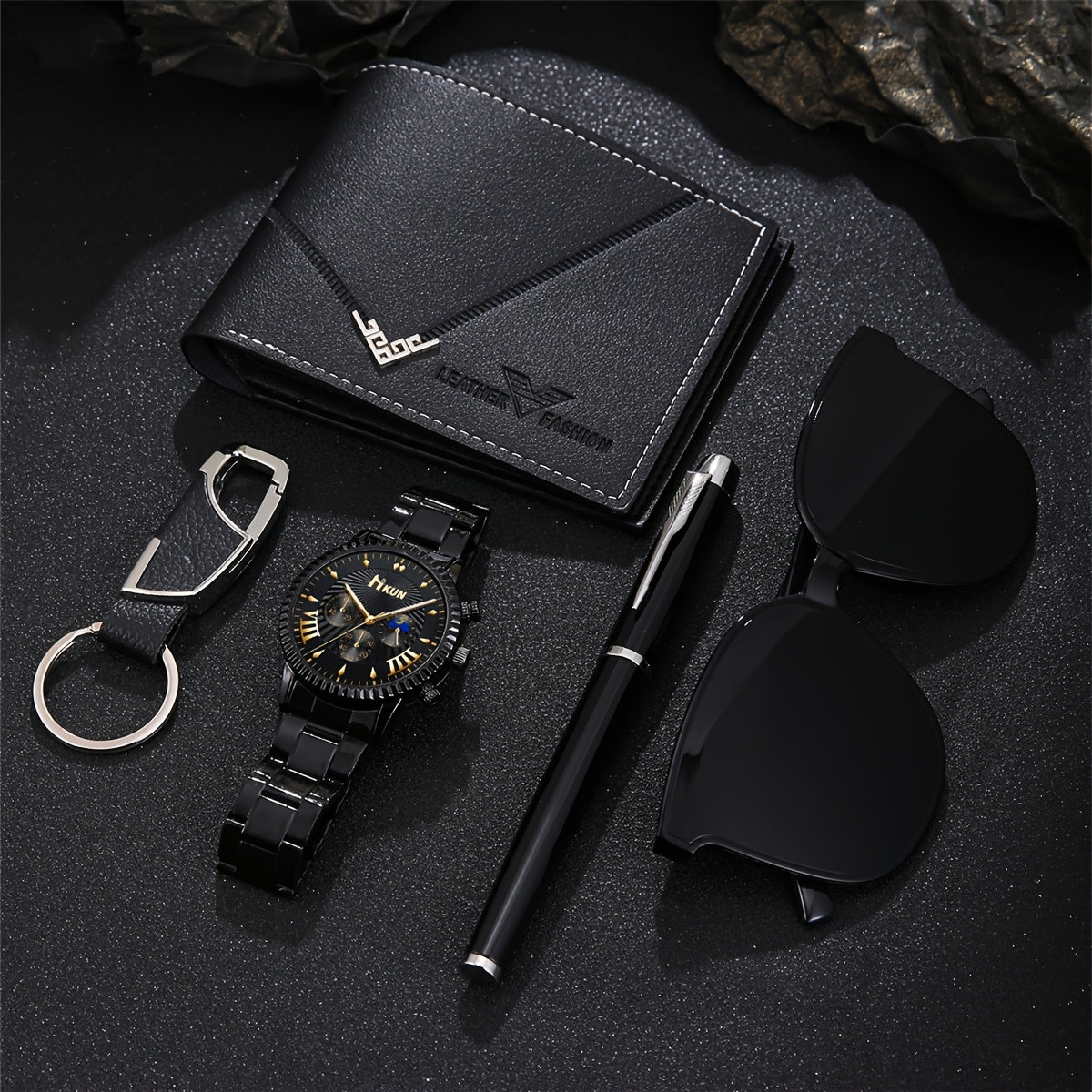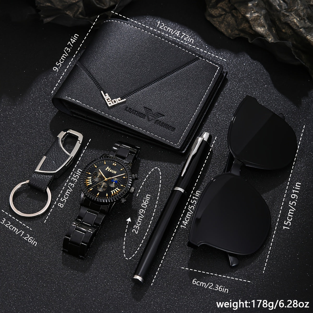 5 հատ տղամարդու գործնական սպորտային ժամացույց, դրամապանակ, ակնոց, գրիչ և բանալիօղակ՝ նվերների տուփի մեջ, հարմար է Հայրերի օրվա, տարեդարձերի կամ ծննդյան օրերի համար
