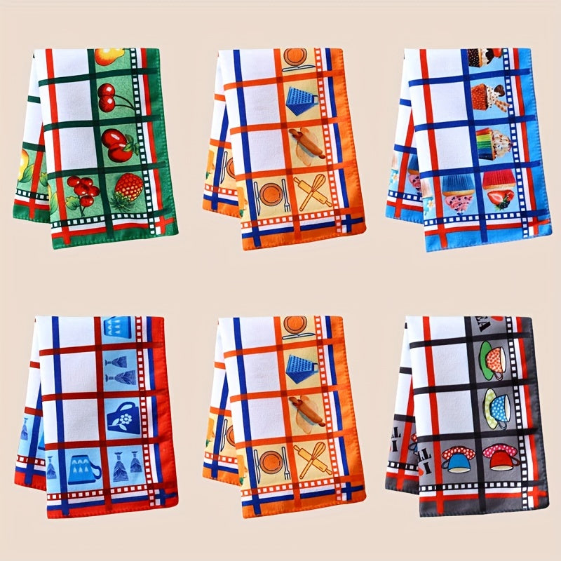 6 հատ/12 հատ Խոհանոցային սրբիչներ, մեծ վանդակավոր ծաղիկ խոհանոցային անձեռոցիկներ և անձեռոցիկներ, պոլիեսթեր ուղղանկյուն տպագրությամբ սփռոցով սրբիչներ և անձեռոցիկներ, որոնք հարմար են ընթրիքի, երեկույթների և խնջույքների համար