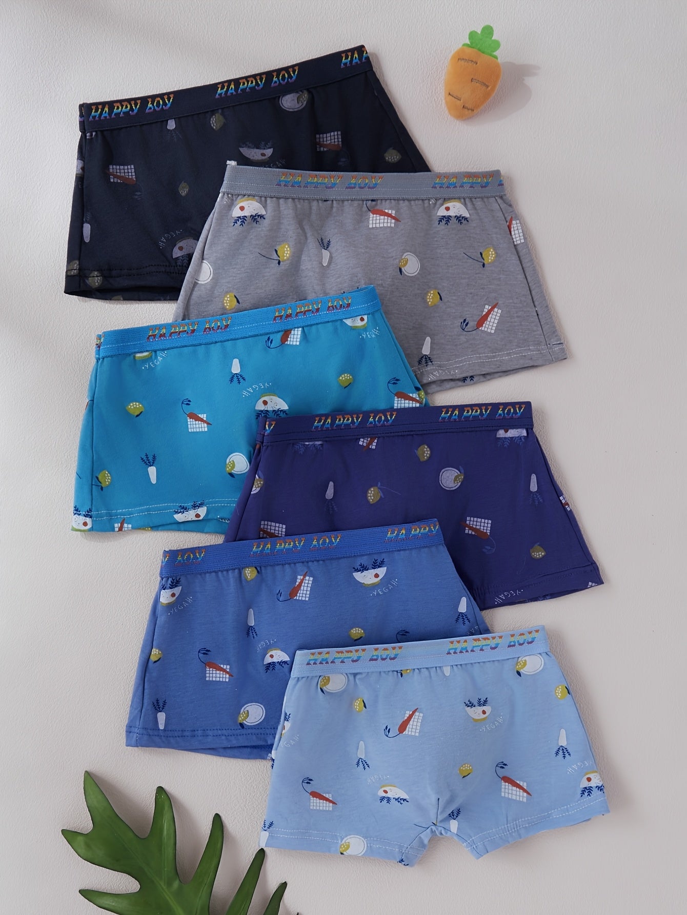 6 հատ Տղաների փափուկ բռնցքամարտիկ շապիկներ - հարմարավետ, չկտրվող, մուլտֆիլմերի նախշեր՝ առաձգական գոտկատեղով, մեքենայով լվացվող, պոլիեսթեր և սպանդեքս խառնուրդով