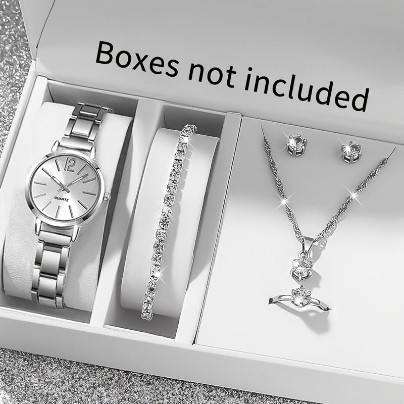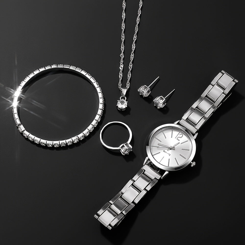 6pcs New Stylish And Simple Women'S Quartz Watch Set with Sparkling Rhinestone Accessories, Perfect for Weddings, Christmas, Thanksgiving, Valentine'S Day, Ramadan, Gifts for Girlfriends And Family, And The Best Choice for Bi