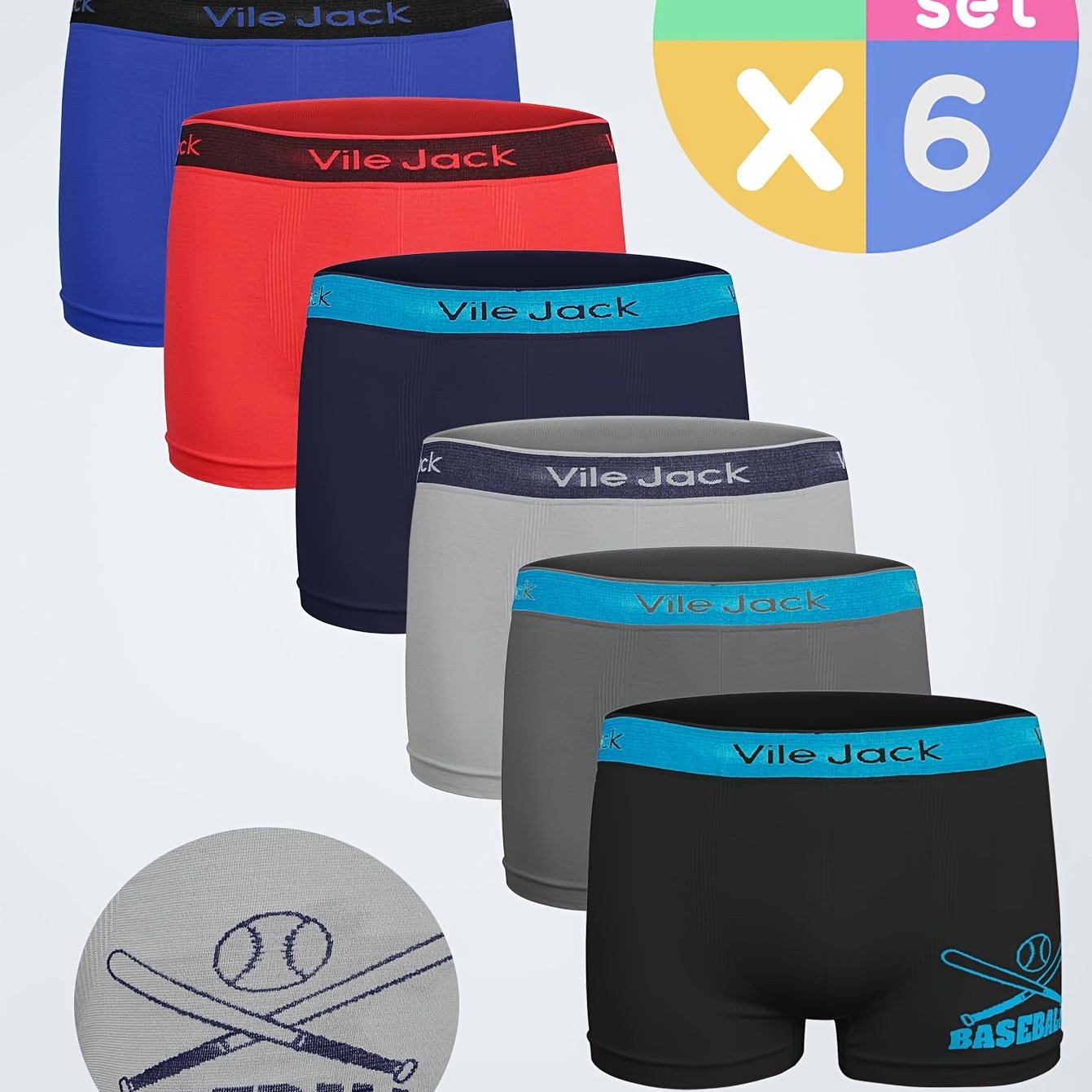 6 հատ տղաների մուլտֆիլմ բեյսբոլի սպորտային պրինտ հարթ անկյունային ներքնազգեստ, սպորտային պատահական ոճ, միջին առաձգական գործվածք, հարմարեցված, շնչող և հարմարավետ, հարմար 11-14 տարեկանների համար