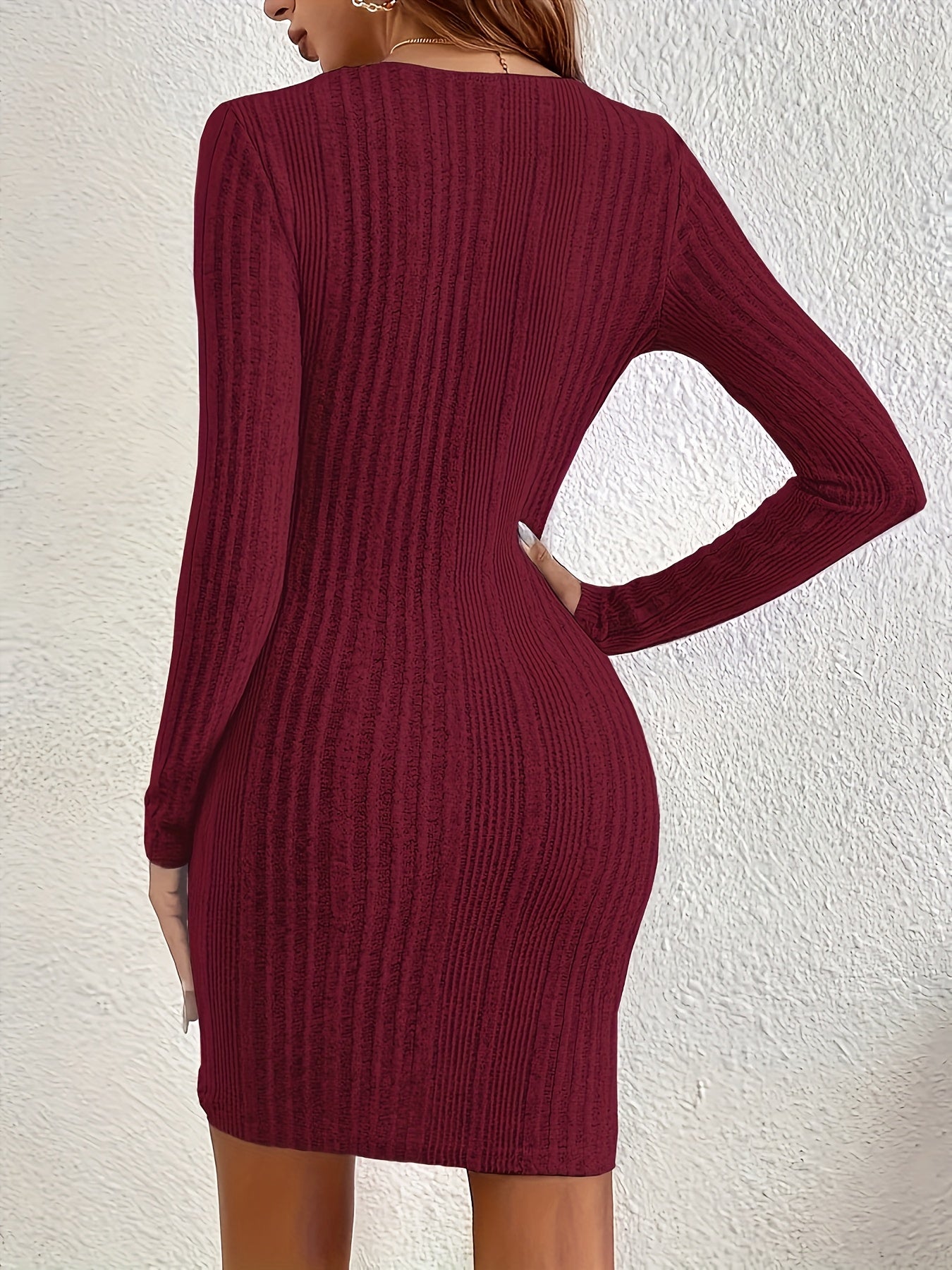 Կանացի երկար թևքերով զգեստ՝ էլեգանտ և սեքսուալ դիզայնով, որն ընդգծում է իրանը, ունի մարմինը գրկող հատված և խաչաձև նախշ։
