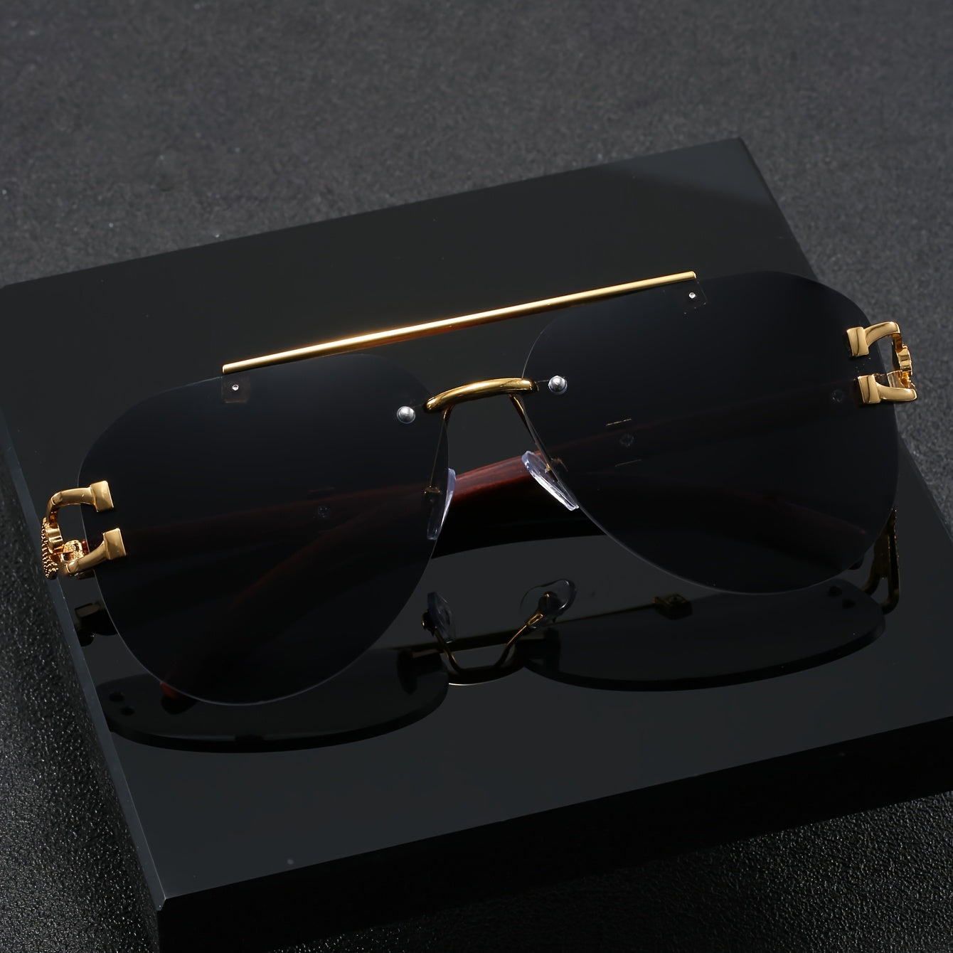 Տղամարդու ոսկեգույն, կրկնակի կամրջակազարդ, առանց շրջանակի օվալաձև ակնոցներ՝ ընձառյուծի զարդարանքով և արհեստական փայտի հյուսվածքով, ոճային ունիսեքս ակնոցներ։