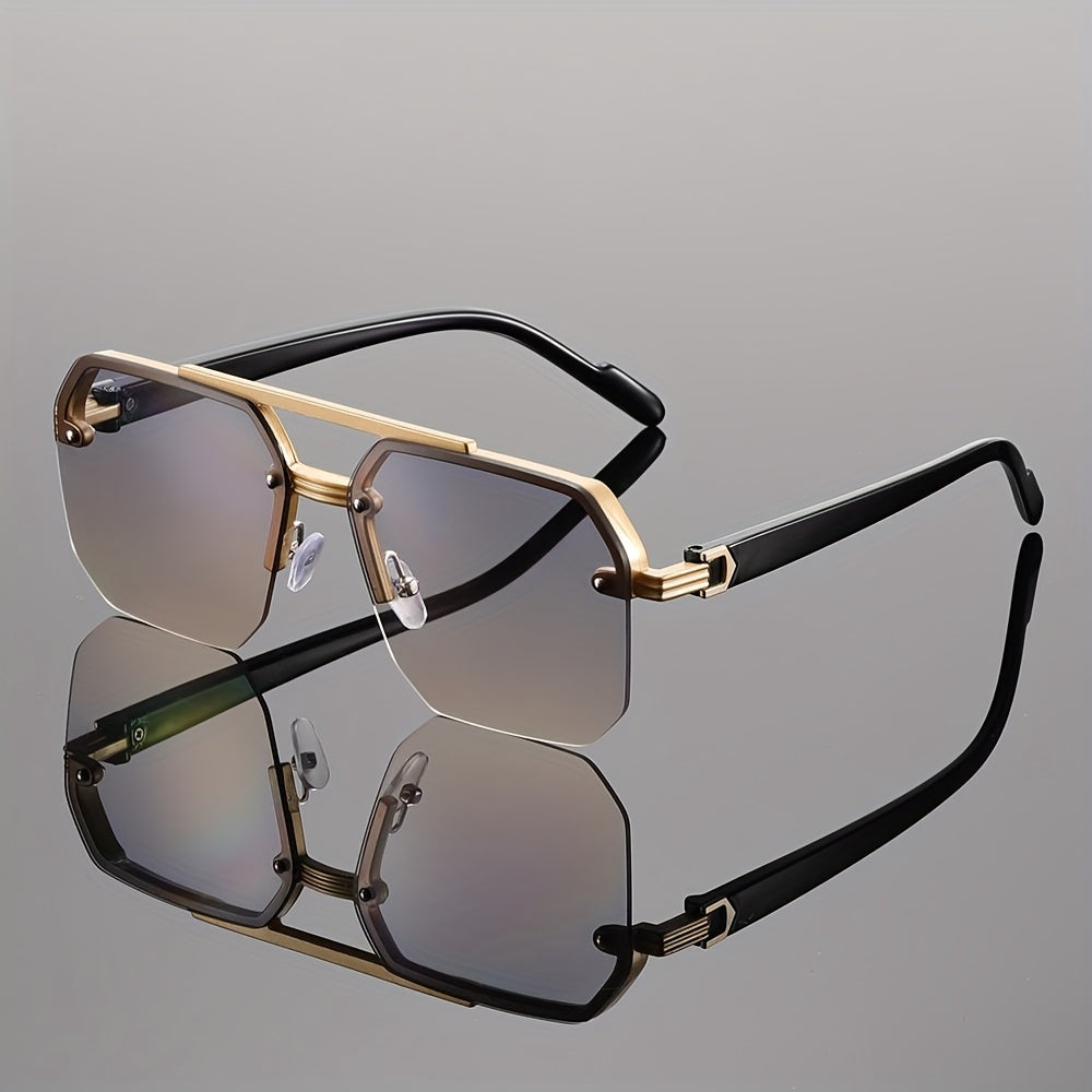 Նորաձև ունիսեքս քառակուսի կիսաշրջանակով կտրված եզրերով ակնոցների զույգ՝ նախագծված նորաձևության և հարմարավետության համար, կատարյալ ակնոցներ և՛ տղամարդկանց, և՛ կանանց համար՝ իդեալական աքսեսուար առօրյա կյանքի համար։