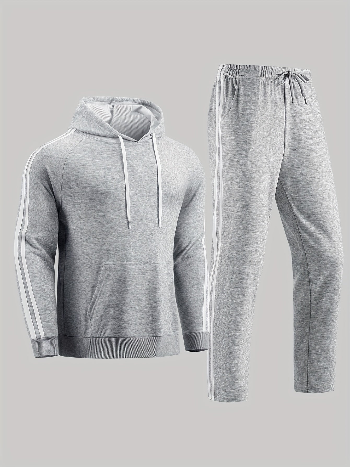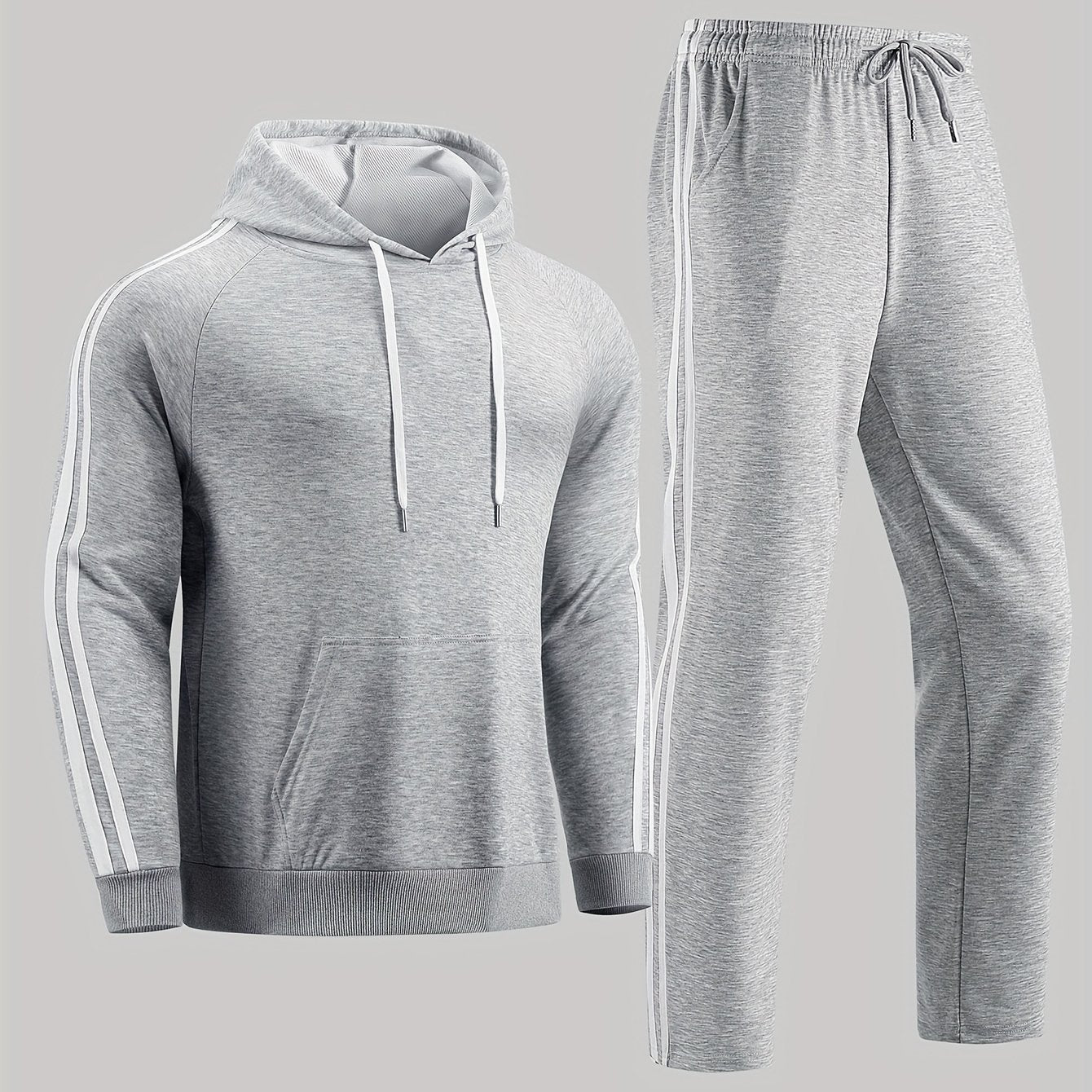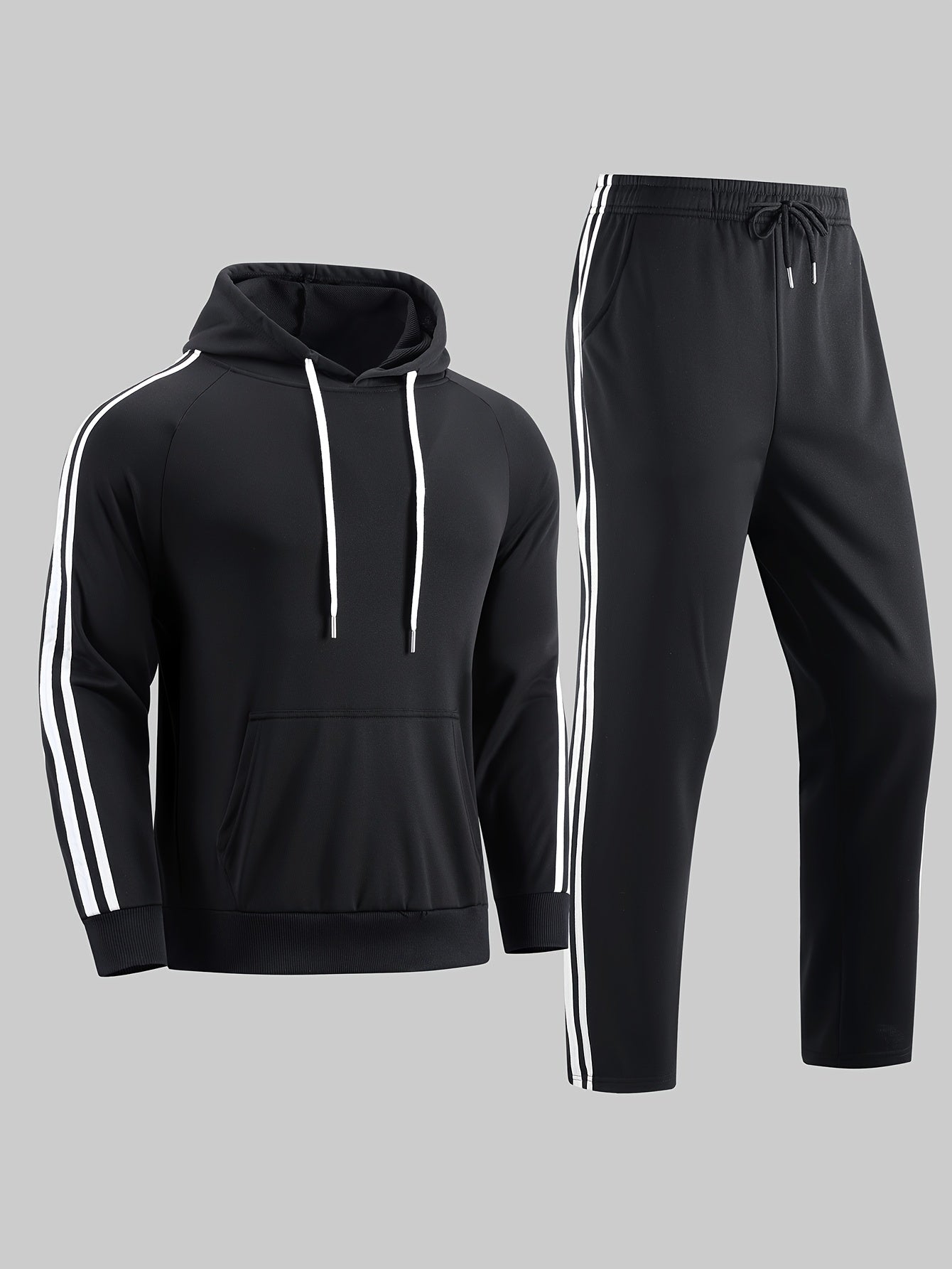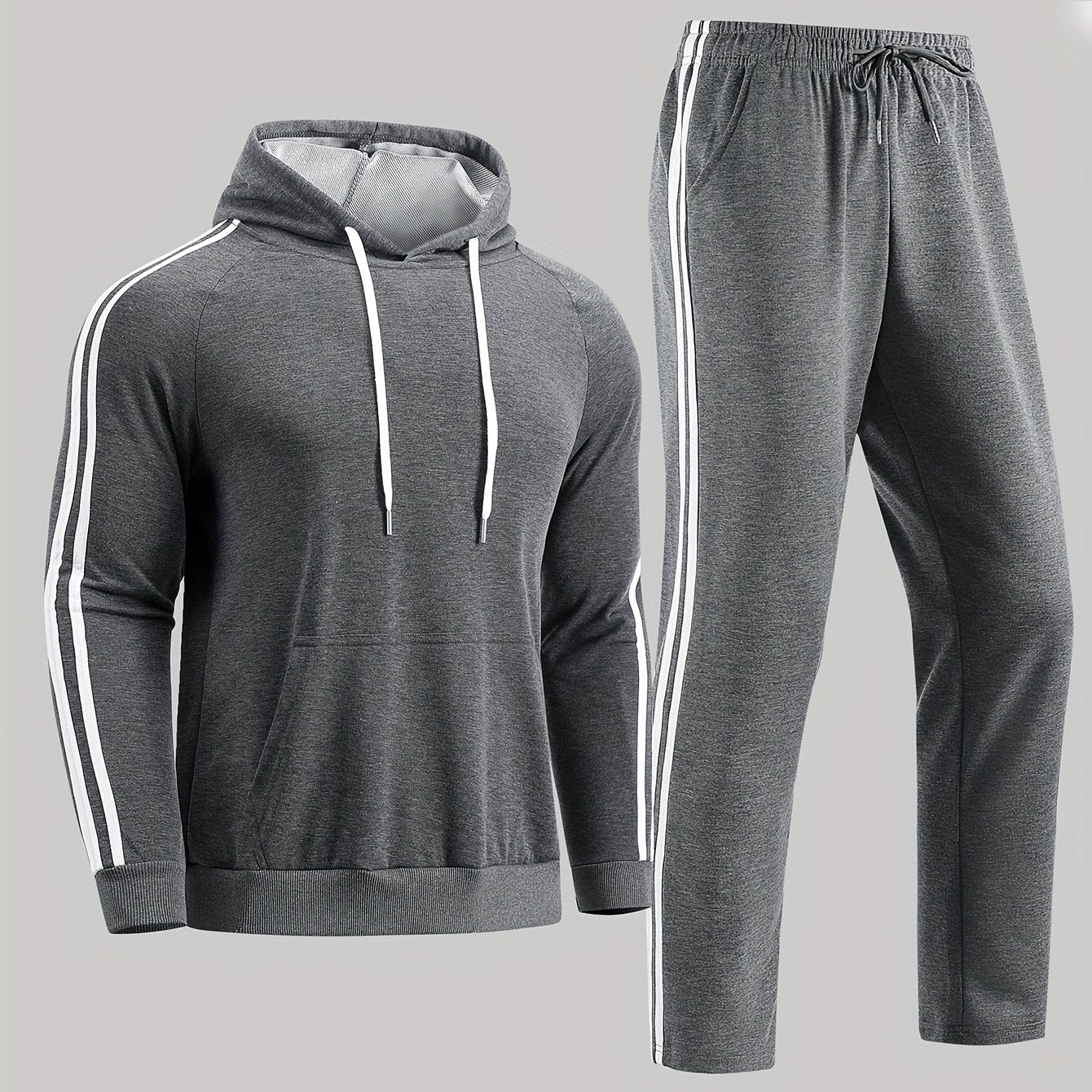 A Set of Two Men'S Casual Sports Outfits, Featuring a Striped Design with Moderately Soft Fabric, Suitable for Outdoor Running And Fitness Activities in All Seasons.