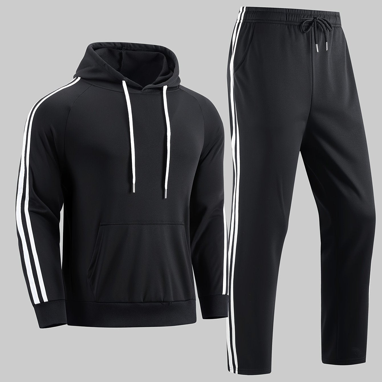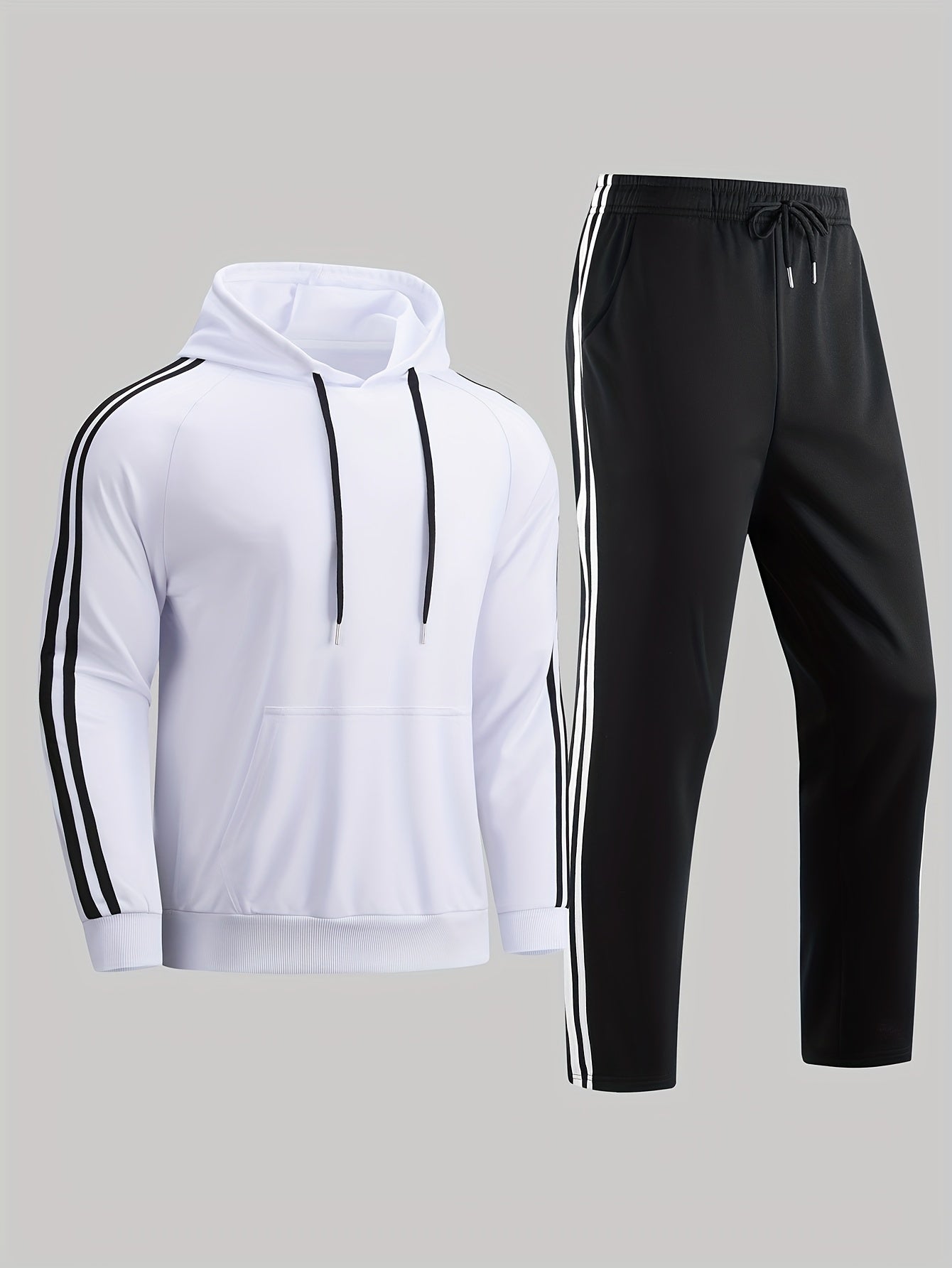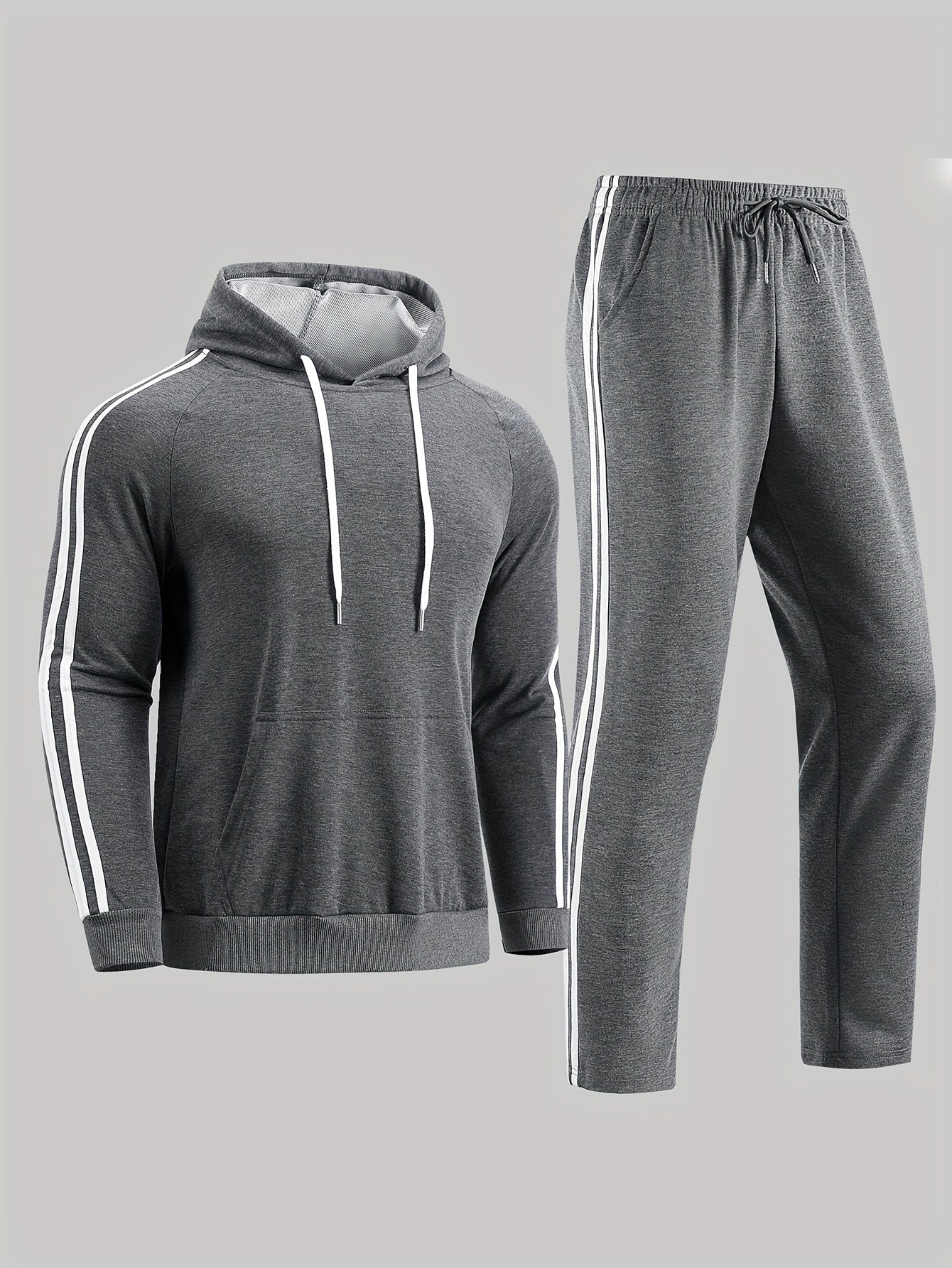 A Set of Two Men'S Casual Sports Outfits, Featuring a Striped Design with Moderately Soft Fabric, Suitable for Outdoor Running And Fitness Activities in All Seasons.