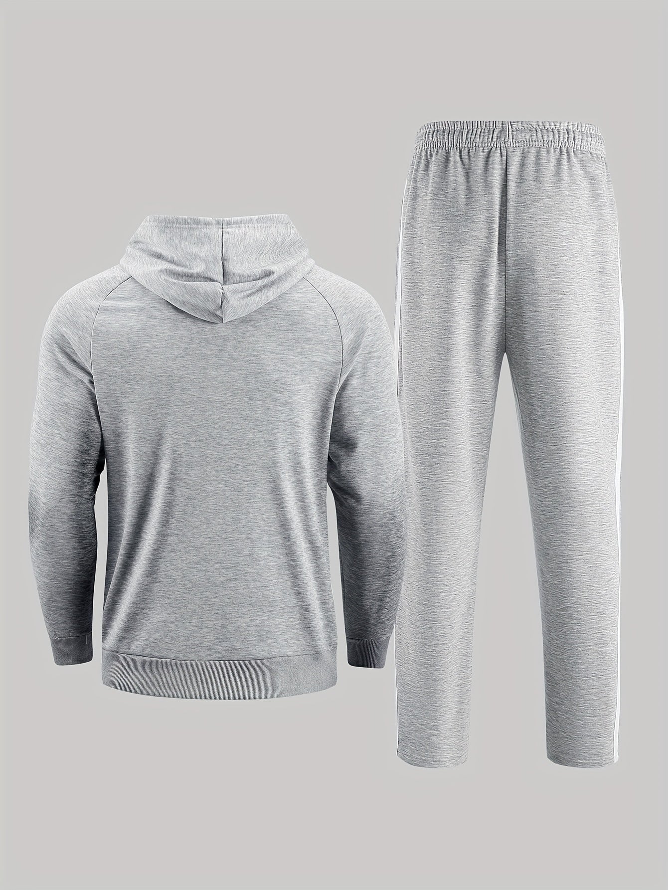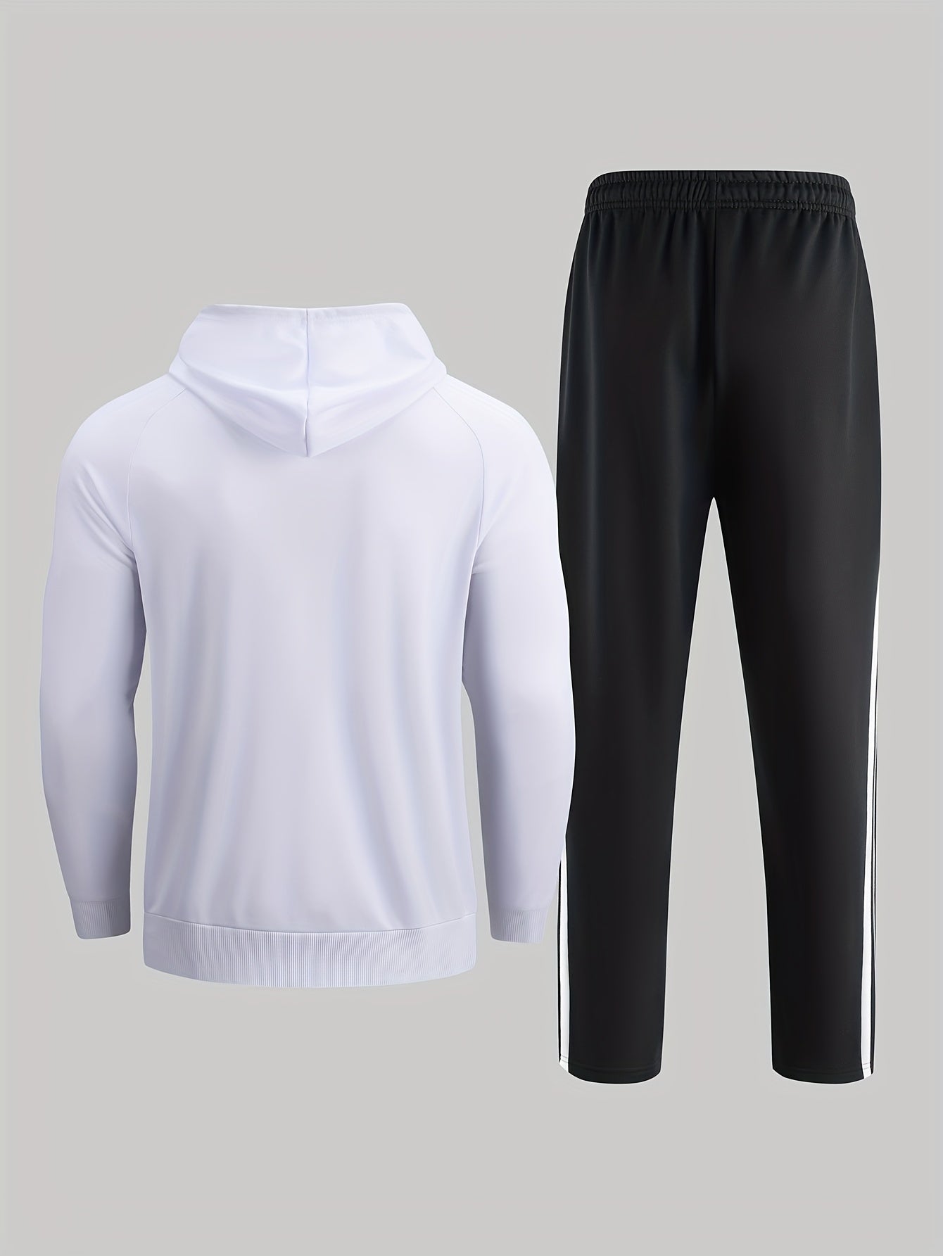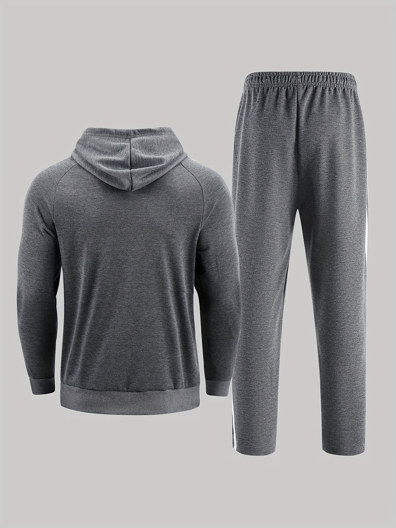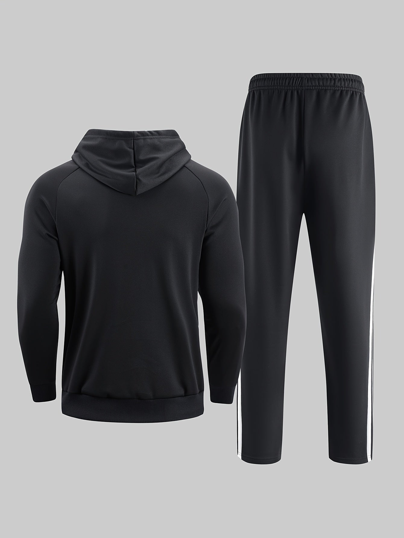 A Set of Two Men'S Casual Sports Outfits, Featuring a Striped Design with Moderately Soft Fabric, Suitable for Outdoor Running And Fitness Activities in All Seasons.