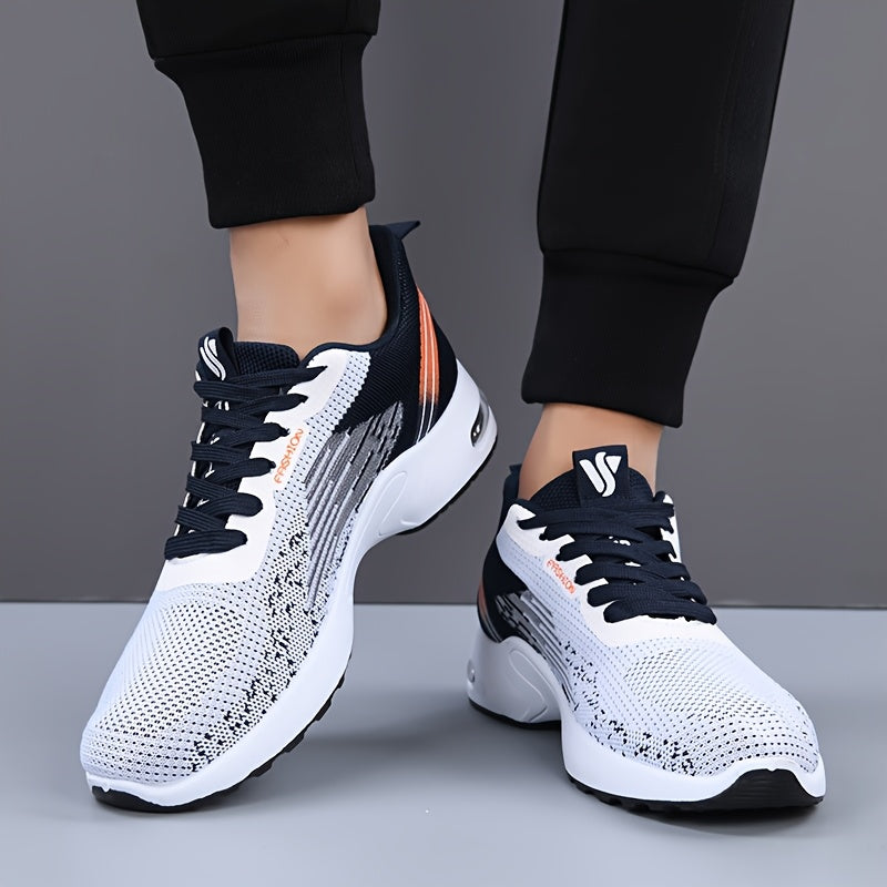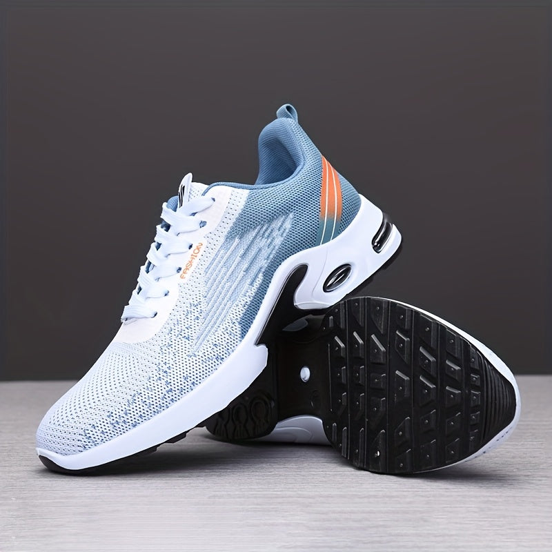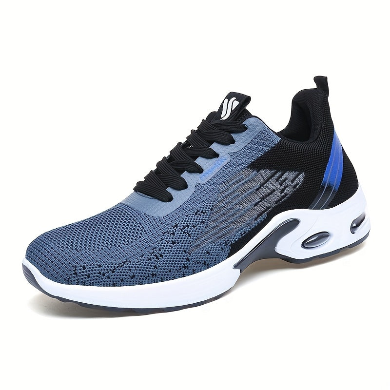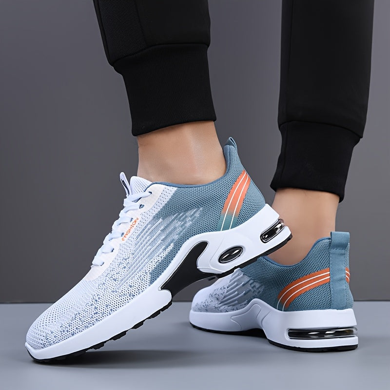 All-Season Breathable Knit Men'S Shoes with Cushioning Air Cushion for Sports, Lightweight And Soft Elastic Running Fitness Shoes, Versatile for Daily Commuting, Lace-Up, Low Top, Fabric Upper, Fabric Inner, PVC Sole, Fabric