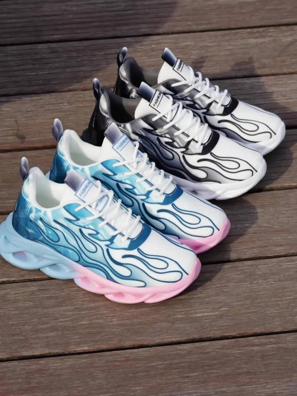 Allseason-ի բազմակողմանիություն, գերժամանակակից EVA թեթև վազող կոշիկներ՝ կապույտ և վարդագույն օմբրե, շնչող գործվածք, բոլոր սեզոնային ցածր վերևի սպորտային կոշիկներ՝ ժանյակներով փակվող կոշիկներով