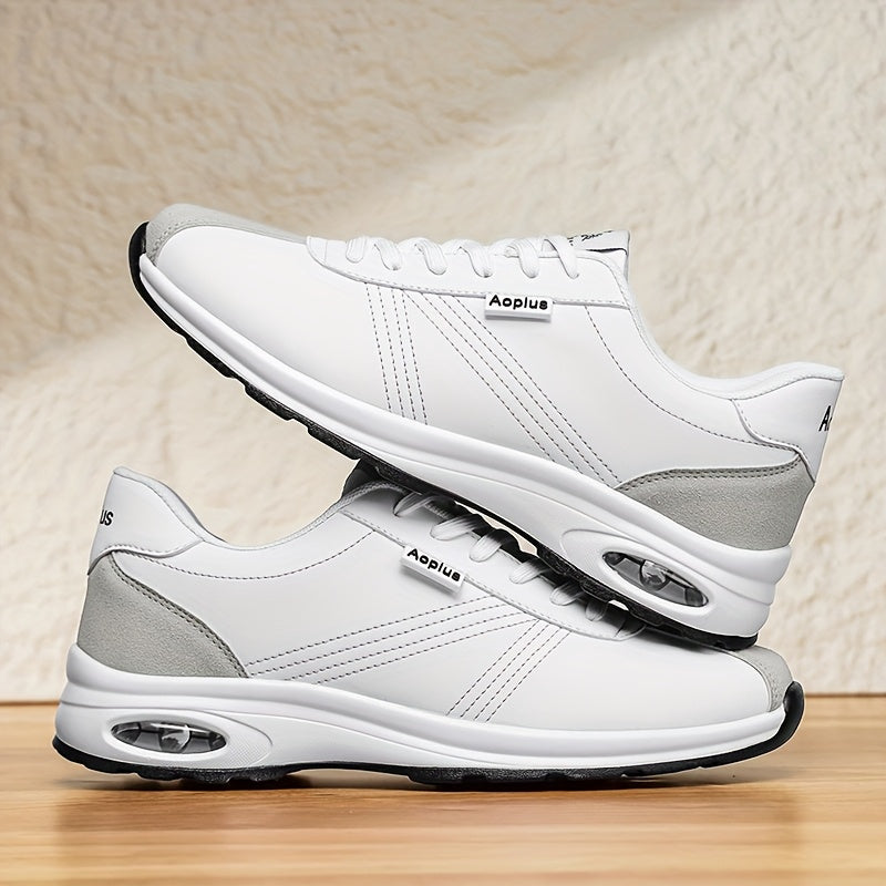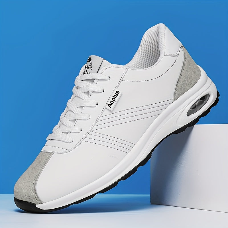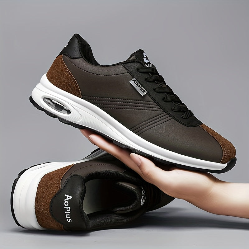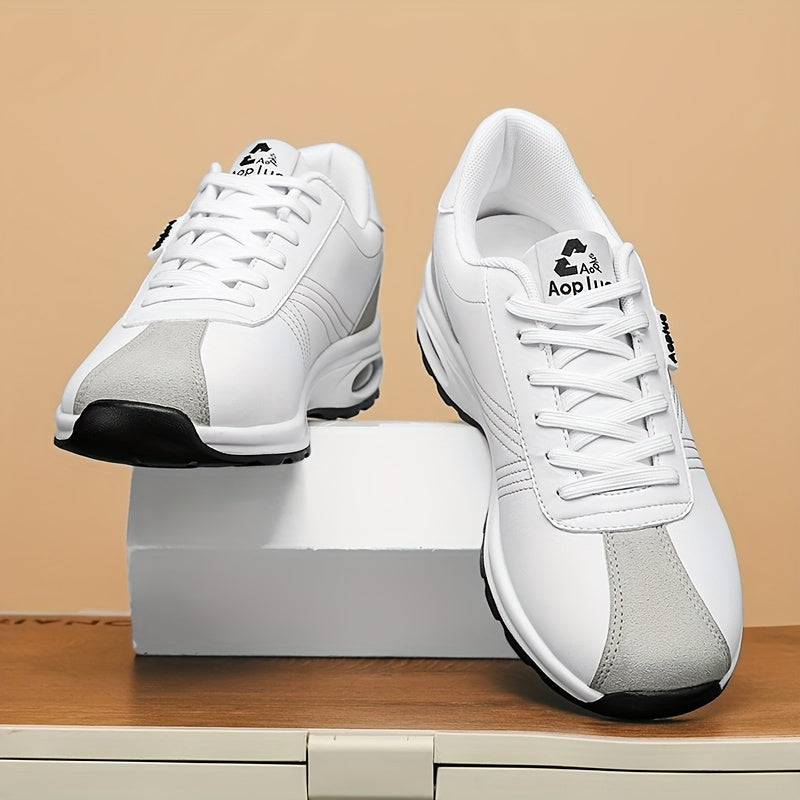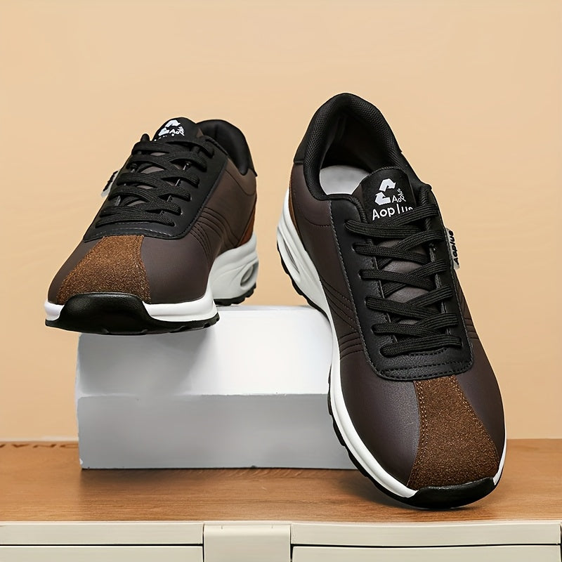 AOPLUS Men's Low-Top Sneakers - Navy Blue Black Sneakers, PU Upper Cushioned Rubber Sole for Gym, Training, Everyday - All-Season Lace-Up Shoes for Men, Gym Training Footwear, Sleek Sporty Design, Fabric Lined Interior