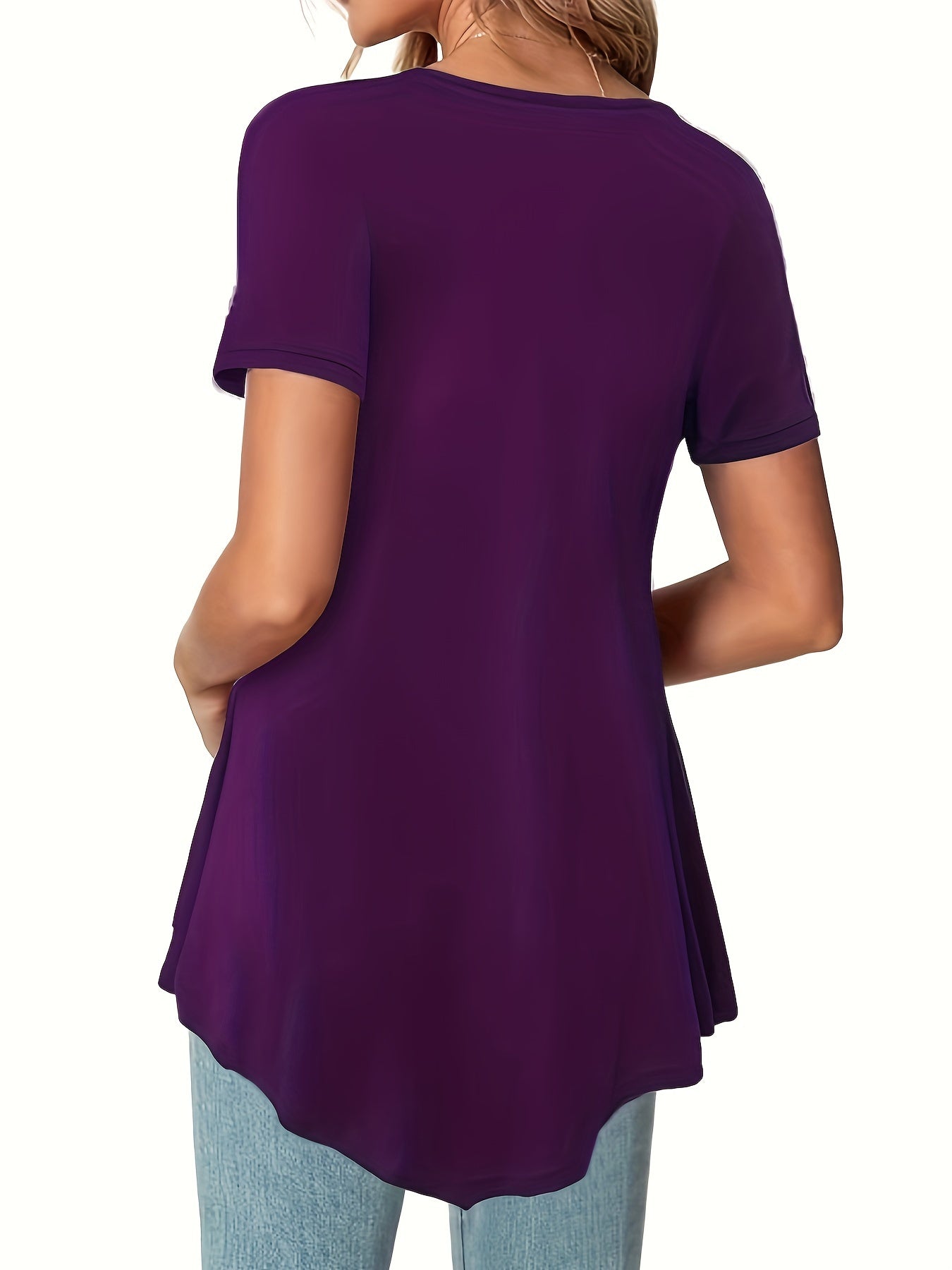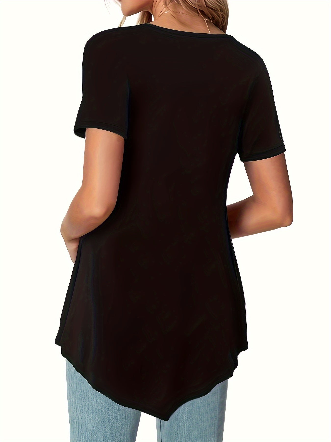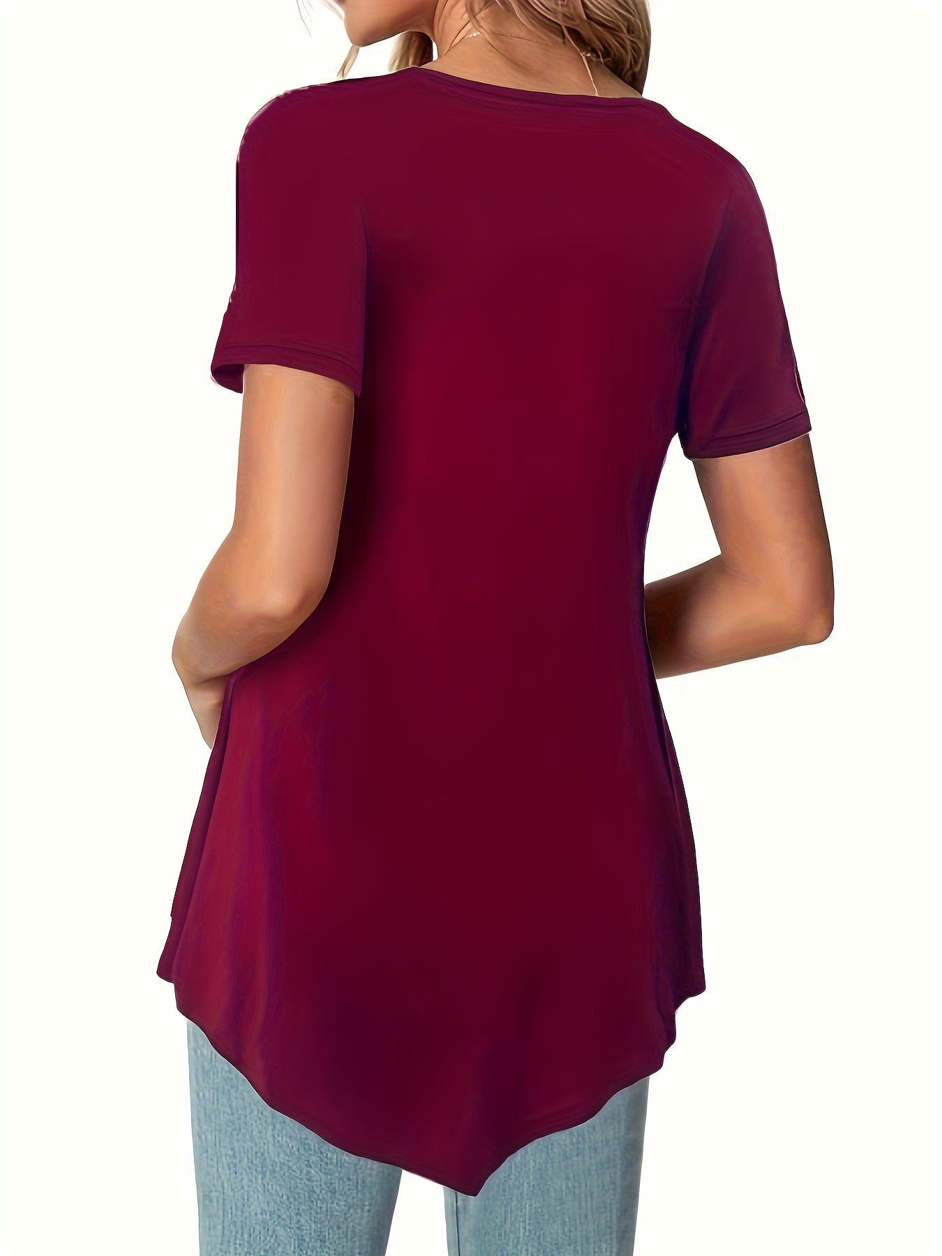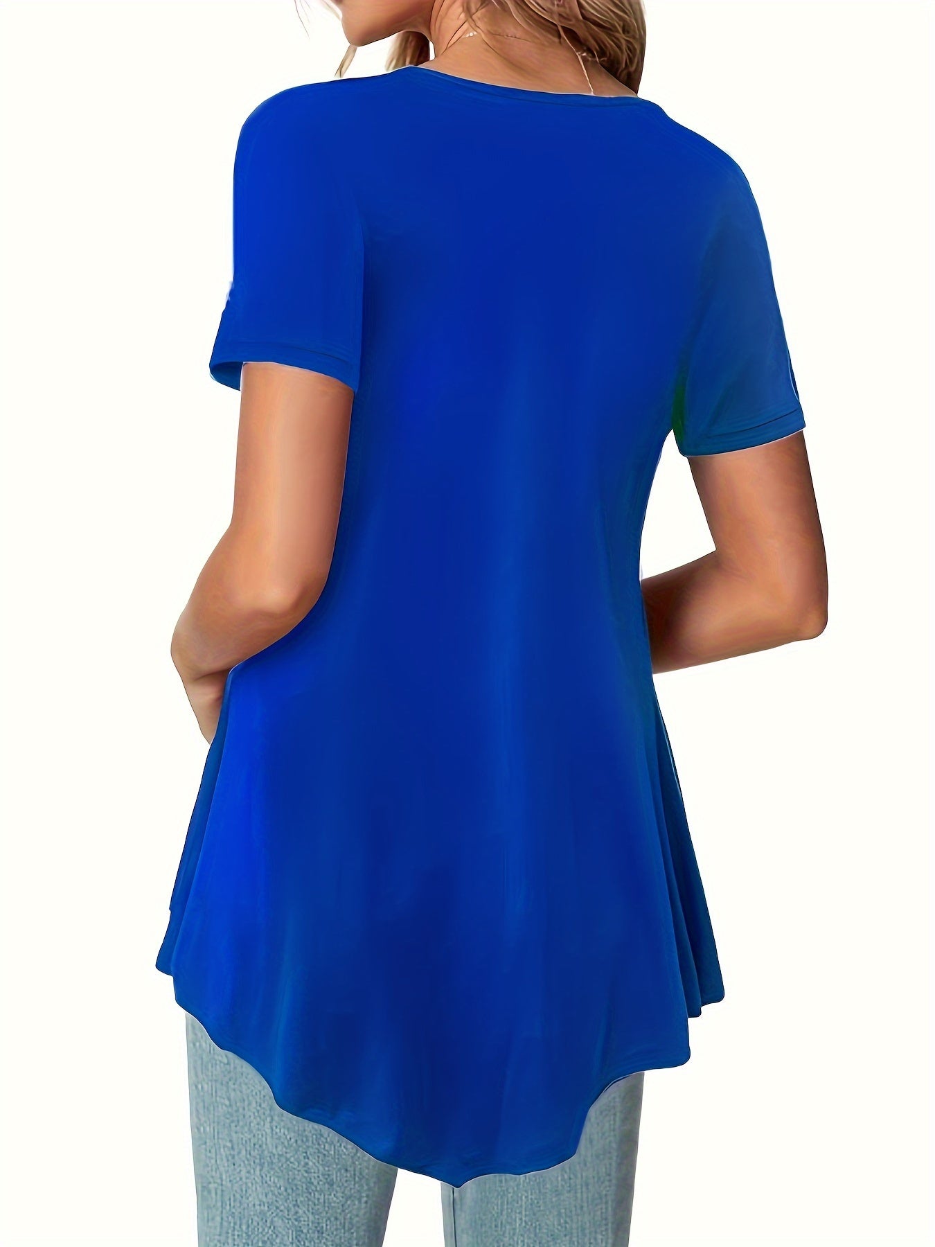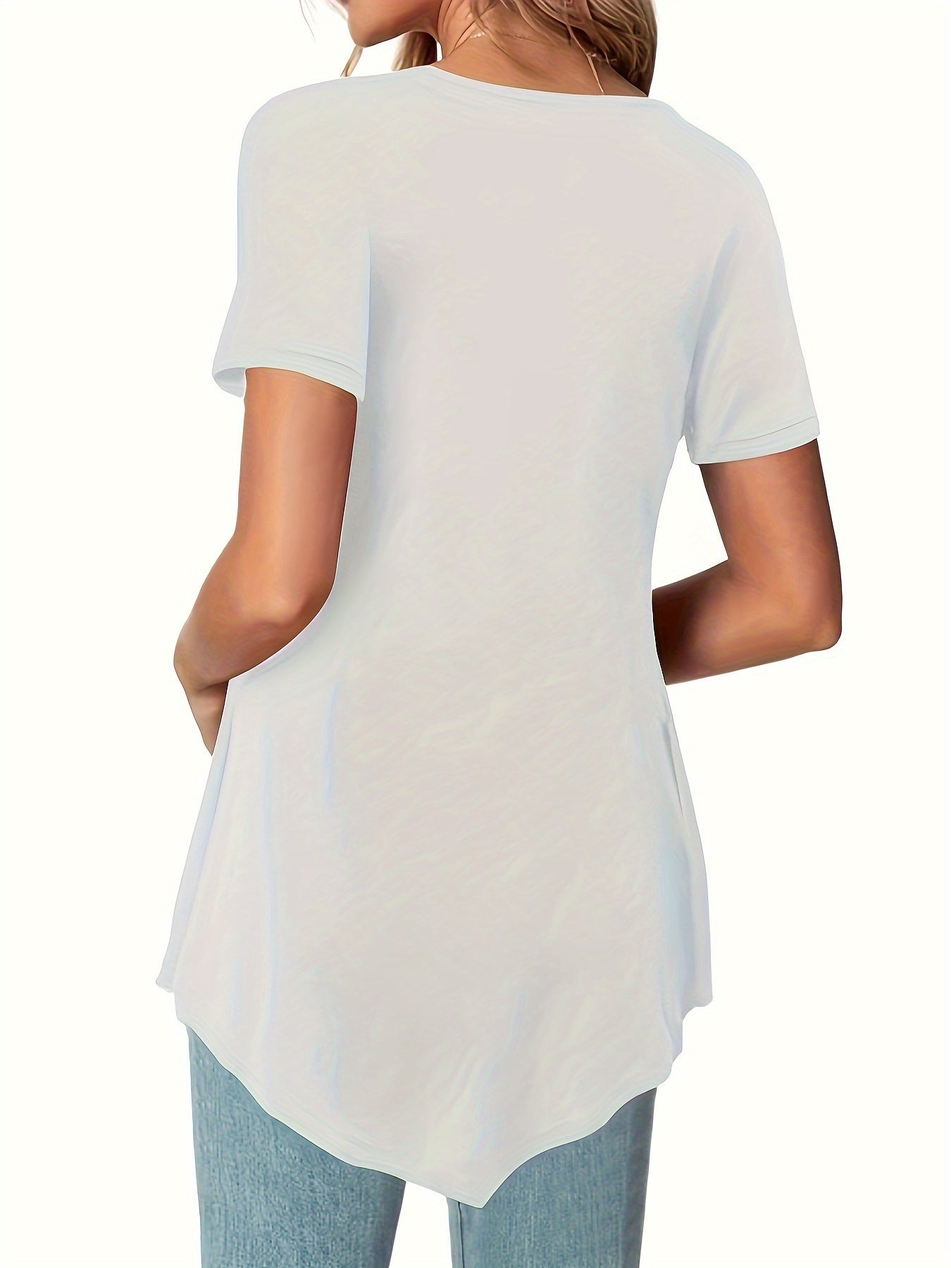 Ասիմետրիկ ծայրով պարանոցով վերնաշապիկ, կարճաթև ամենօրյա վերնաշապիկ ամառային և գարնան համար, կանացի հագուստ
