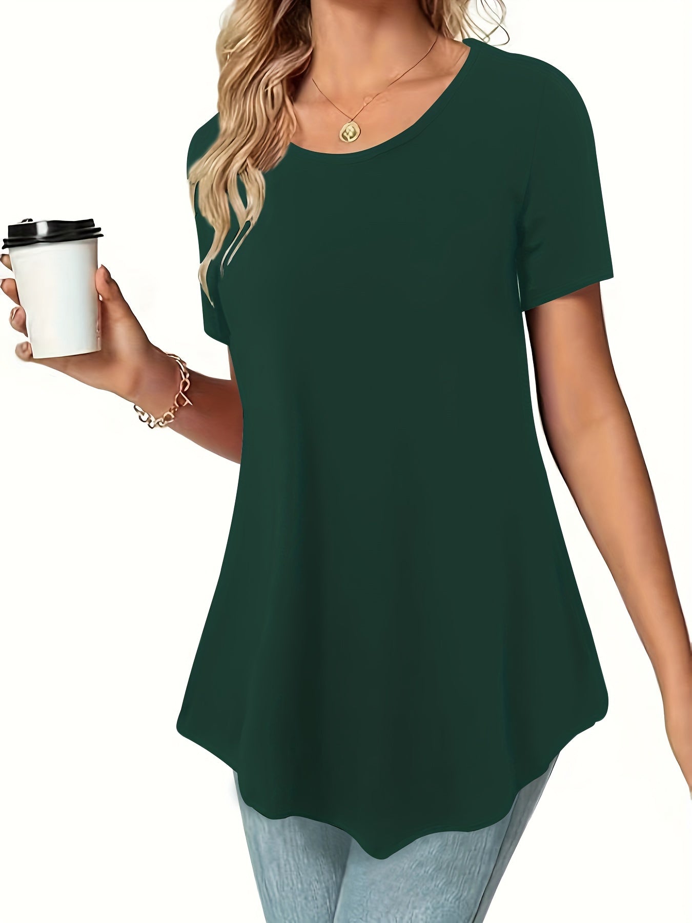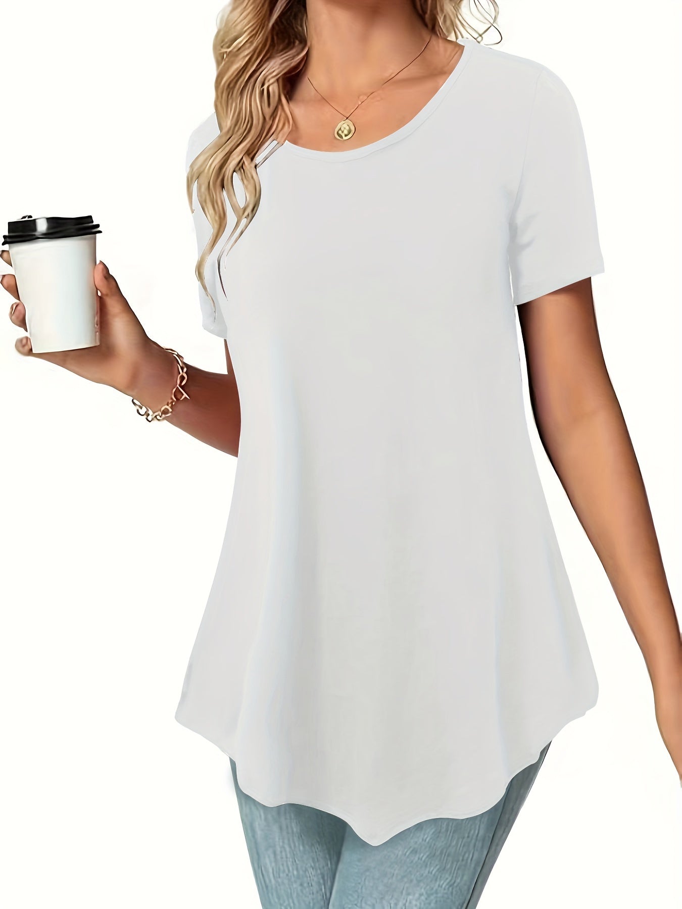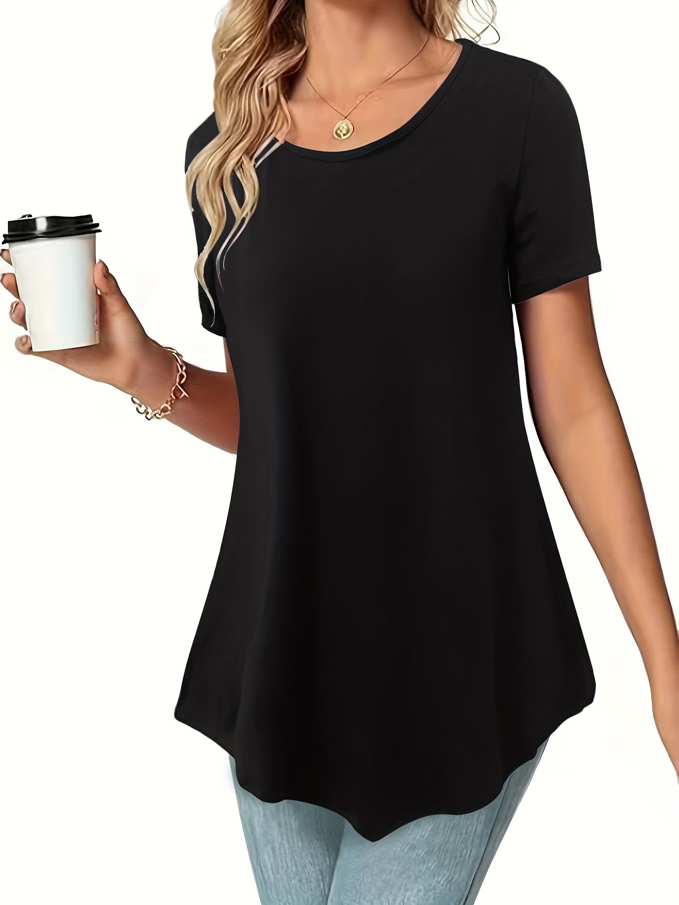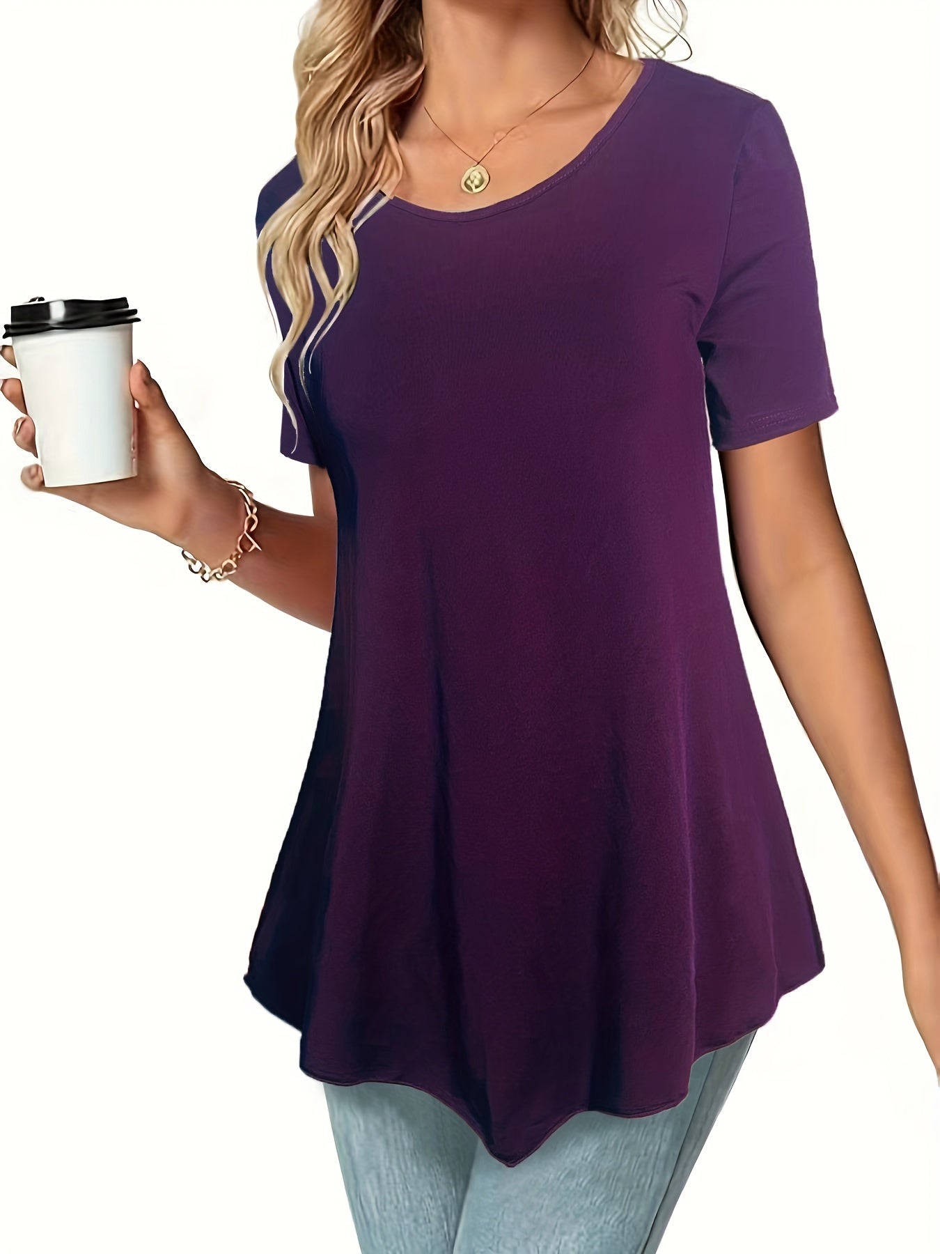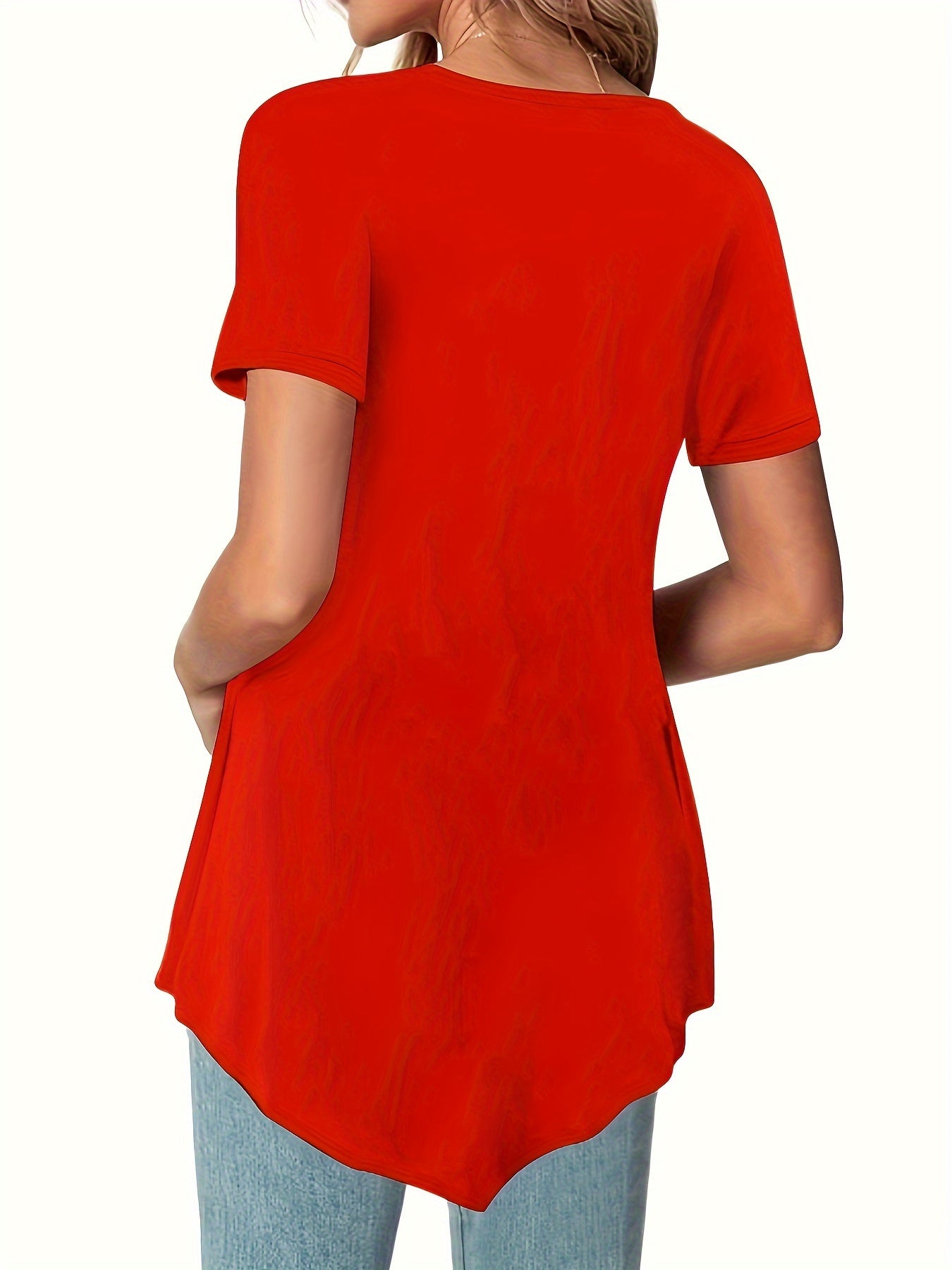 Ասիմետրիկ ծայրով պարանոցով վերնաշապիկ, կարճաթև ամենօրյա վերնաշապիկ ամառային և գարնան համար, կանացի հագուստ
