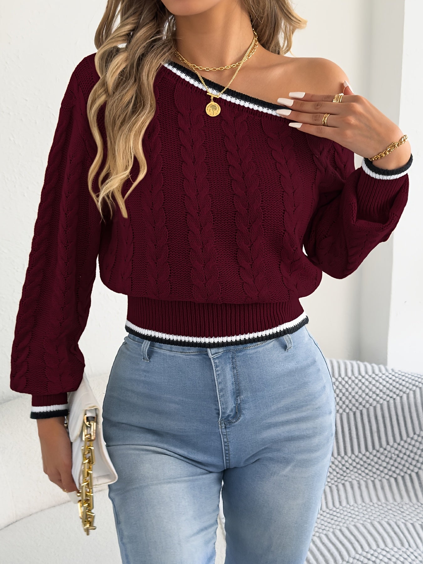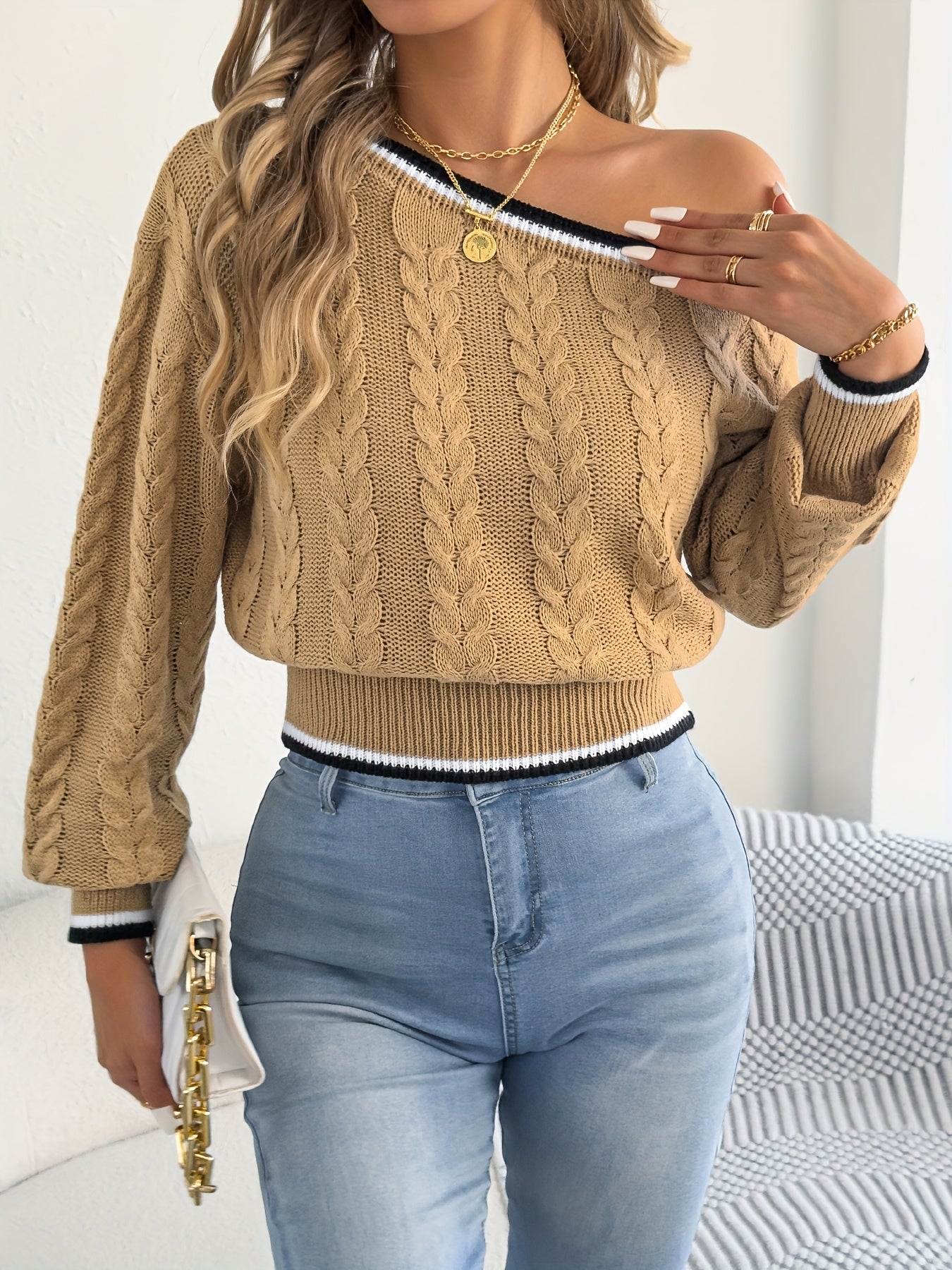 Աշնանային և ձմեռային առօրյա արձակուրդային երկար թևքերով, ուսերից բաց վերնաշապիկ, գոտկատեղով, գծավոր կարով կանացի կարդիգան