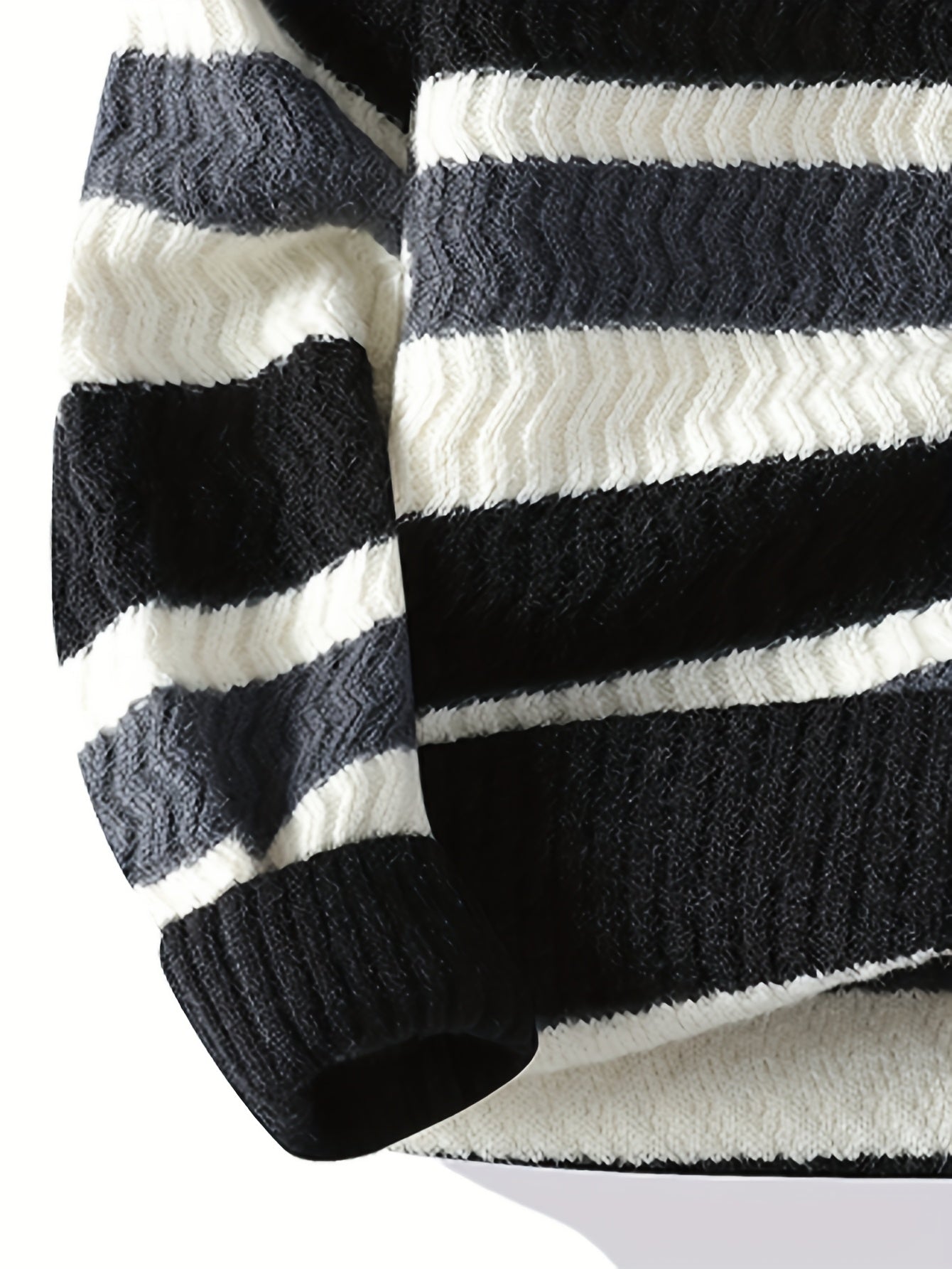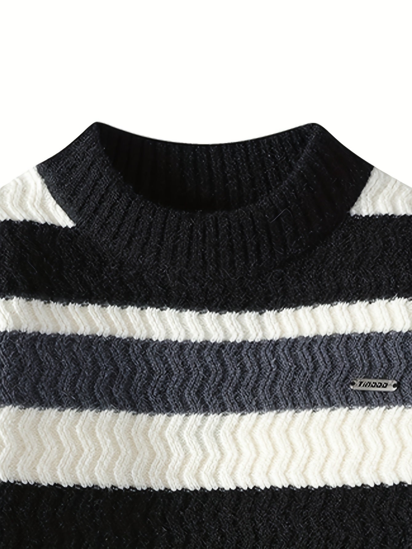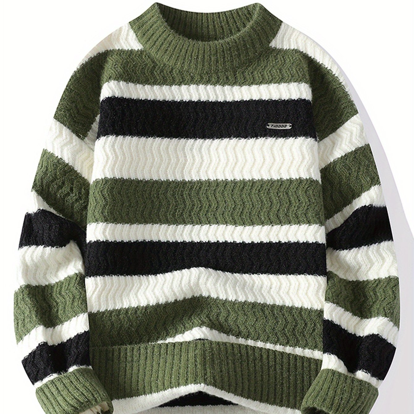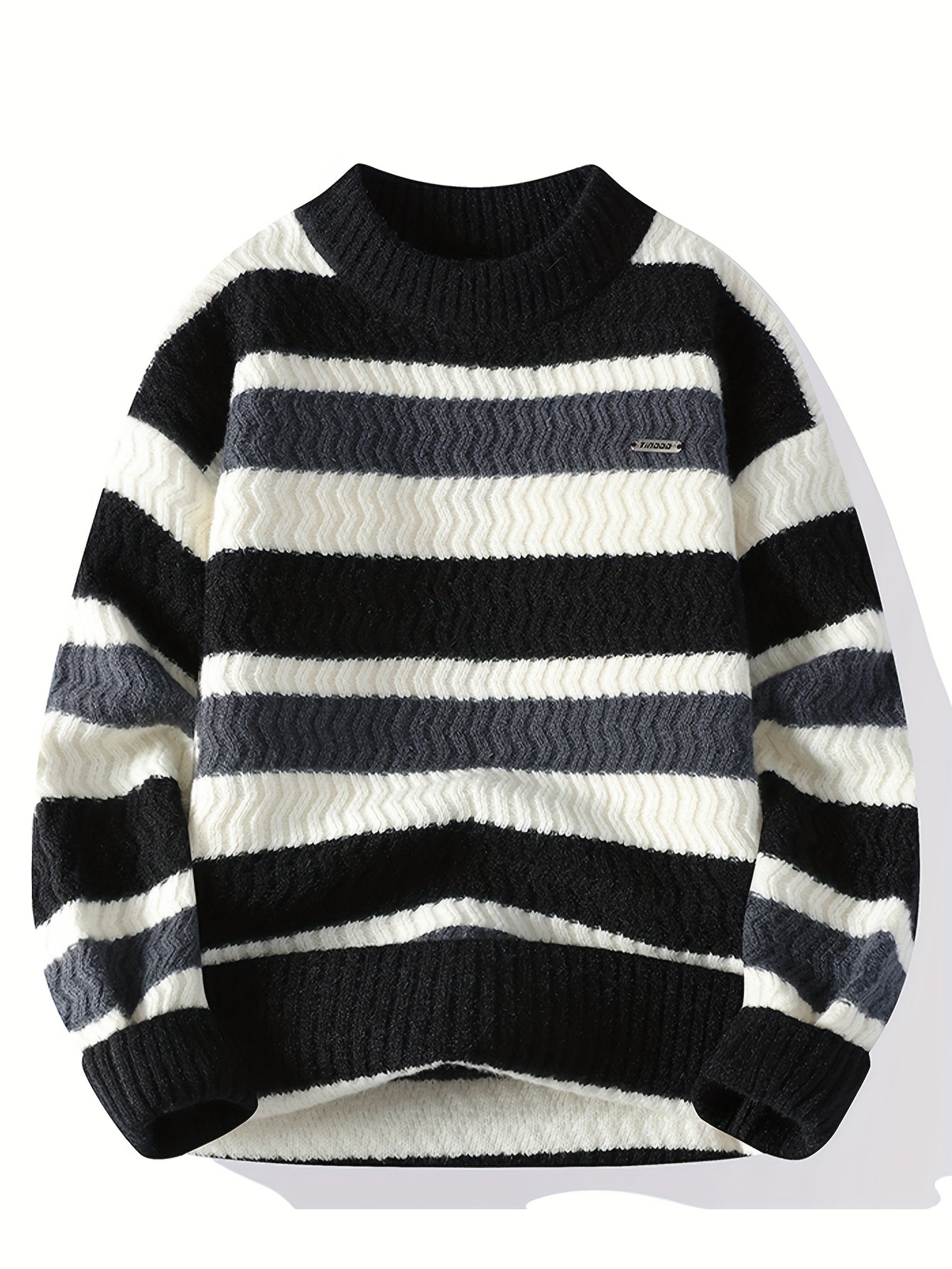 Աշնանային և ձմեռային նոր տղամարդկանց ոլորված շերտավոր կլոր վզնոցով տրիկոտաժե սվիտեր միջին տարիքի հարմարավետ տաք վերնաշապիկի համար