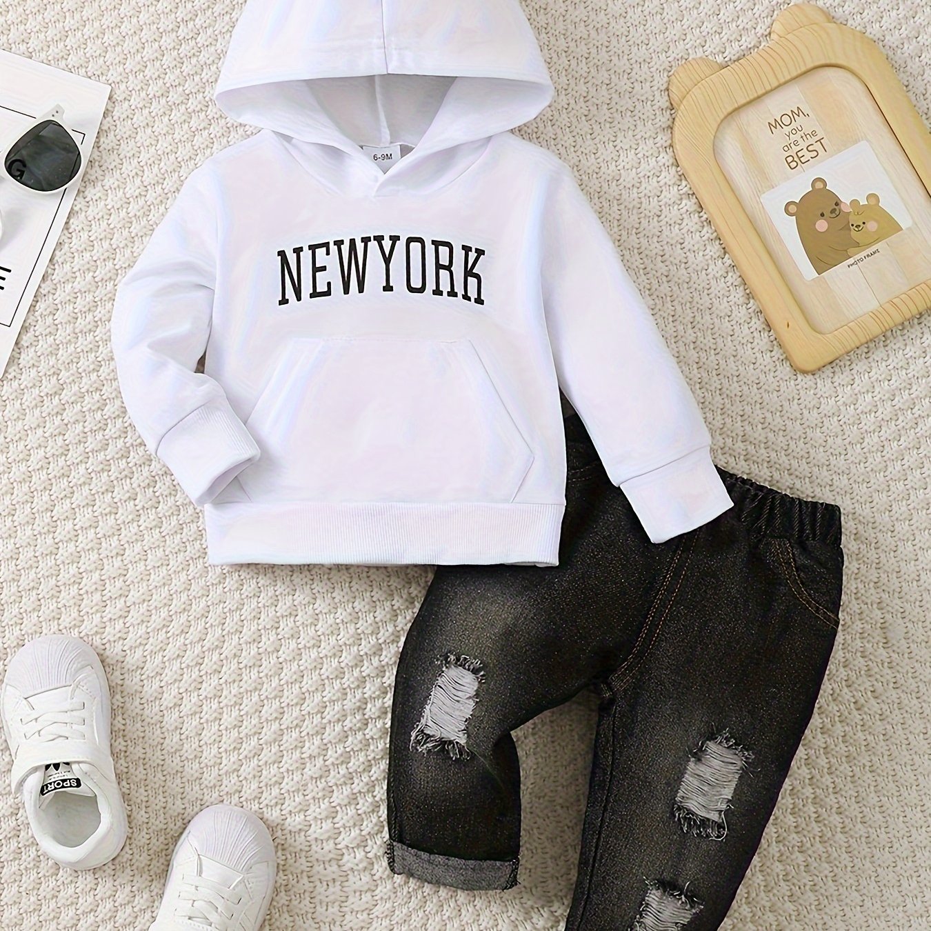 Baby Boy's Casual երկարաթև շալվար և բամբակյա շալվար, փափուկ պոլիեսթեր խառնուրդ, այբուբենի նախշ, գարուն/աշուն հագուստ, բացօթյա շոր