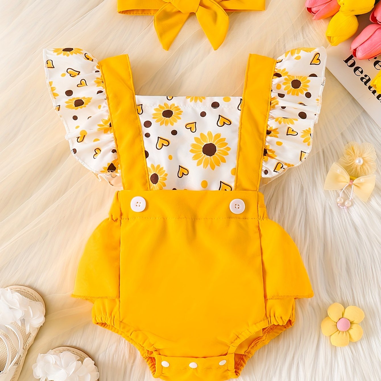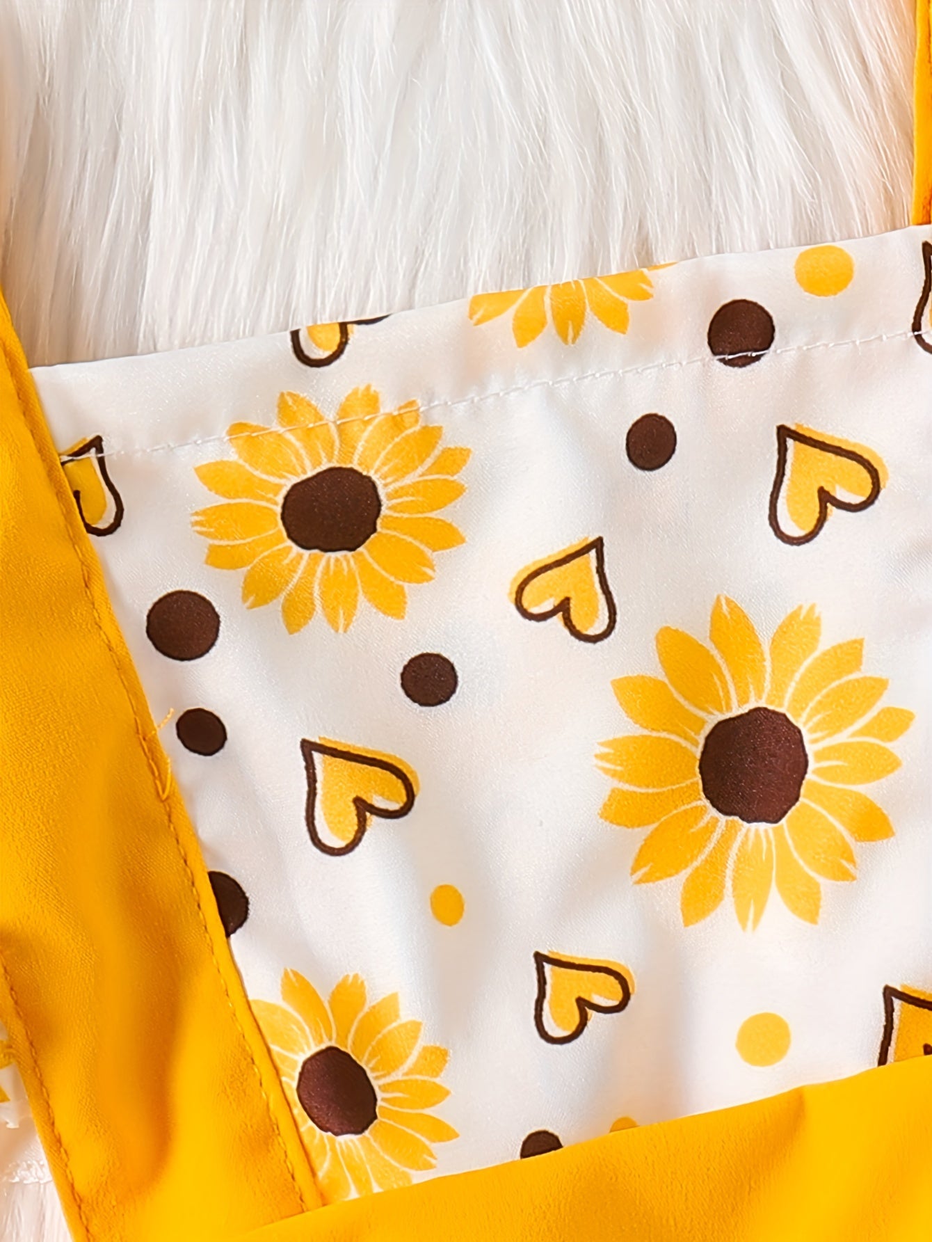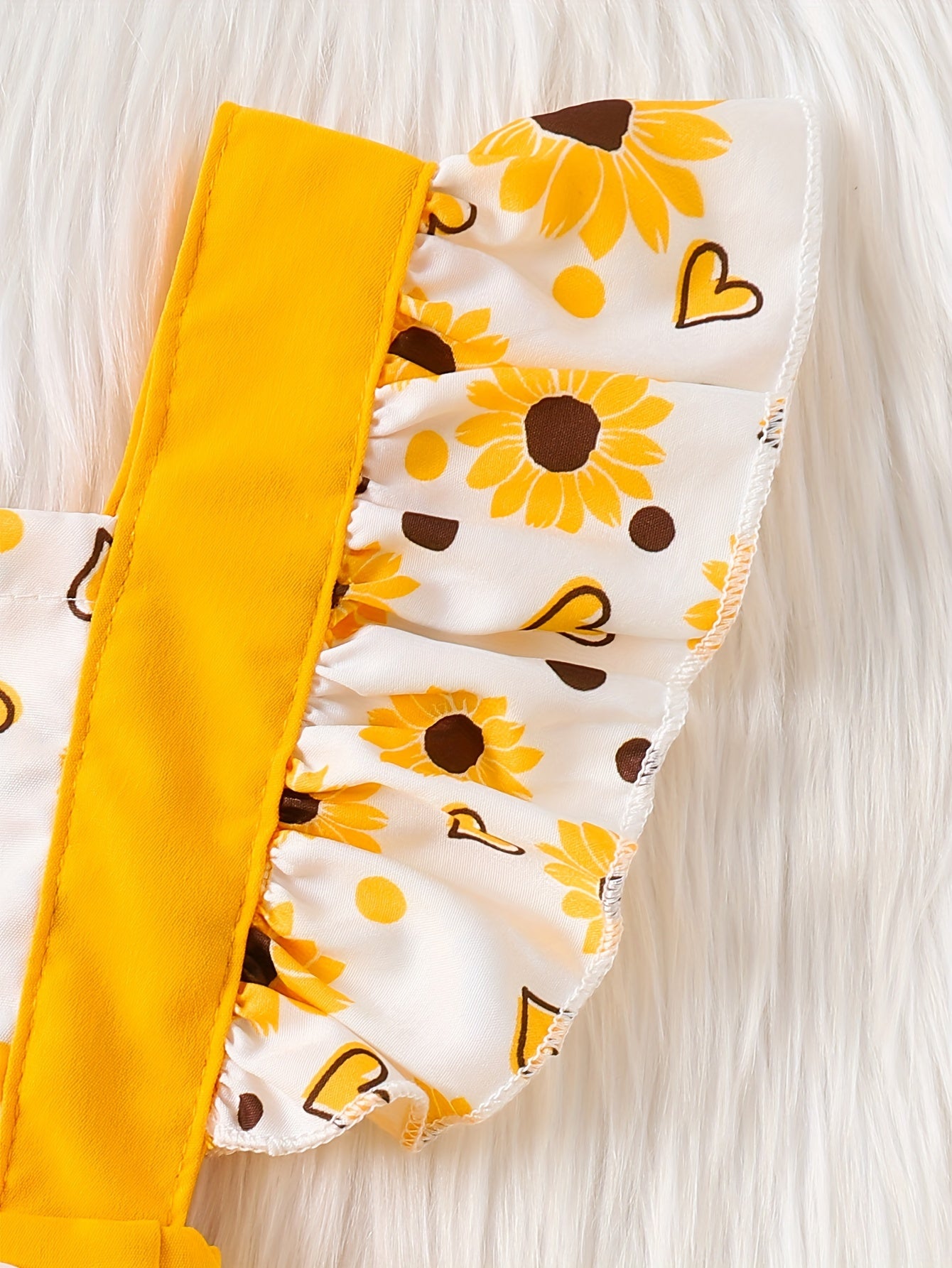 Մանկական աղջիկների հարմարավետ և պատահական եռանկյունի բոդի կոստյում արևածաղկի տպագրությամբ ամառային բացօթյա խաղերի համար