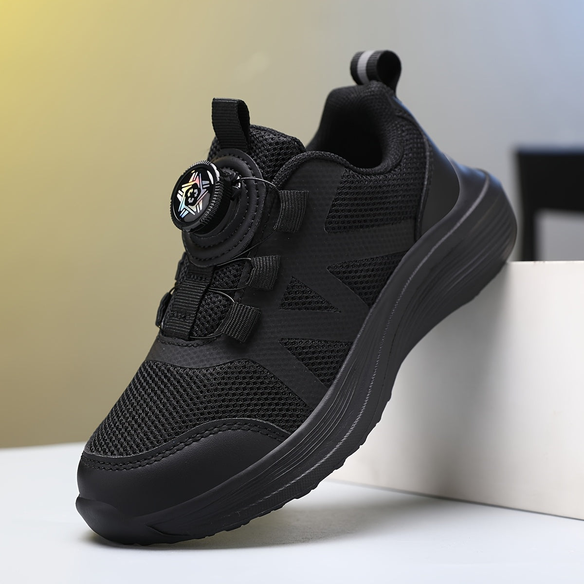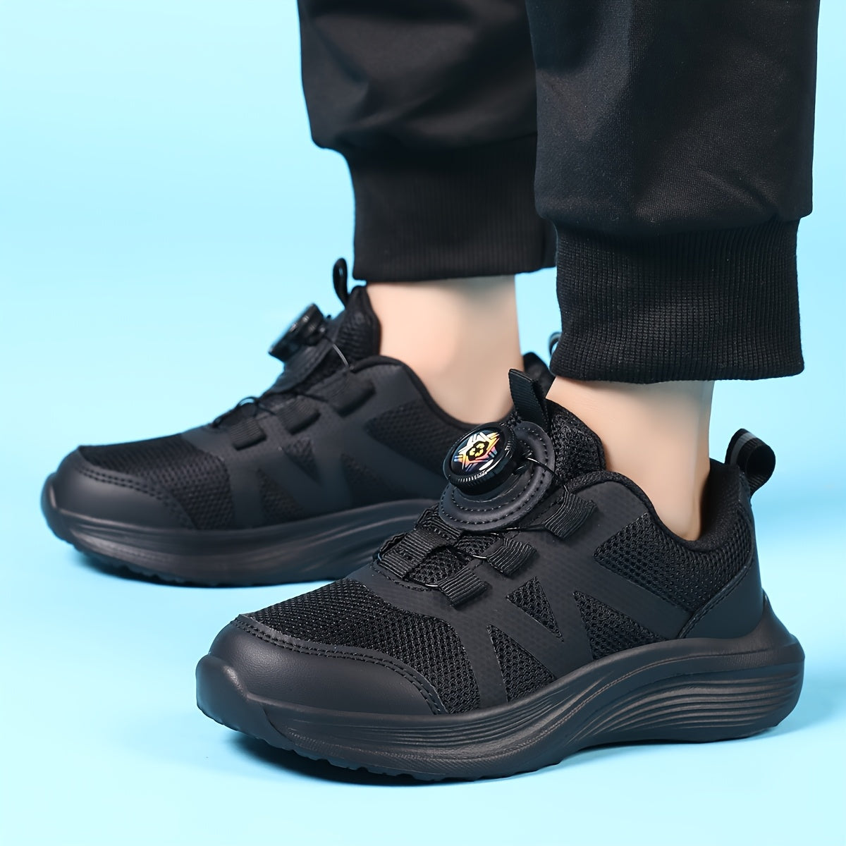 [Backtoschool Essential] Youngsters' Breathable Mesh Running Shoes with Rotating Buckle - Lightweight, All-Season Sneakers for Boys & Girls, Black, Casual & Sporty Design for School, Outdoor Activities & Casual Attire, Casual