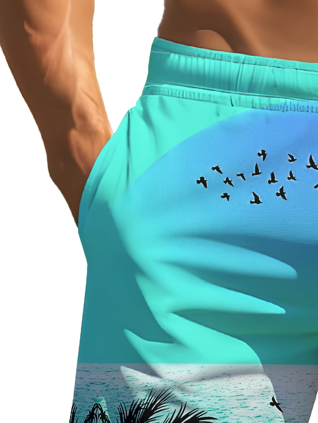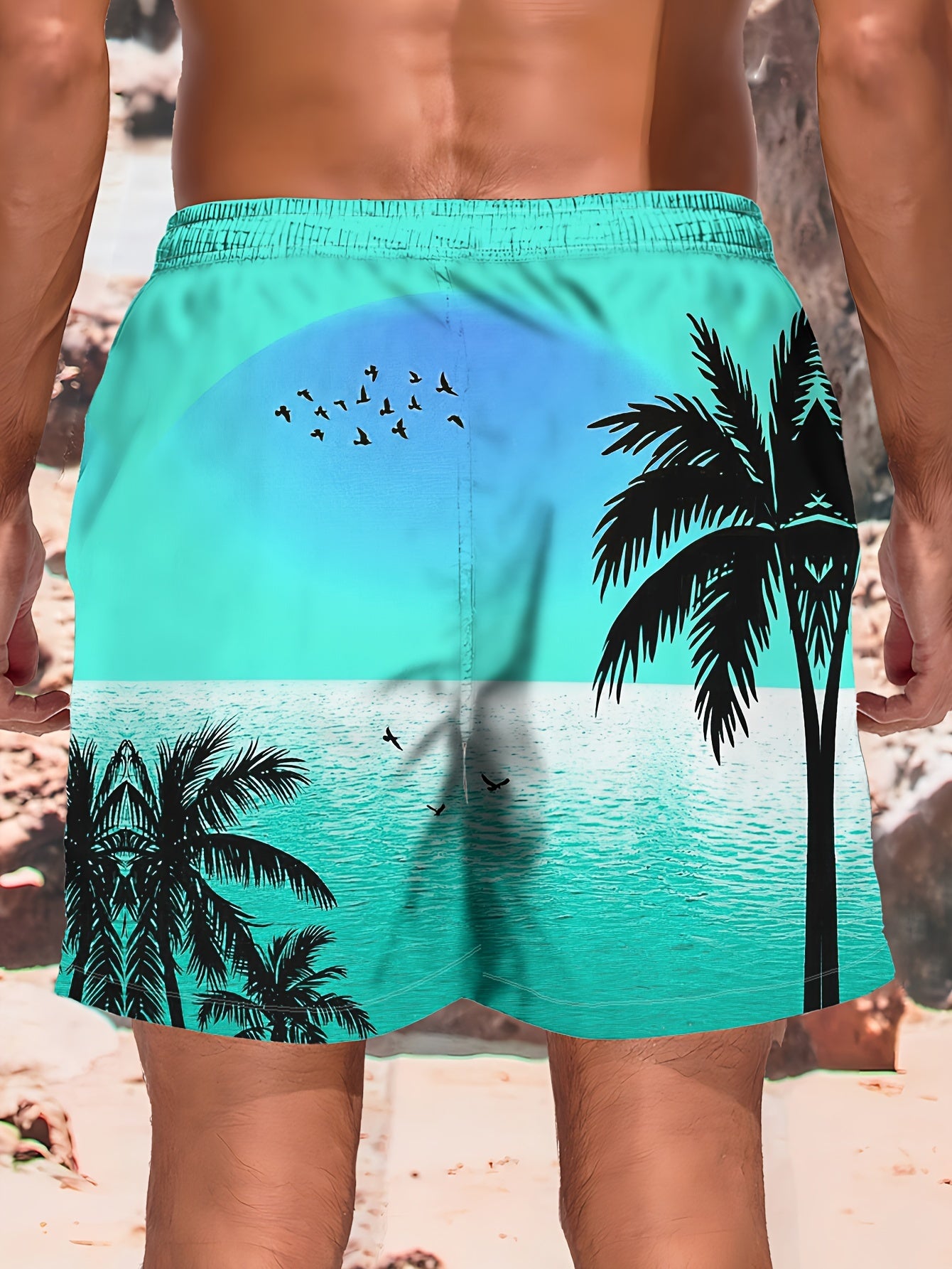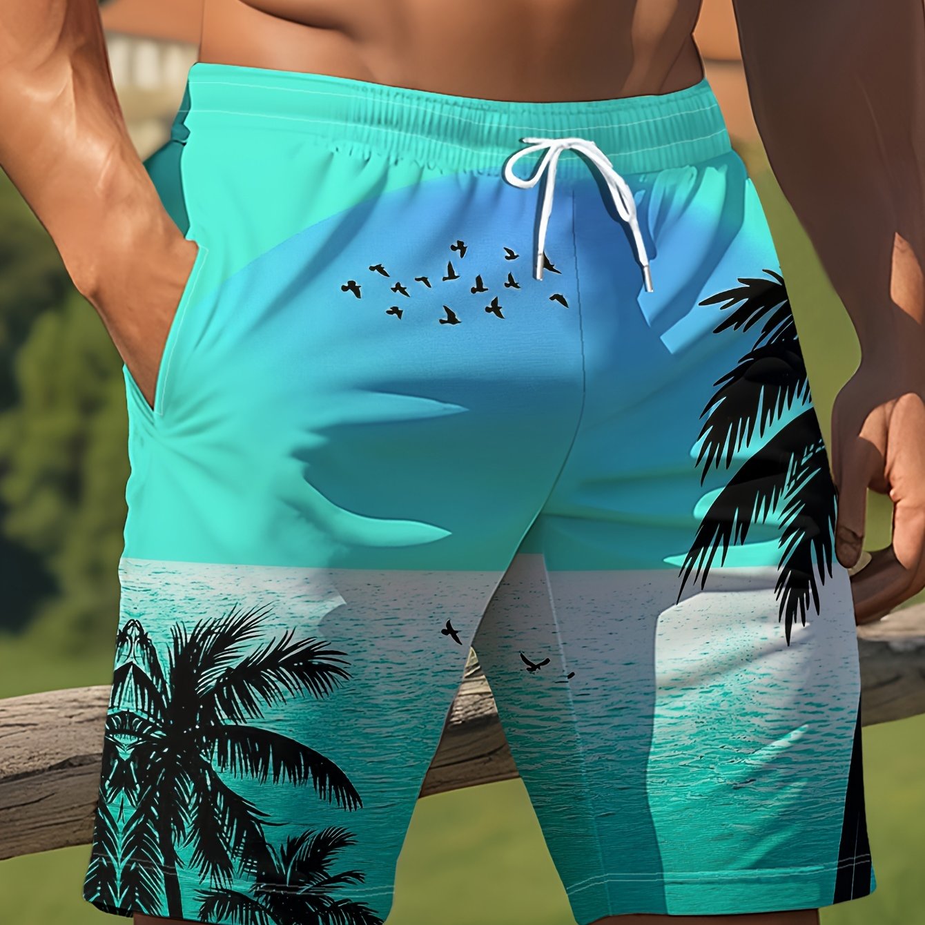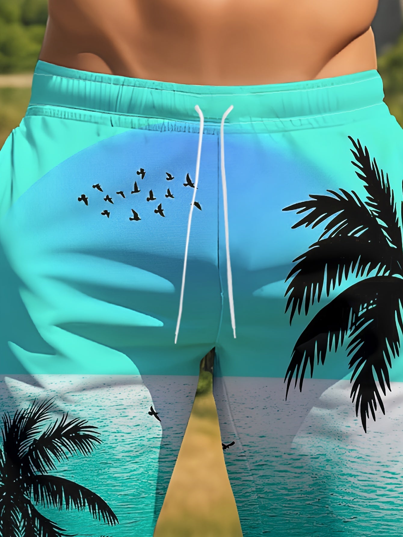 Լողափի կոկոսի ծառերի թվային տպագրությամբ տղամարդկանց շորտեր թելերով և գրպաններով, շորտեր և նորաձև շորտեր ամառային դրսում և սպորտային հագուստի համար